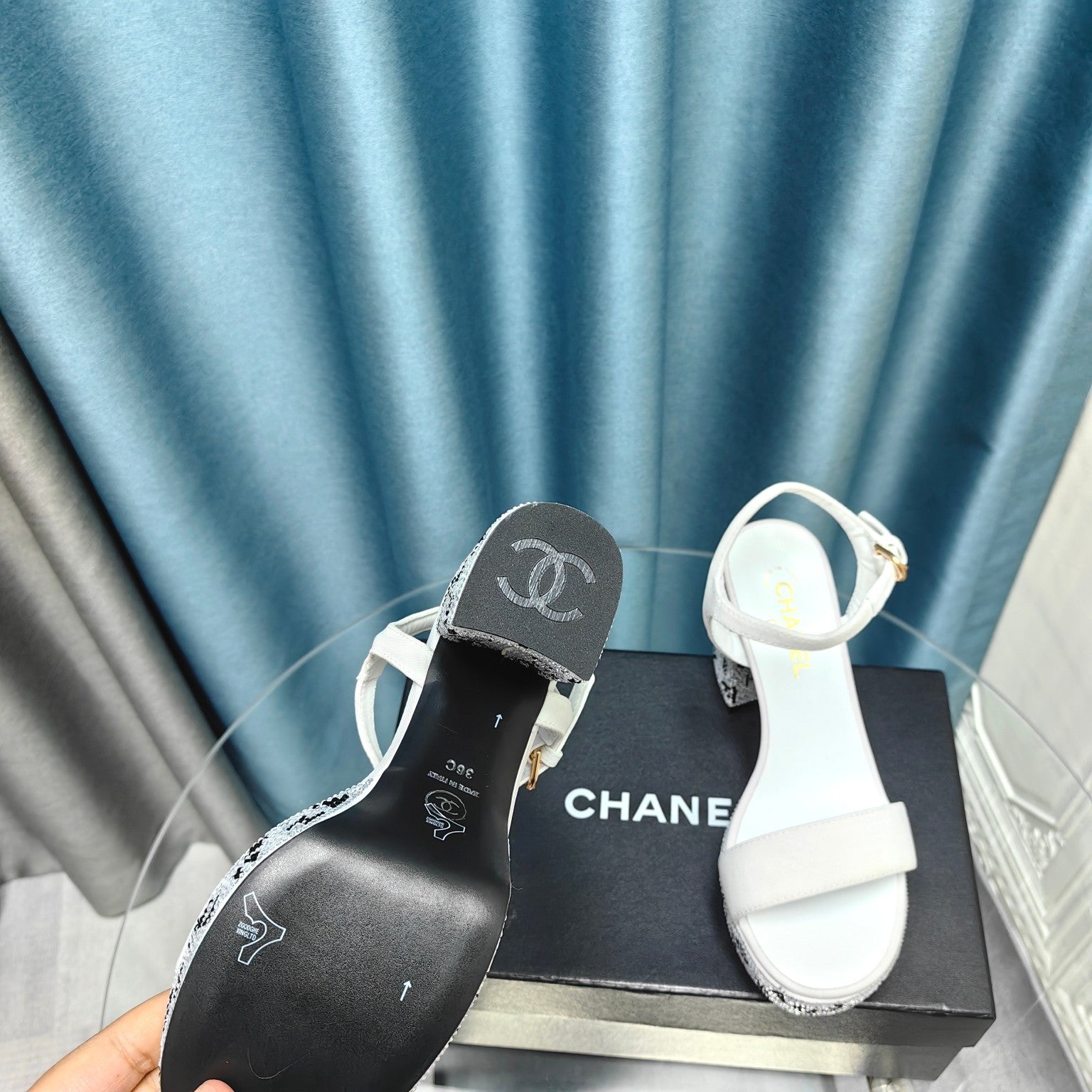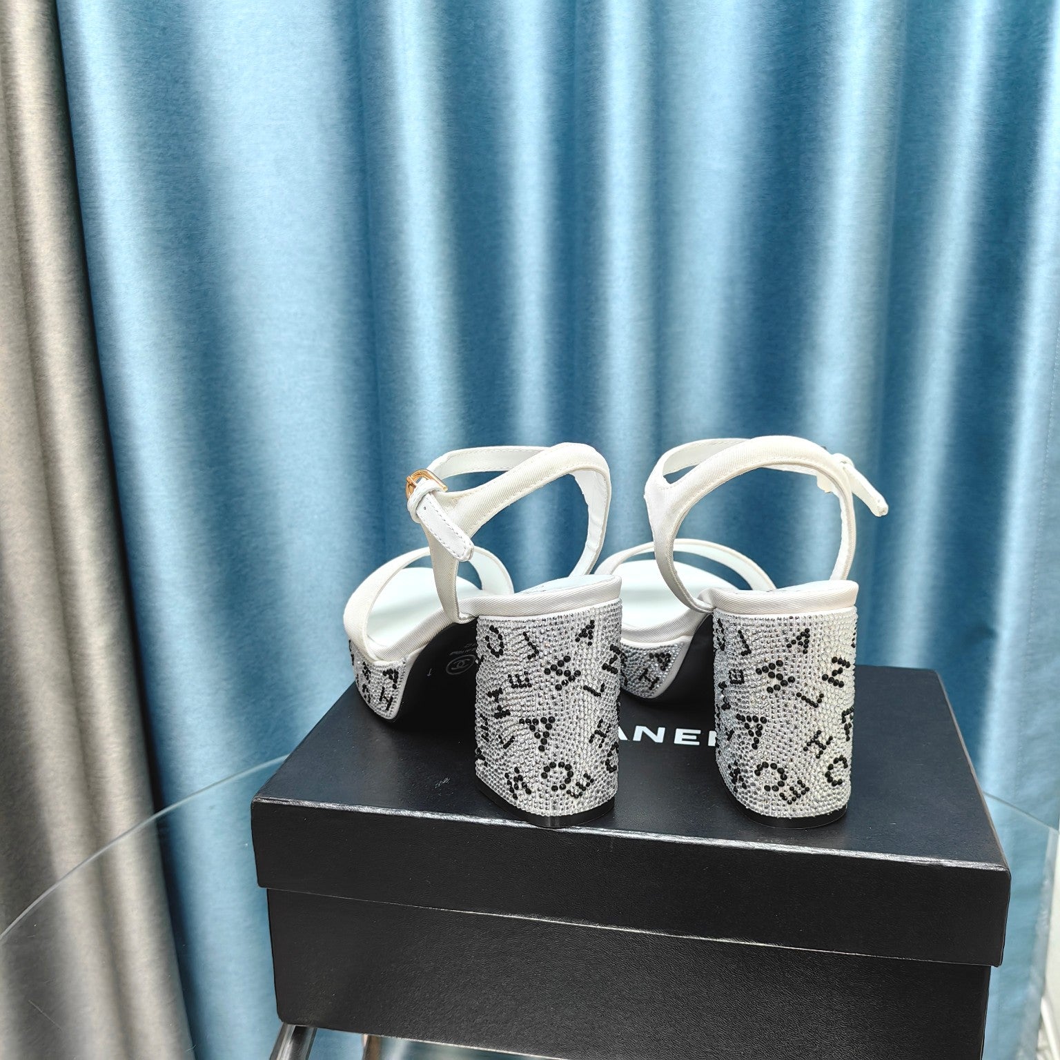 Chunky Heel Rhinestone High Sandals White Lambskin