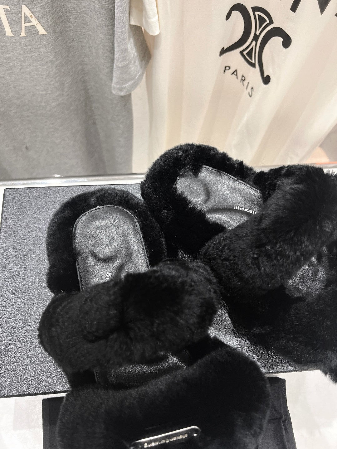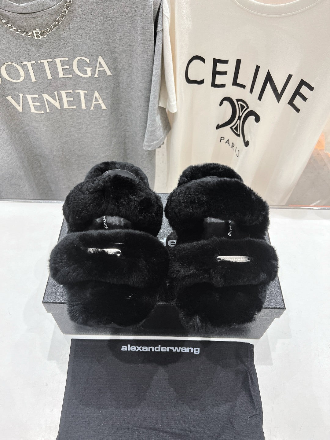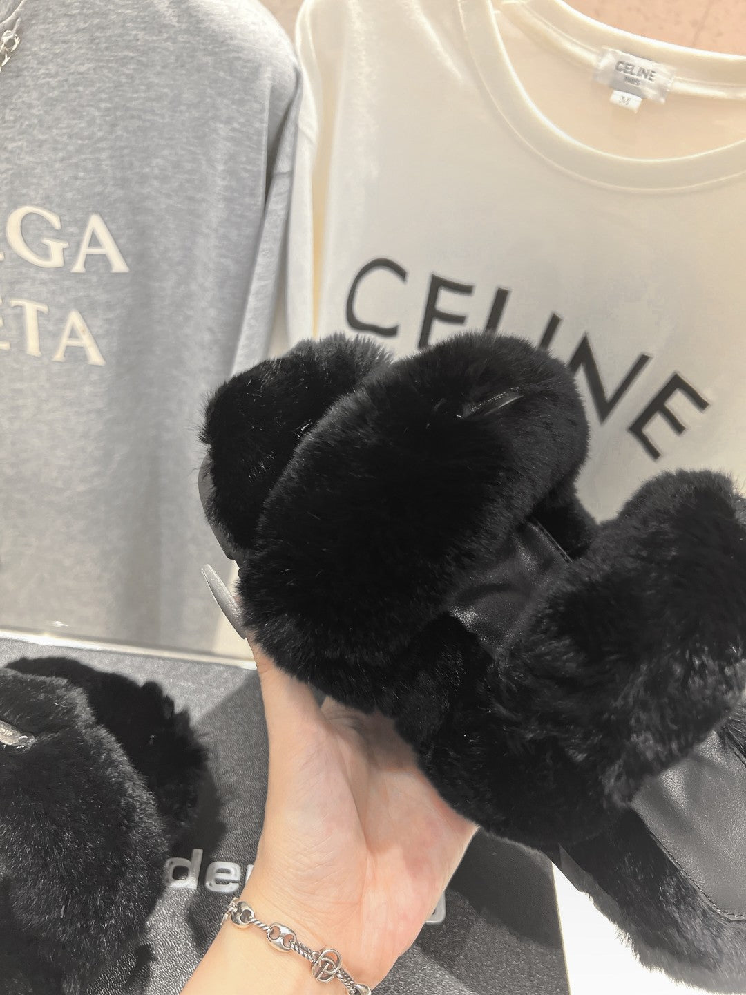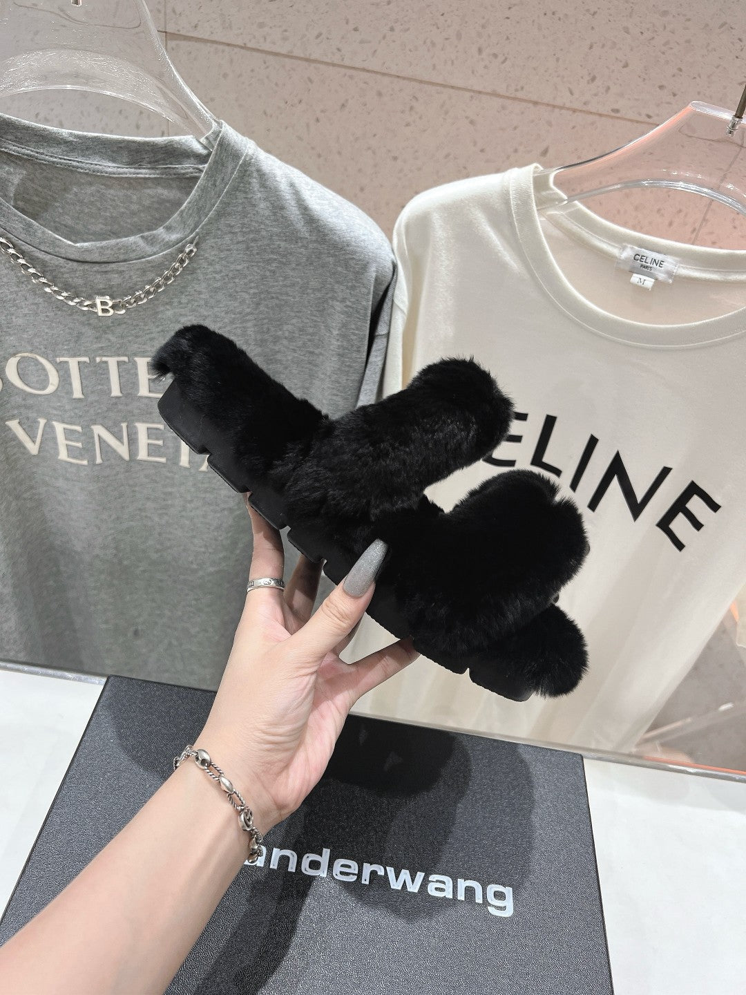 CHUNKY PLATFORM SLIPPER IN BLACK RABBIT FUR