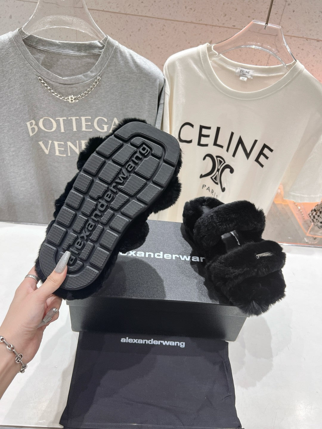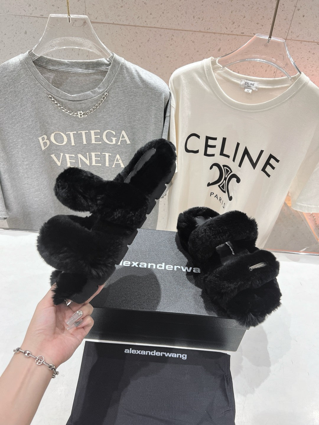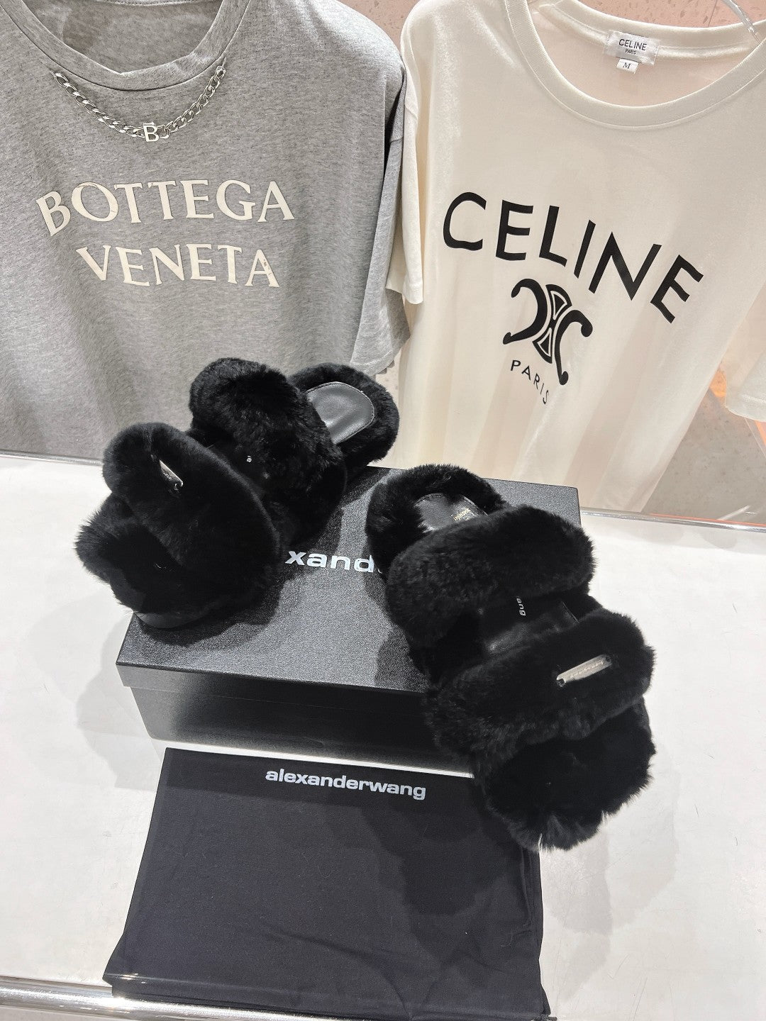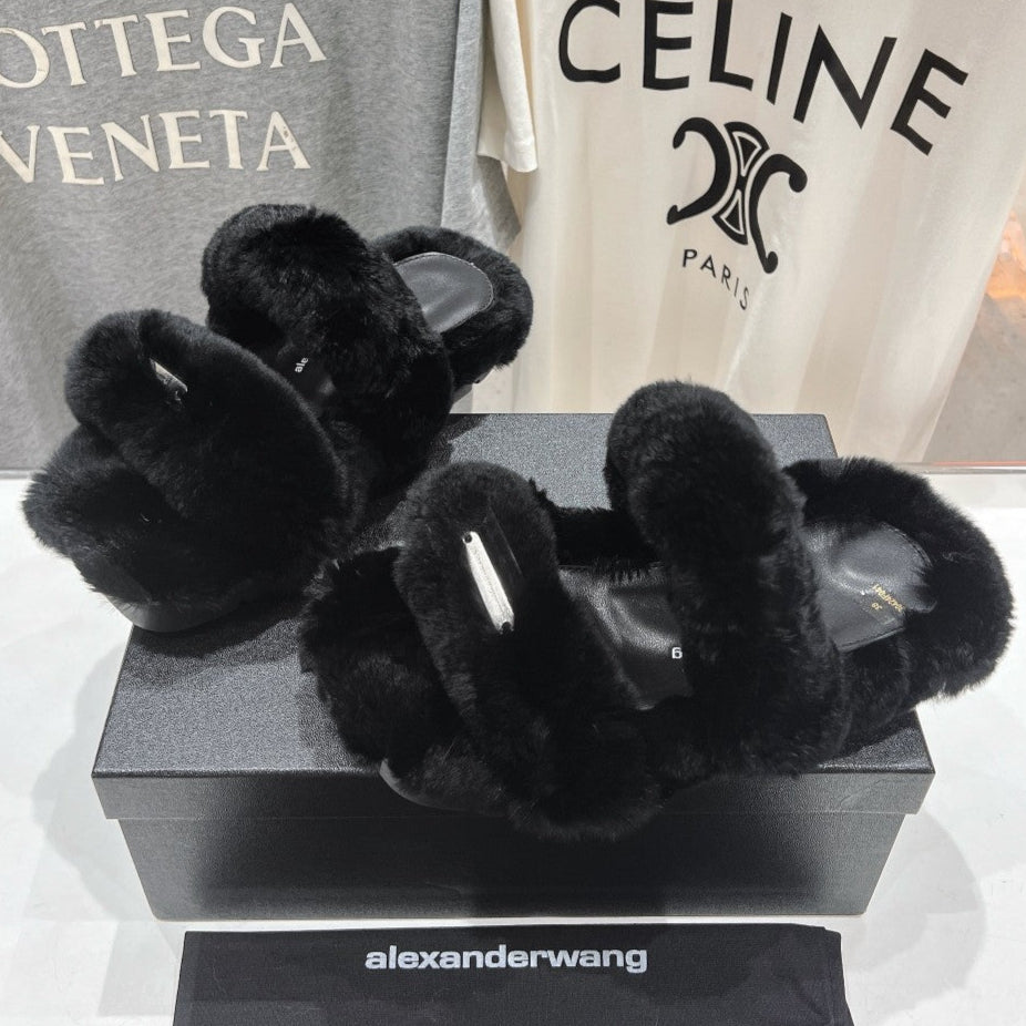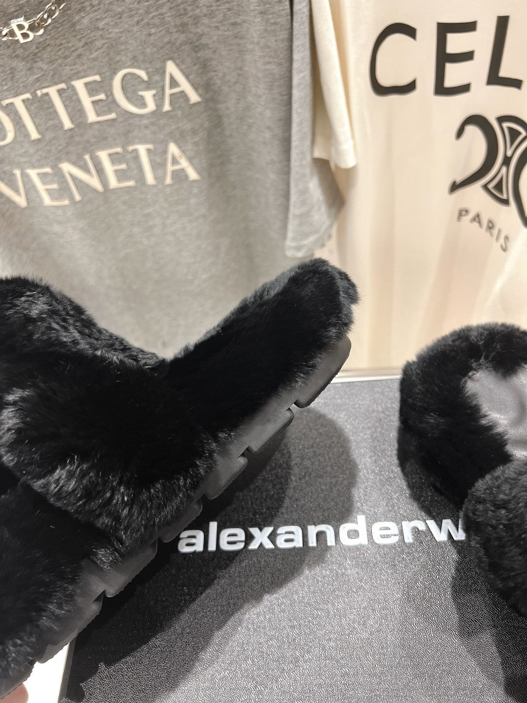 CHUNKY PLATFORM SLIPPER IN BLACK RABBIT FUR
