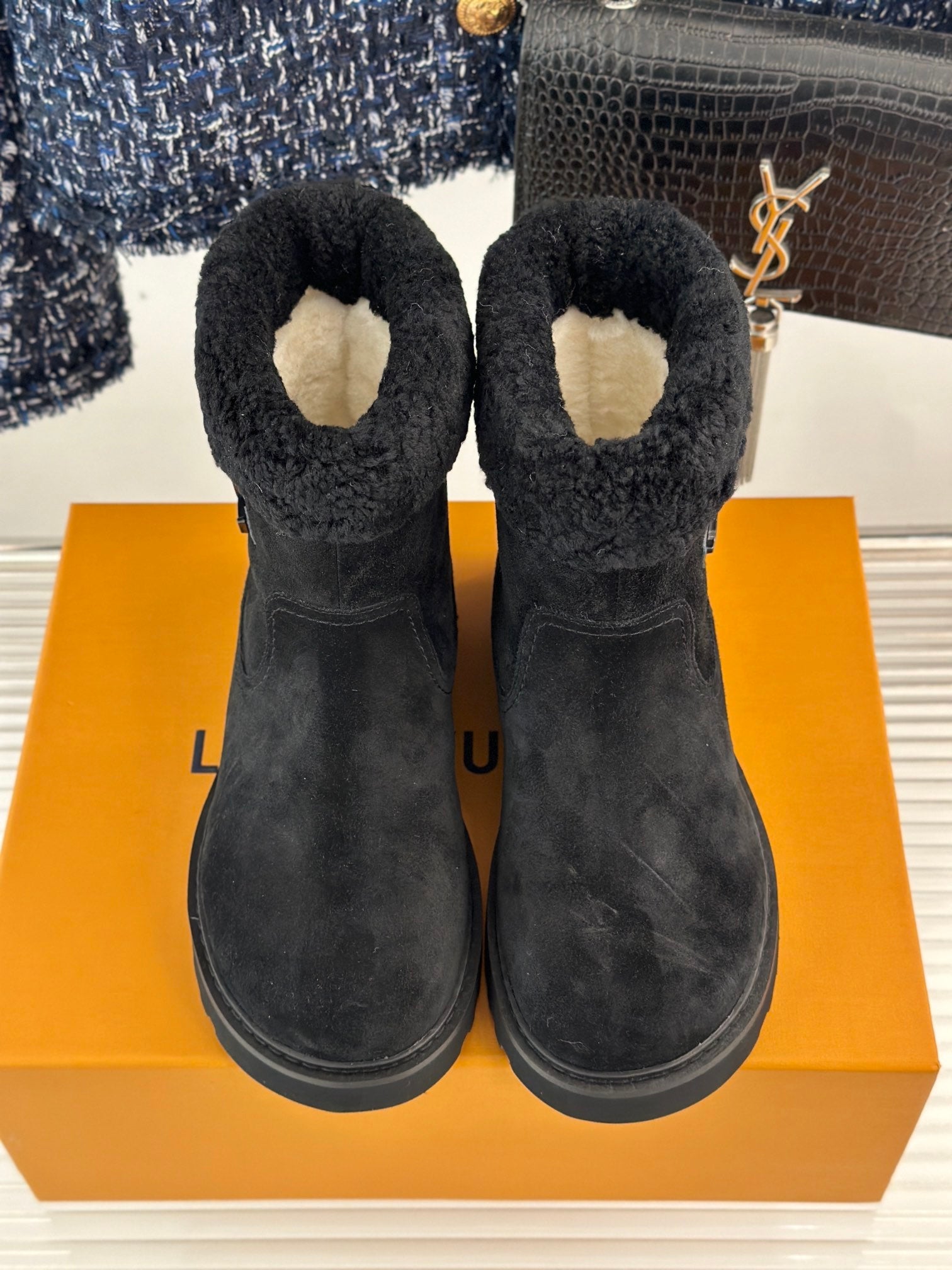 CHUNKY SOLE SNOW BOOTS IN BLACK SUEDE AND WOOL