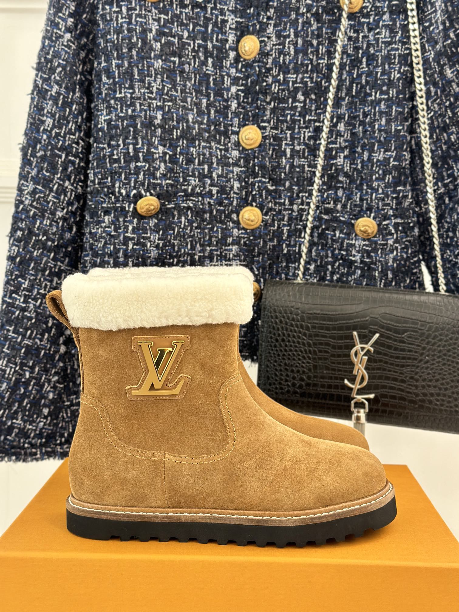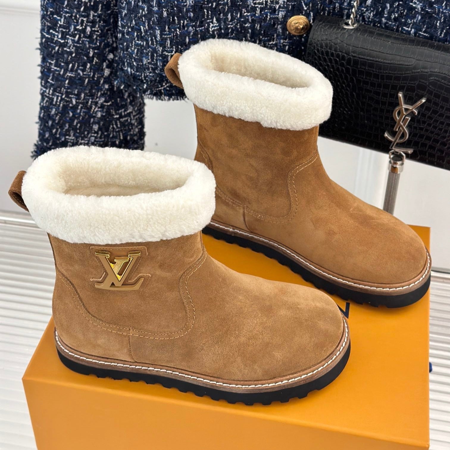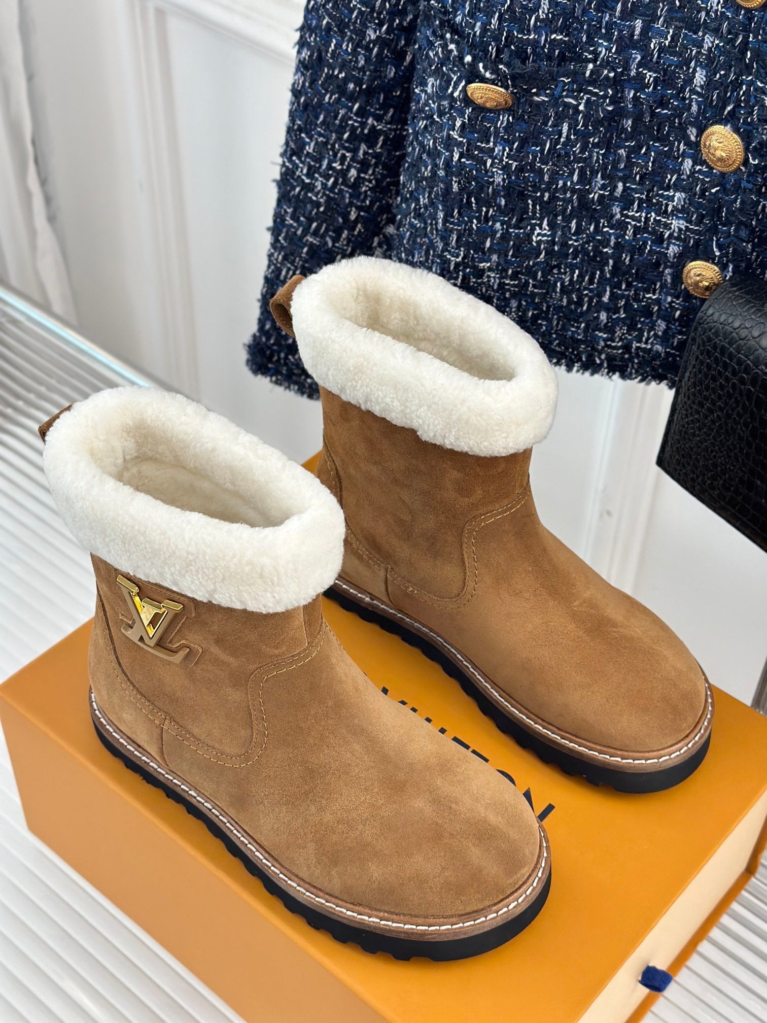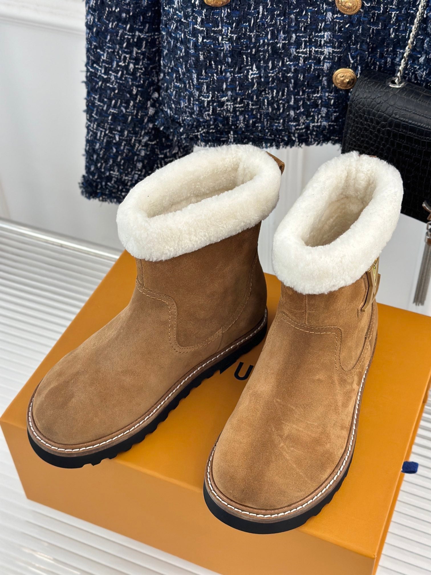 CHUNKY SOLE SNOW BOOTS IN PEANUT BROWN SUEDE AND WHITE WOOL