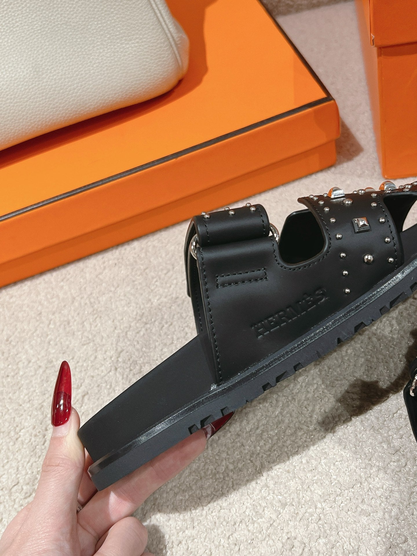 CHYPRE SANDAL BLACK CALFSKIN ATTACH CRYSTALS