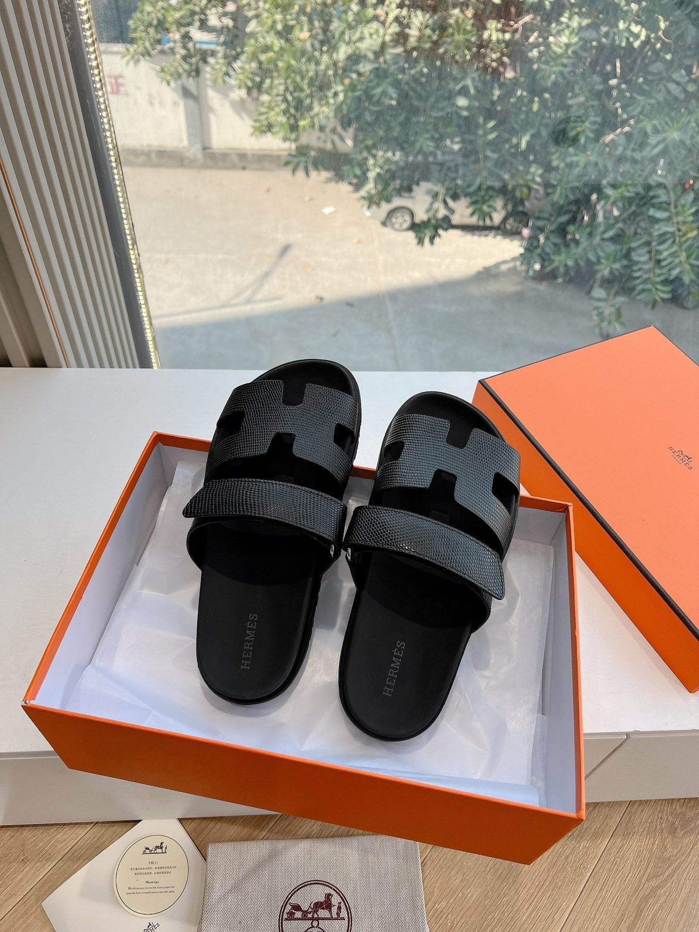 CHYPRE SANDAL IN BLACK SHINY GRAINED CALFSKIN