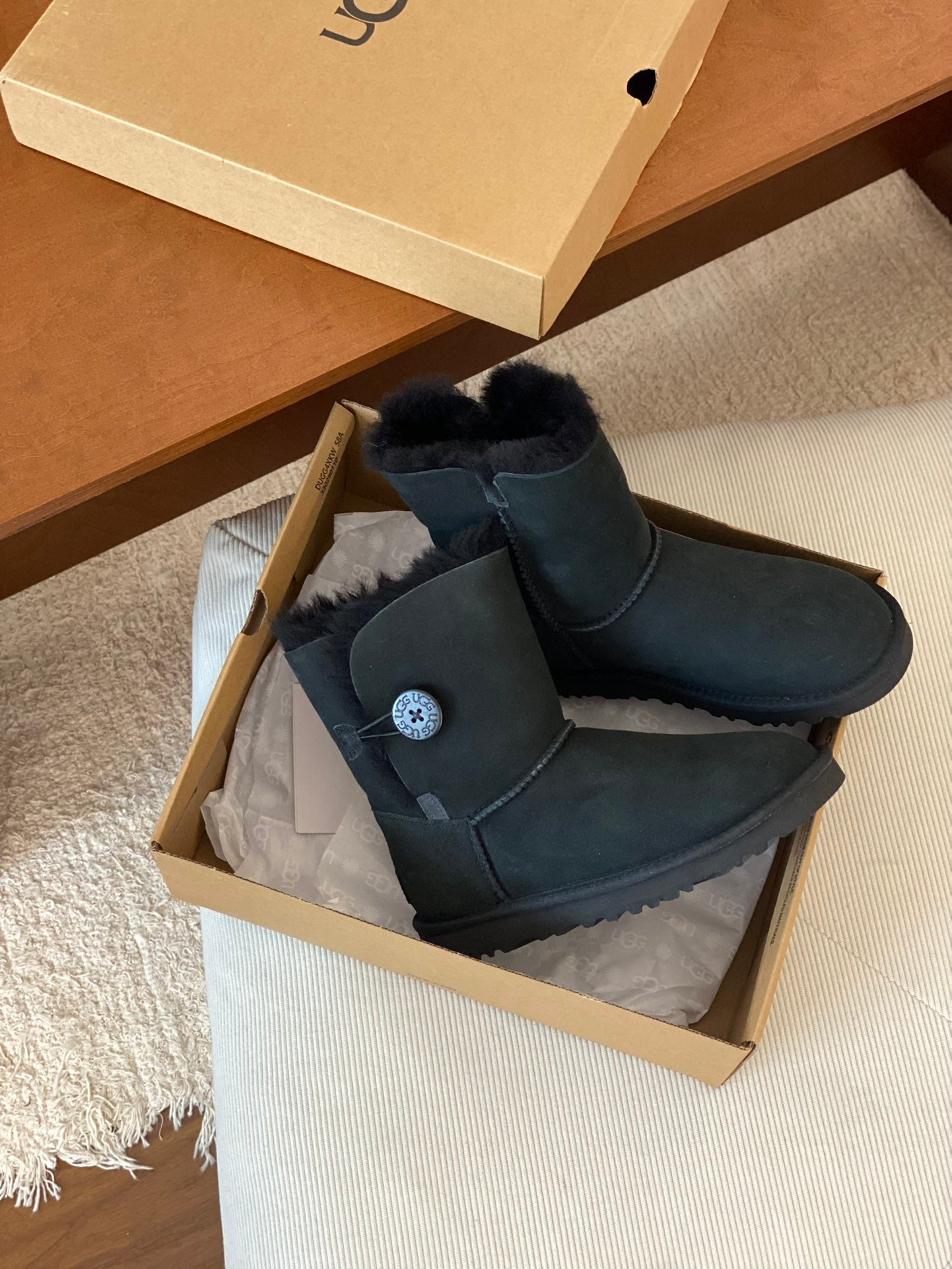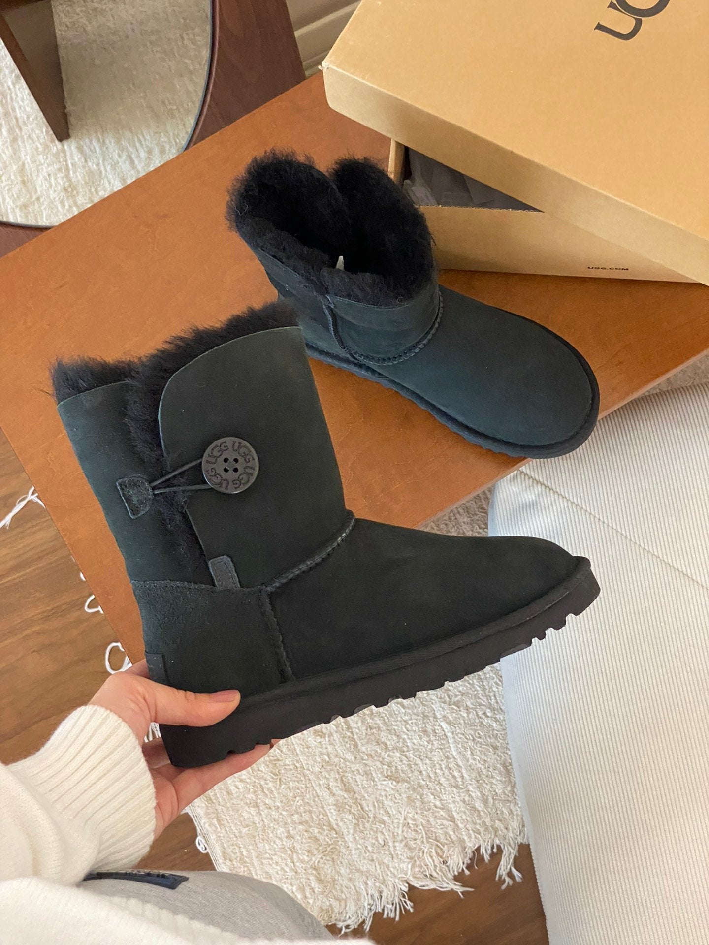 CLASSIC BAILEY BOOTS WITH BUTTONS IN BLACK SUEDE AND WOOL LINED
