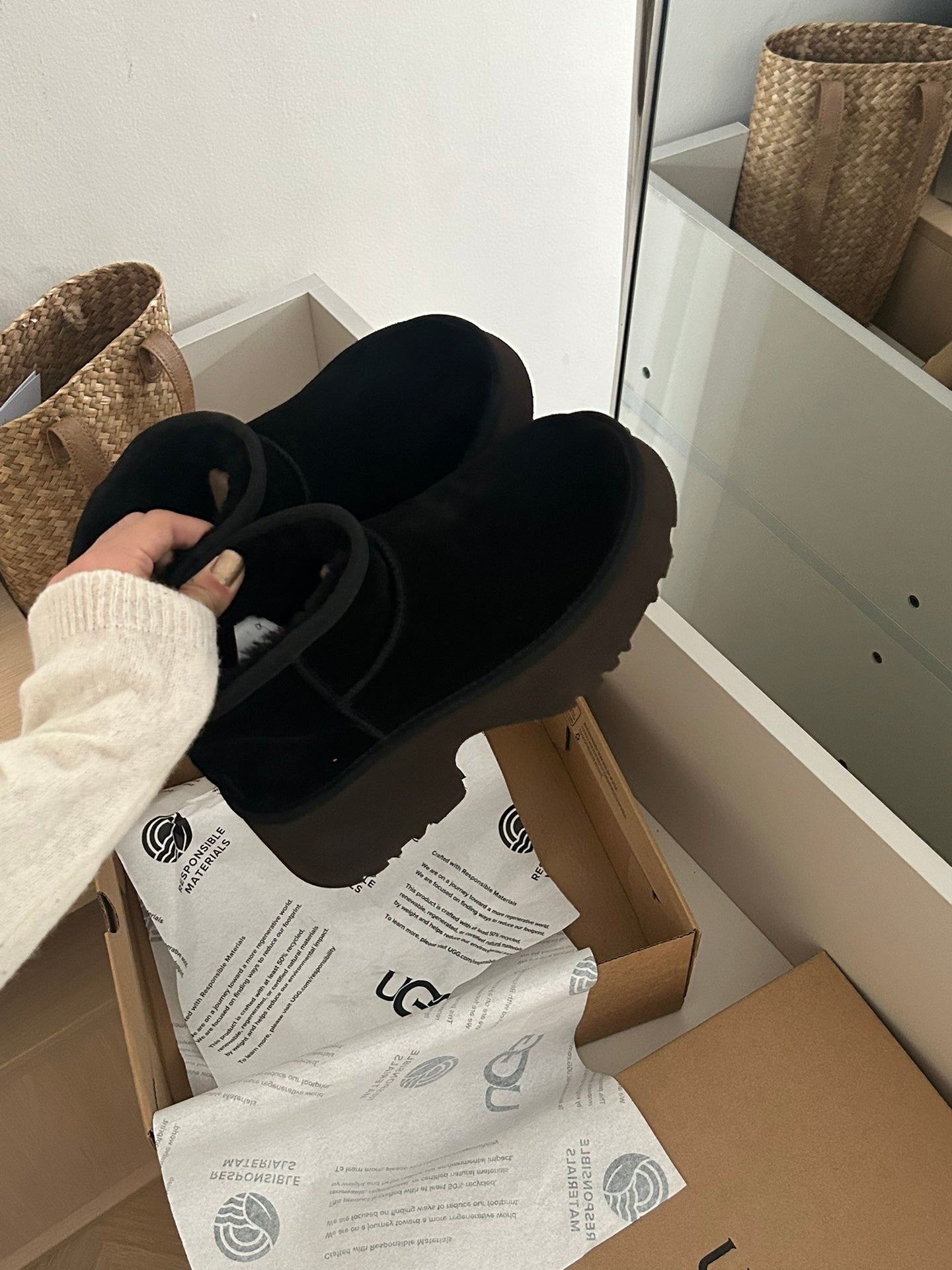 CLASSIC ULTRA MINI PLATFORM IN BLACK MIX CHOCOLATE BROWN SUEDE