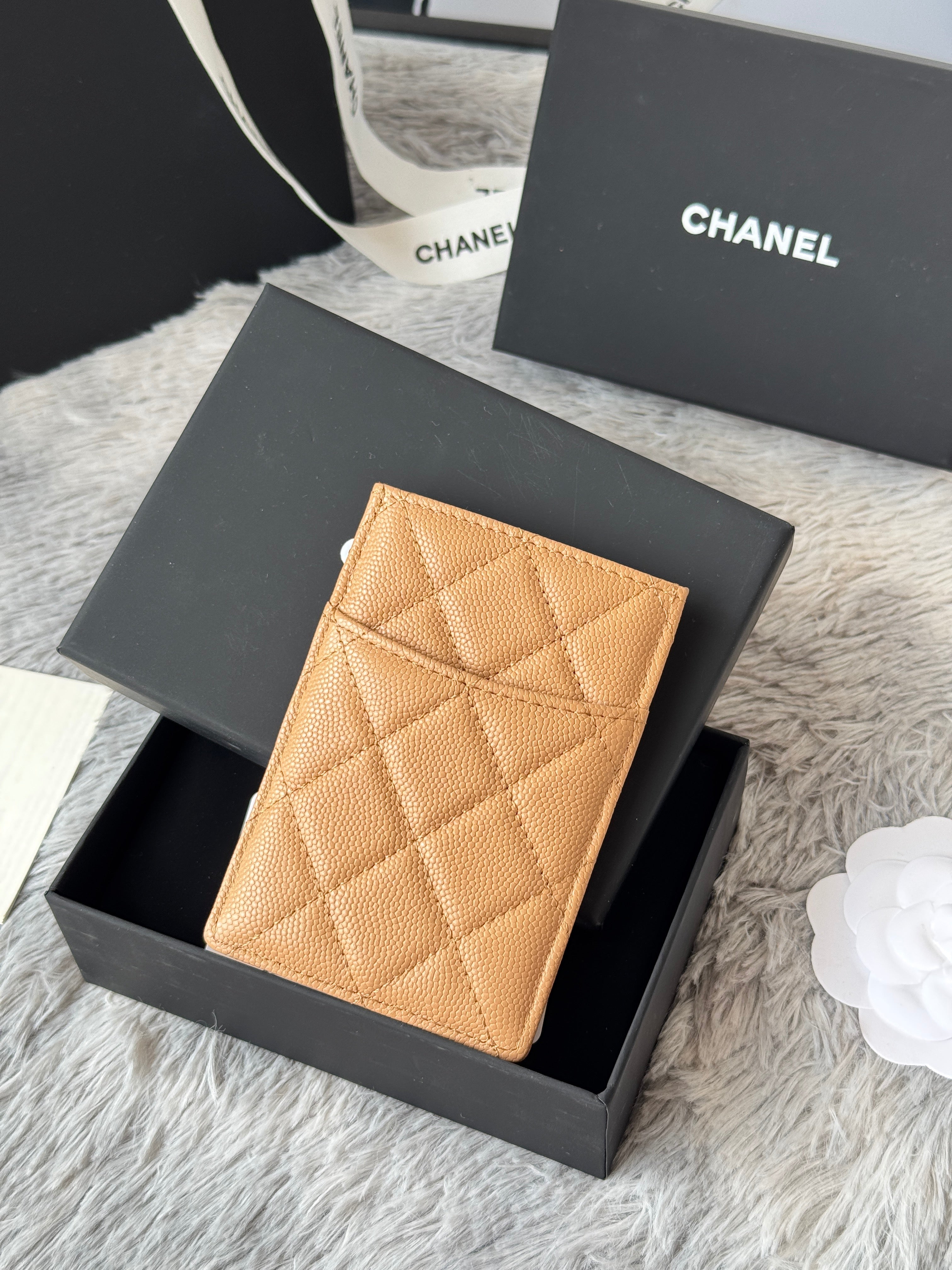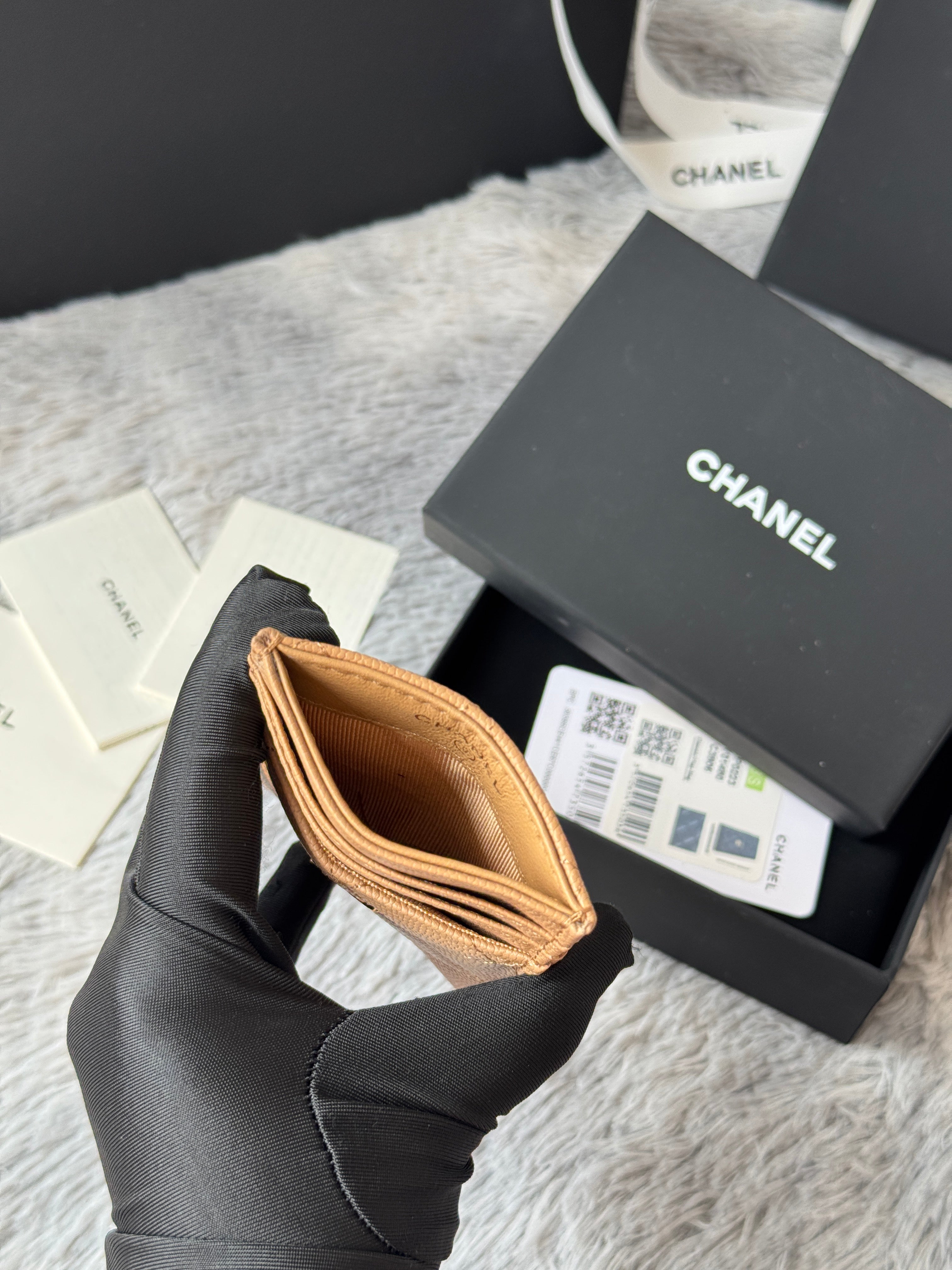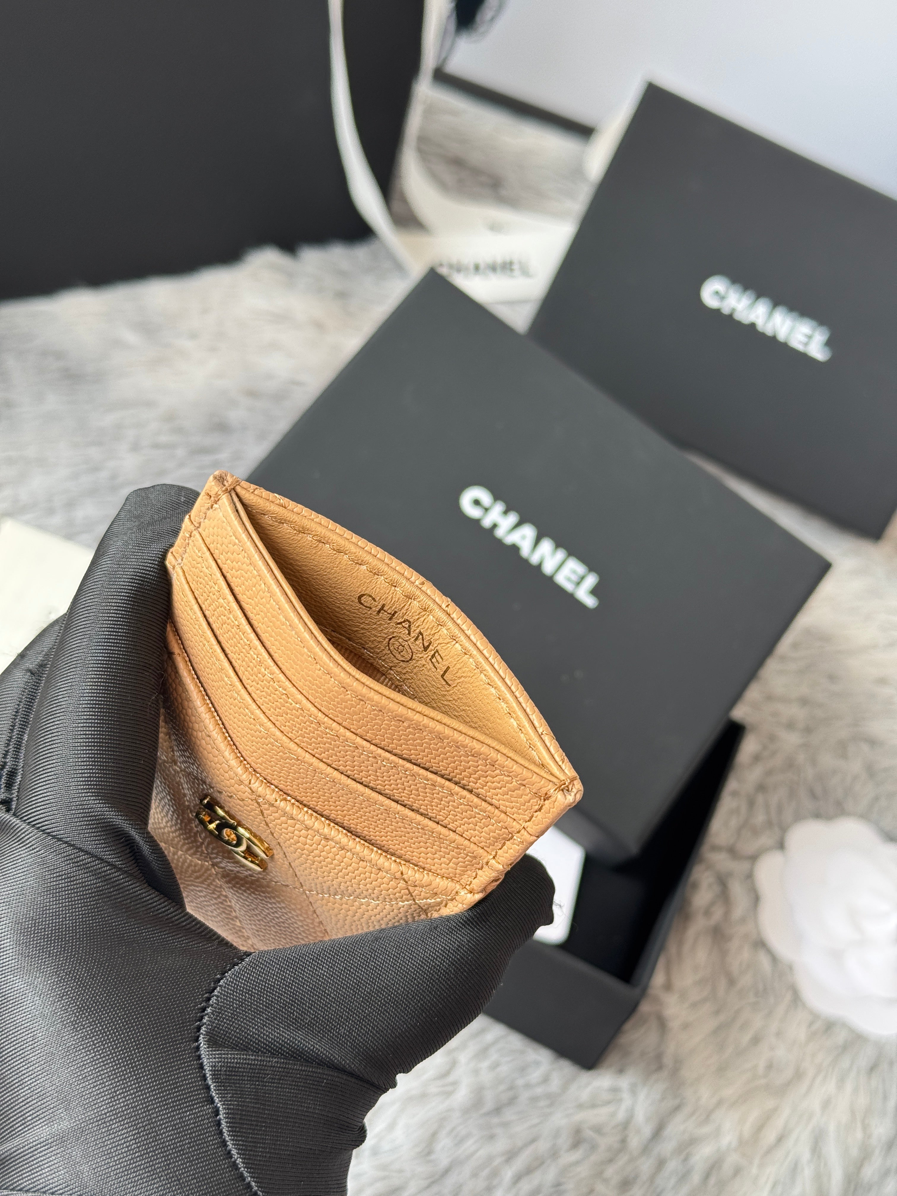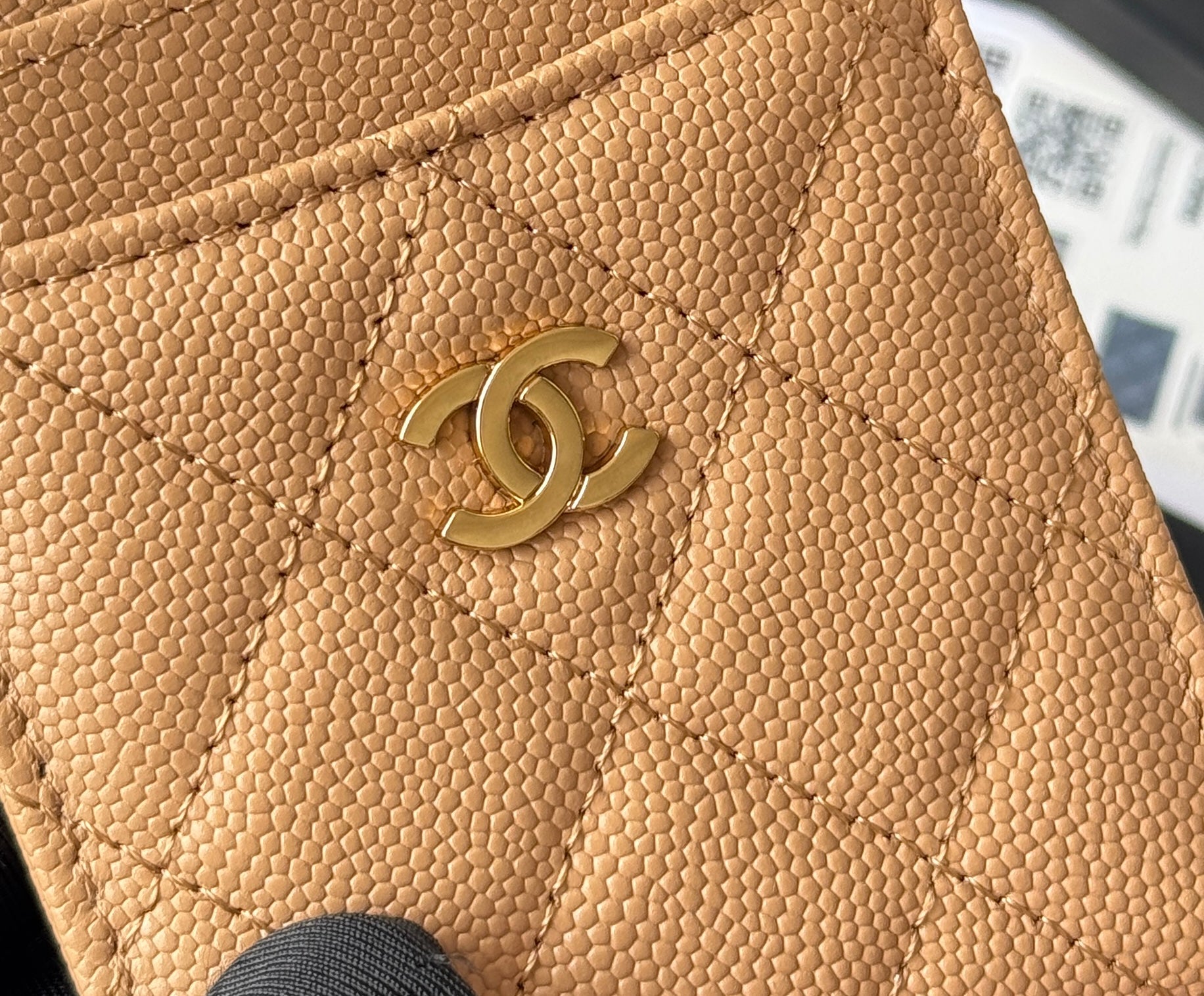 CLASSIC VERTICAL CARD HOLDER 14 IN LIGHT BROWN GRAINED CALFSKIN GOLD-TONE METALLIC