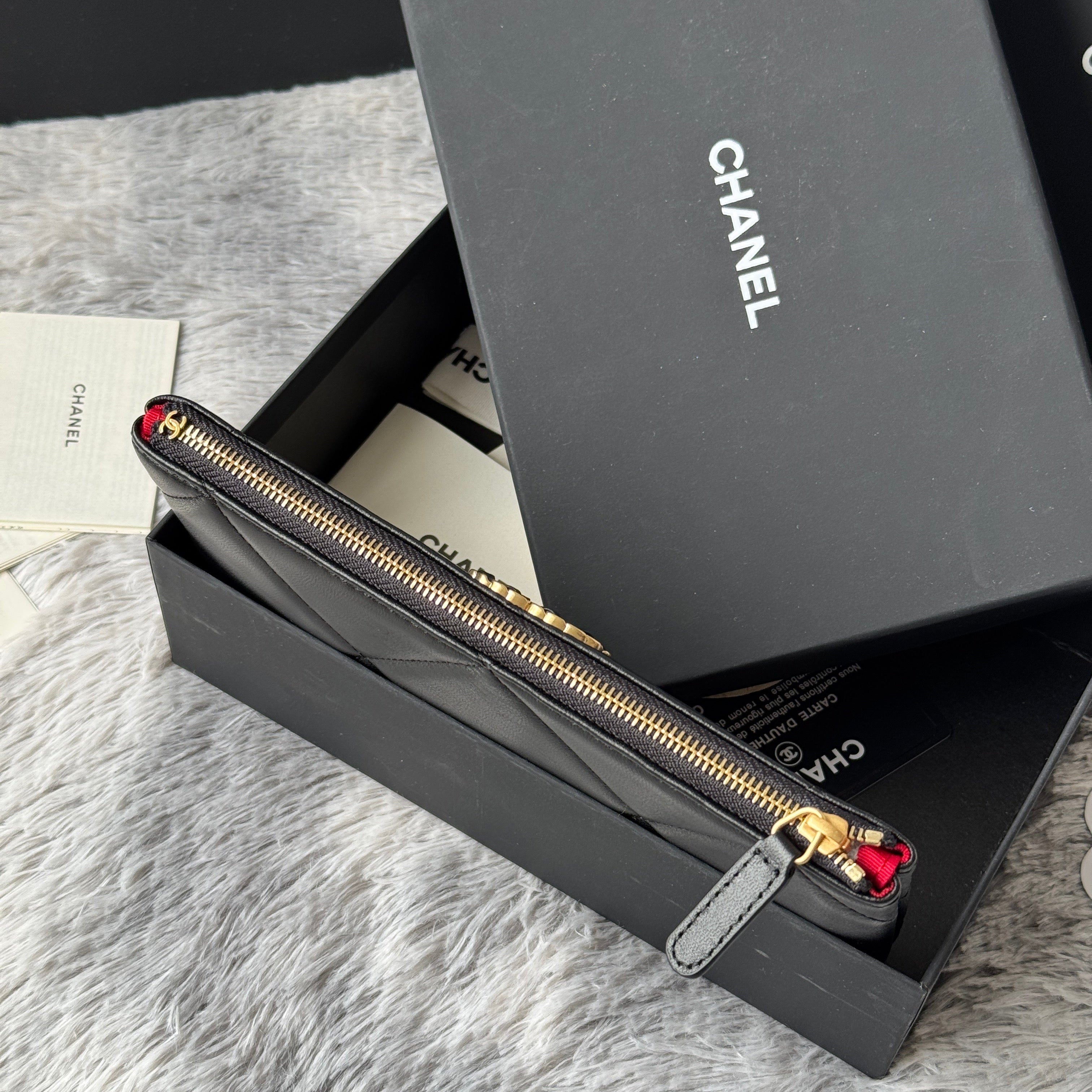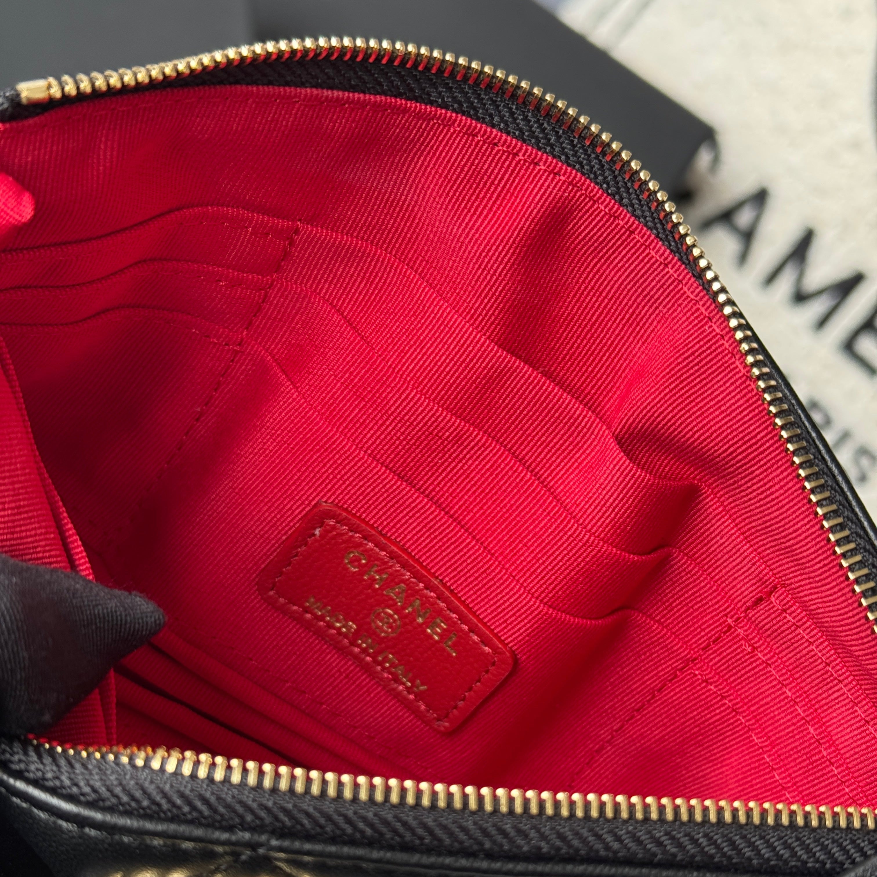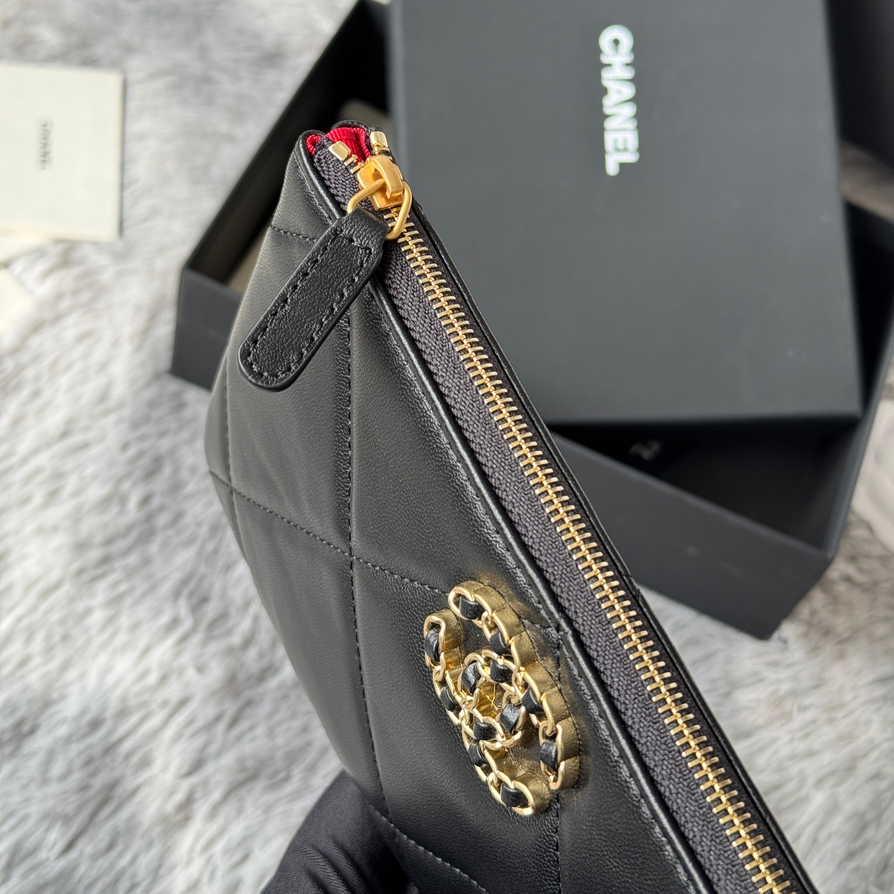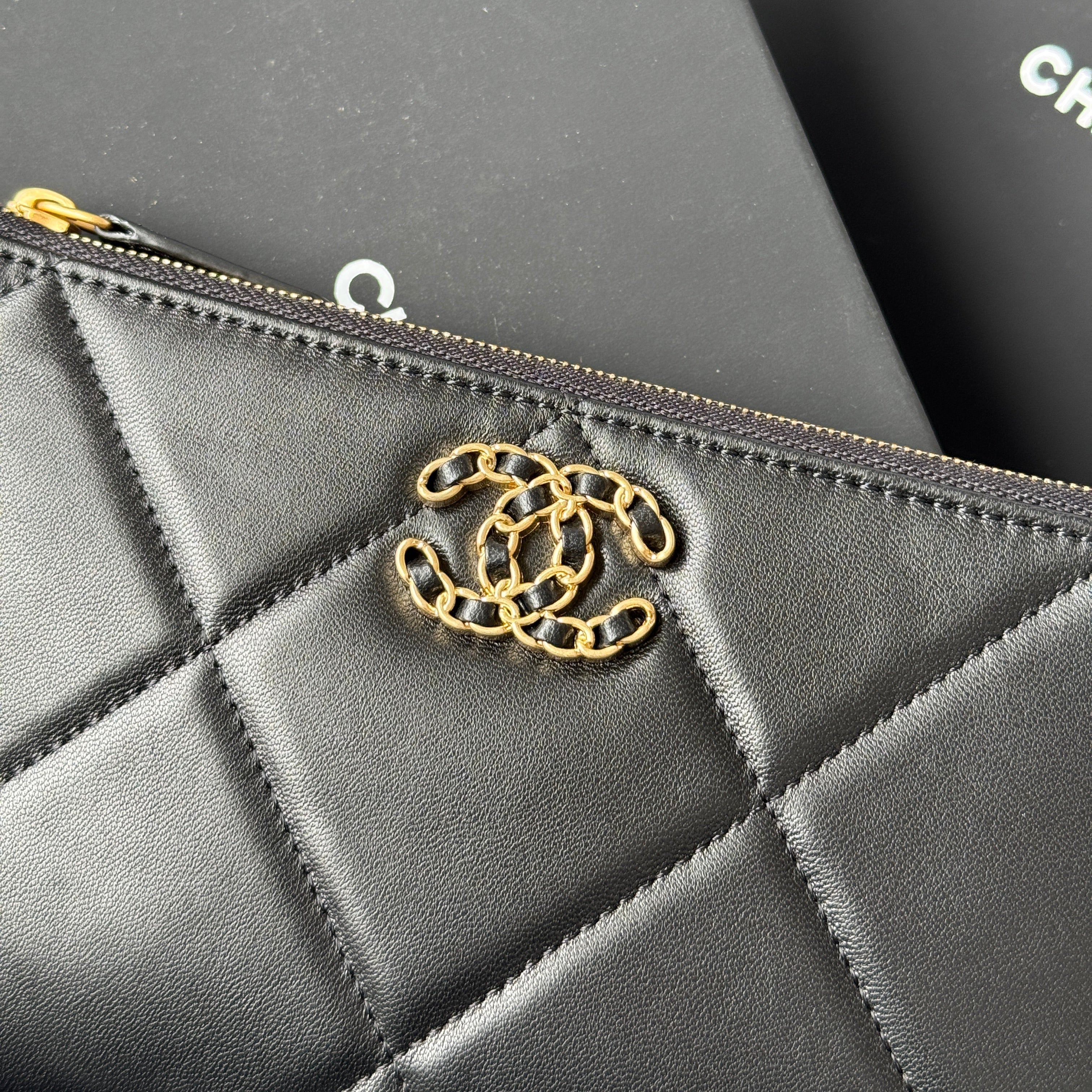 CLASSIC ZIPPER POUCH 20 IN BLACK SMOOTH LAMBSKIN GOLD-TONE HARDWARE