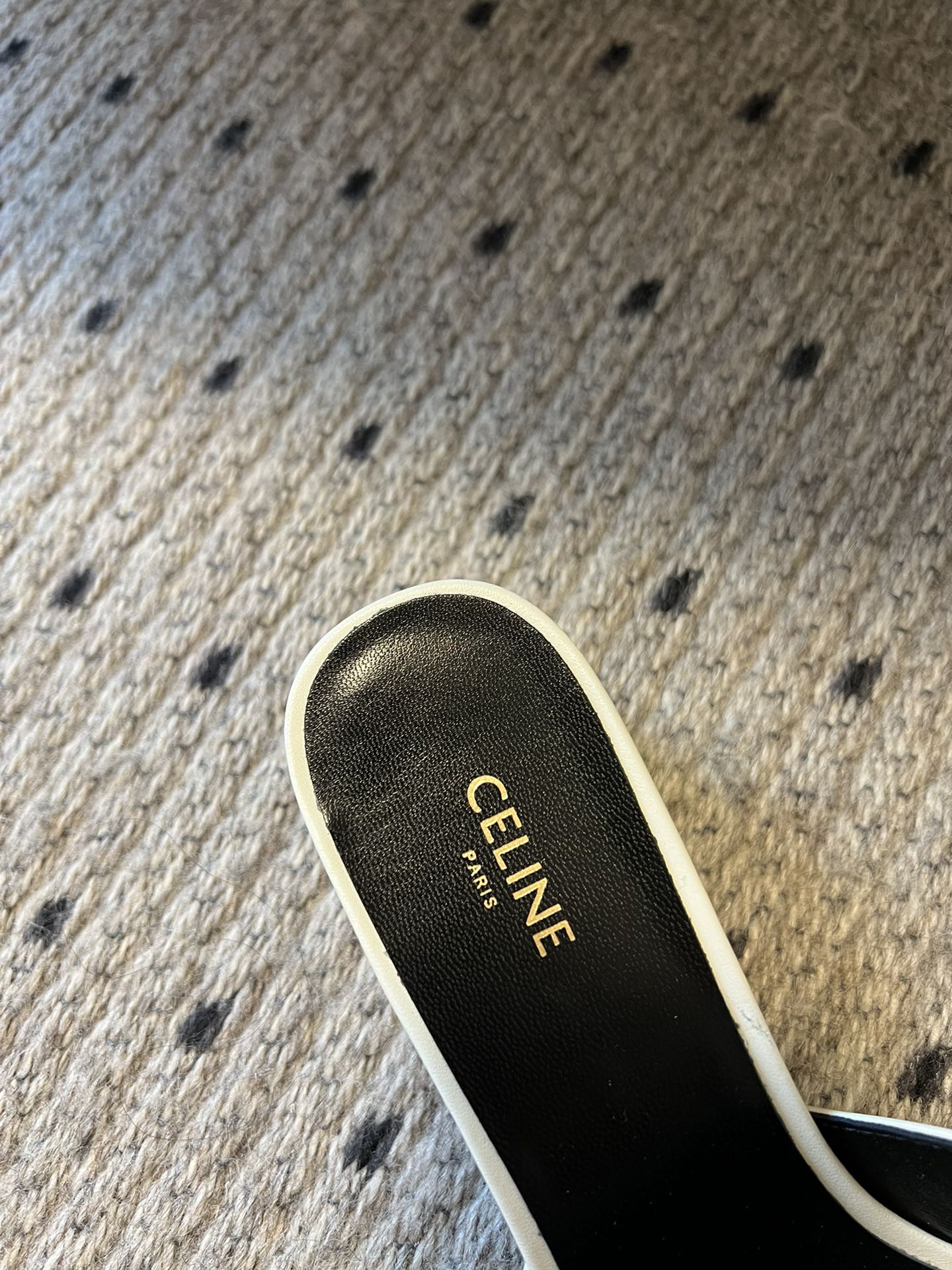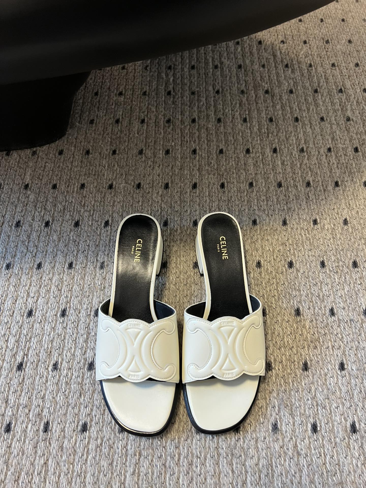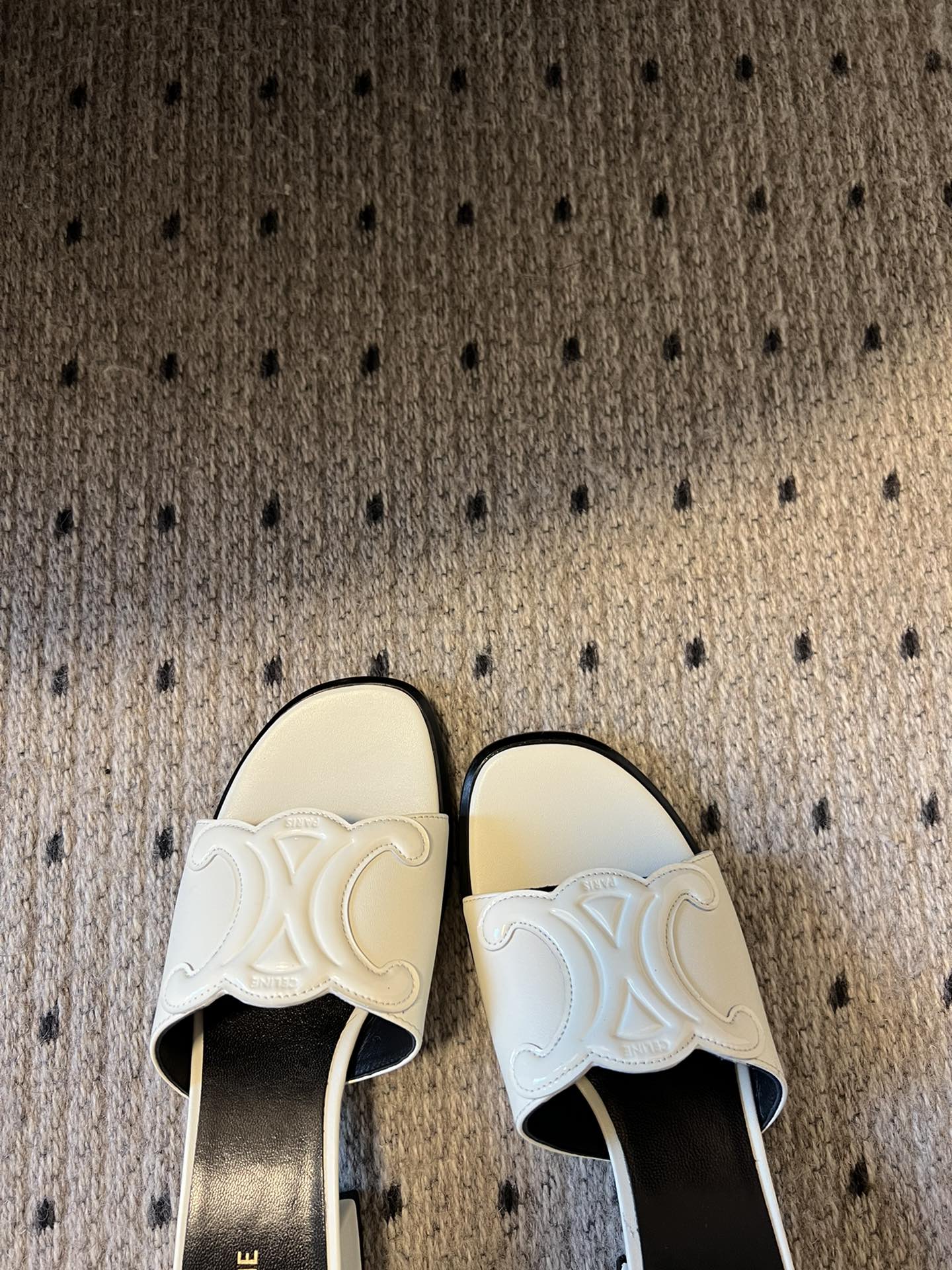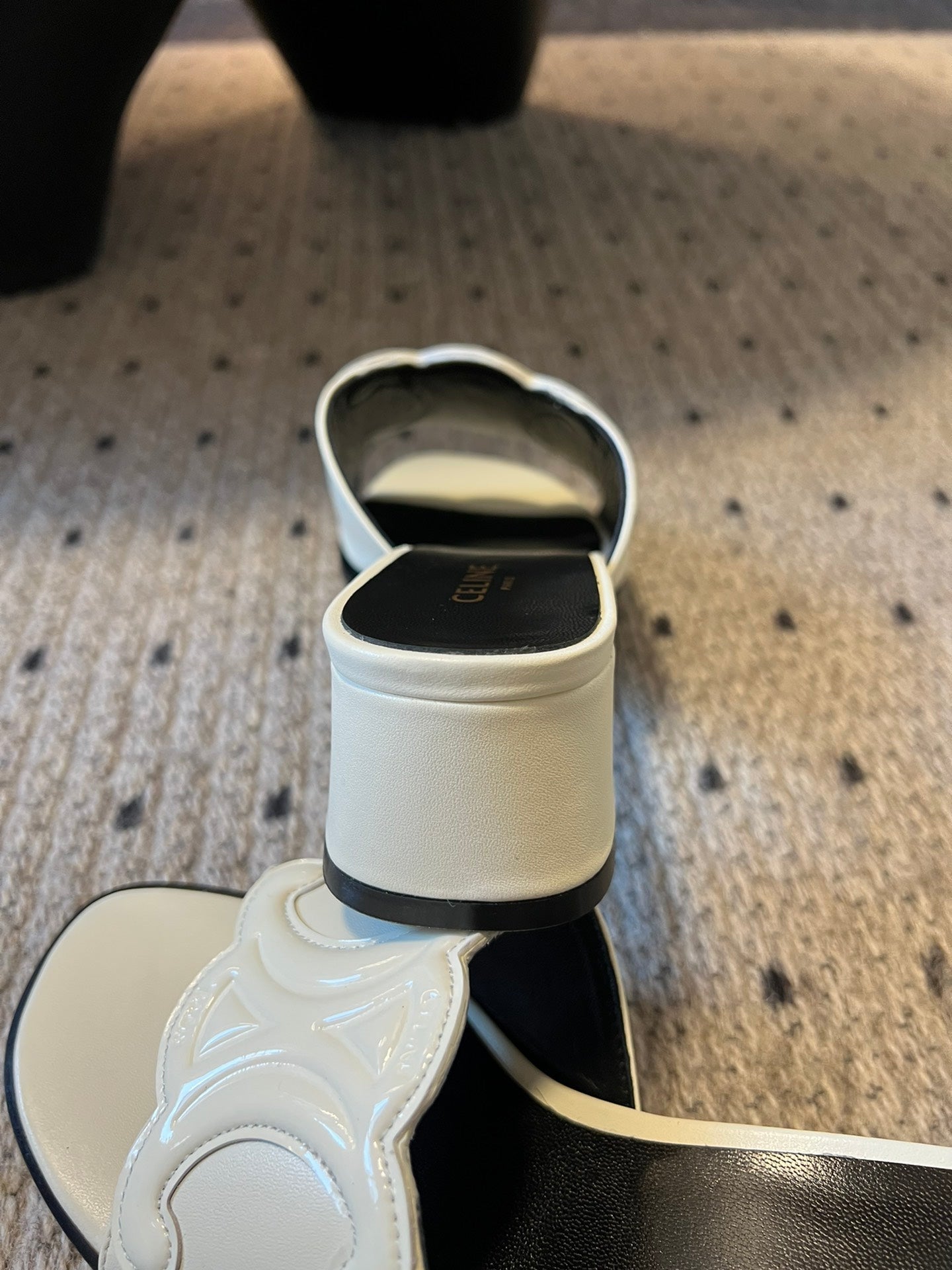 CLEMENCE MULE IN WHITE LAMBSKIN AND PATENT CALFSKIN