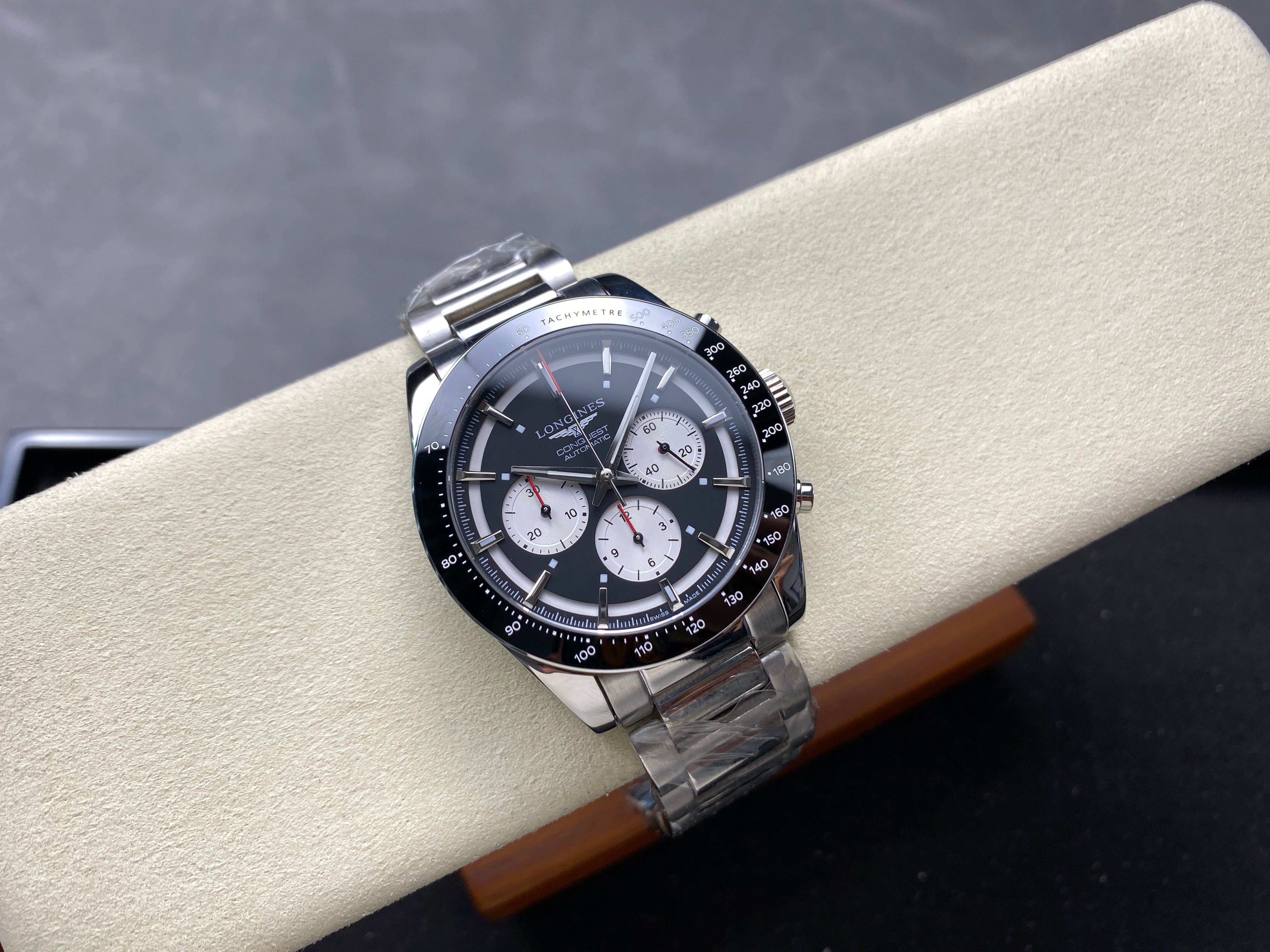 CONQUEST CHRONOGRAPH 42 MM SILVER CASE WITH BLACK DIAL
