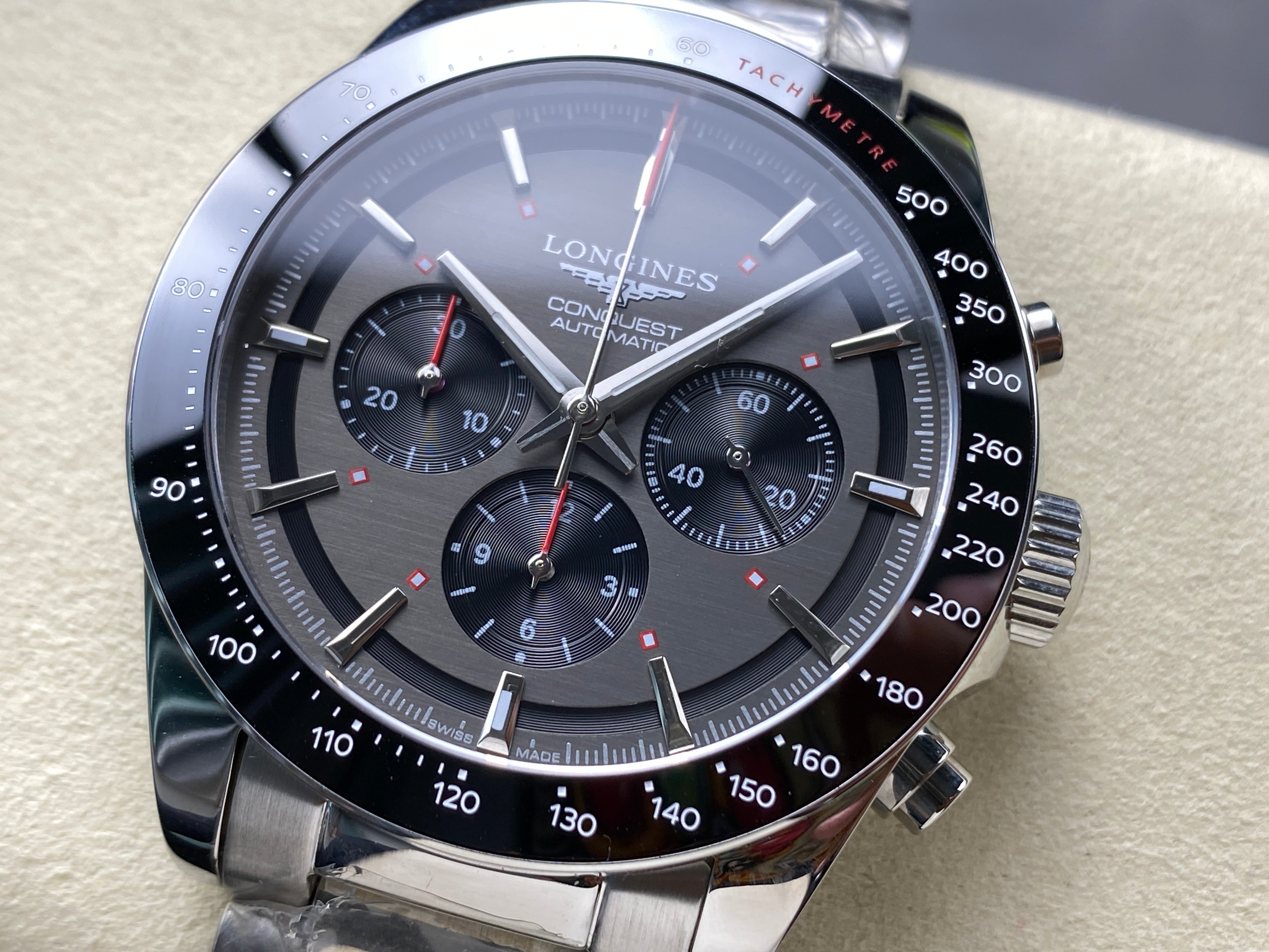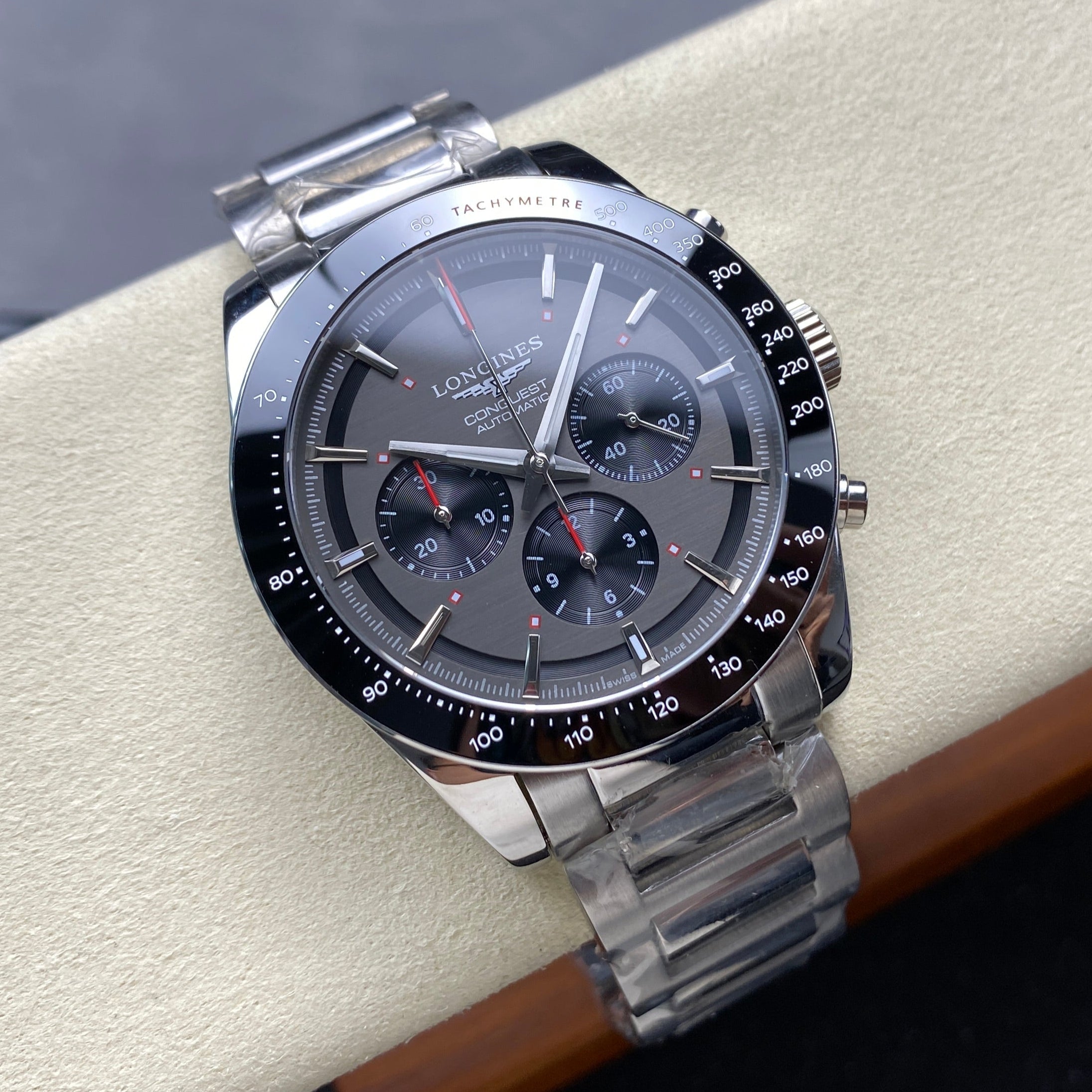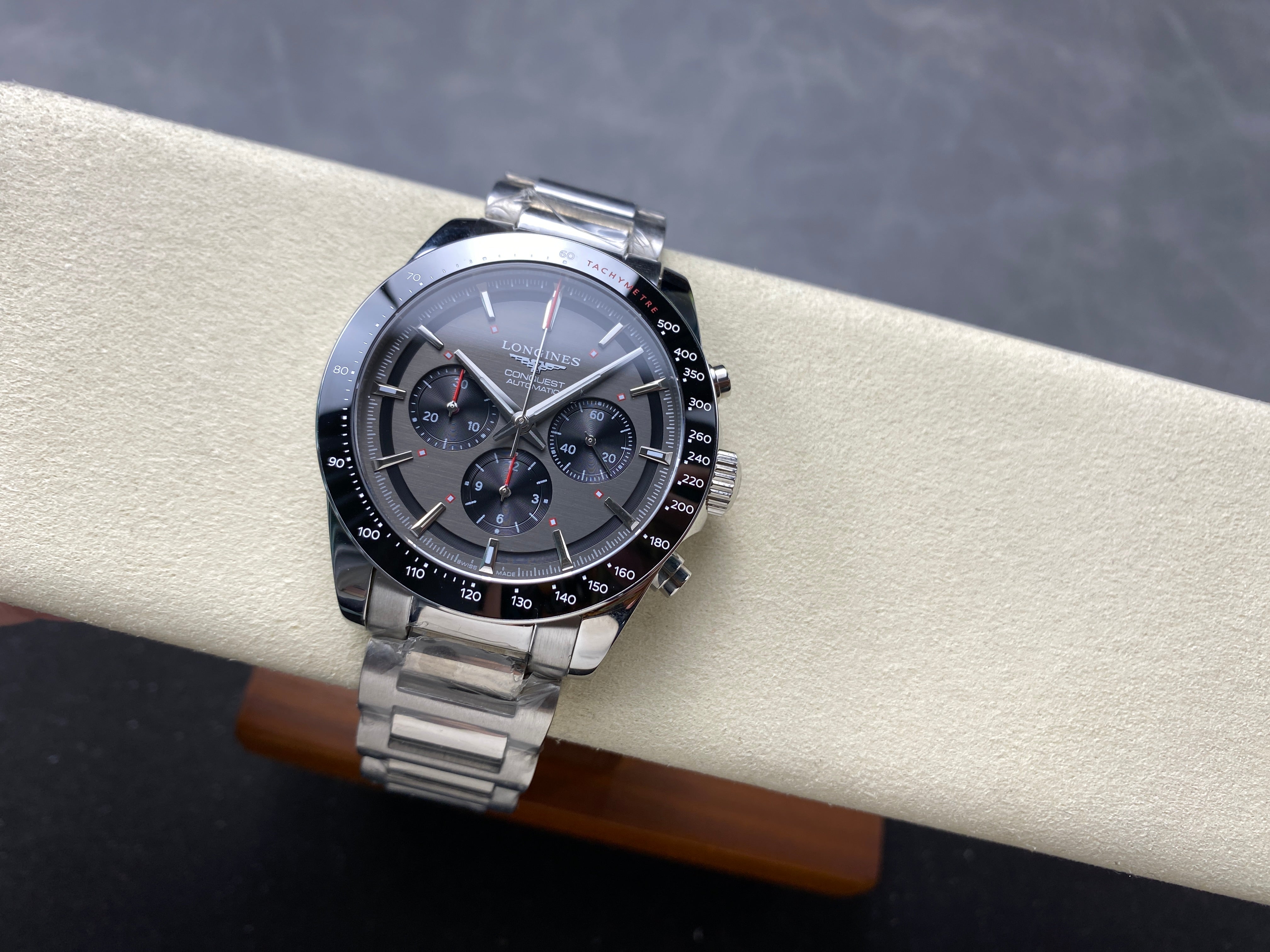 CONQUEST CHRONOGRAPH 42 MM SILVER CASE WITH FULL BLACK DIAL