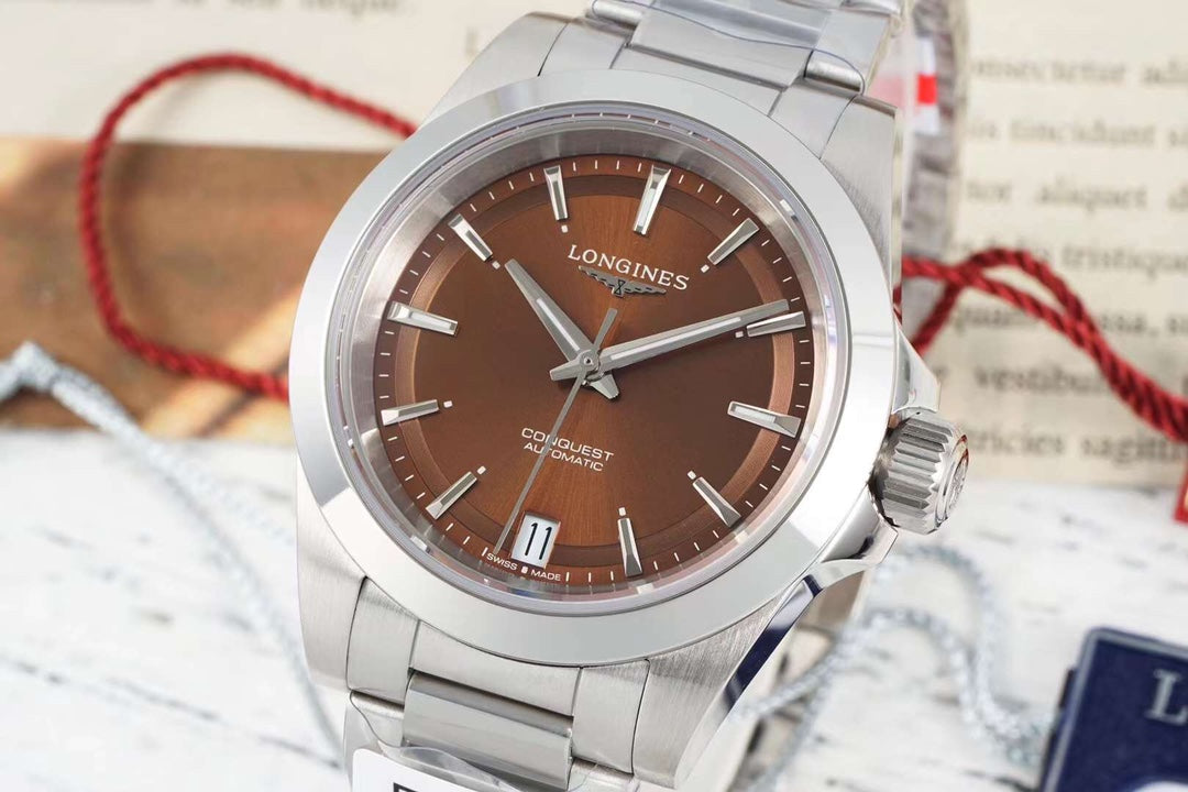 CONQUEST WATCH SILVER CASE WITH CHOCOLATE BROWN DIAL