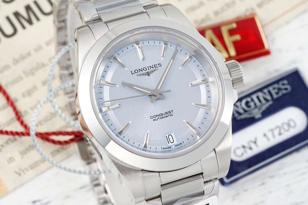 CONQUEST WATCH SILVER CASE WITH COIN GRAY DIAL