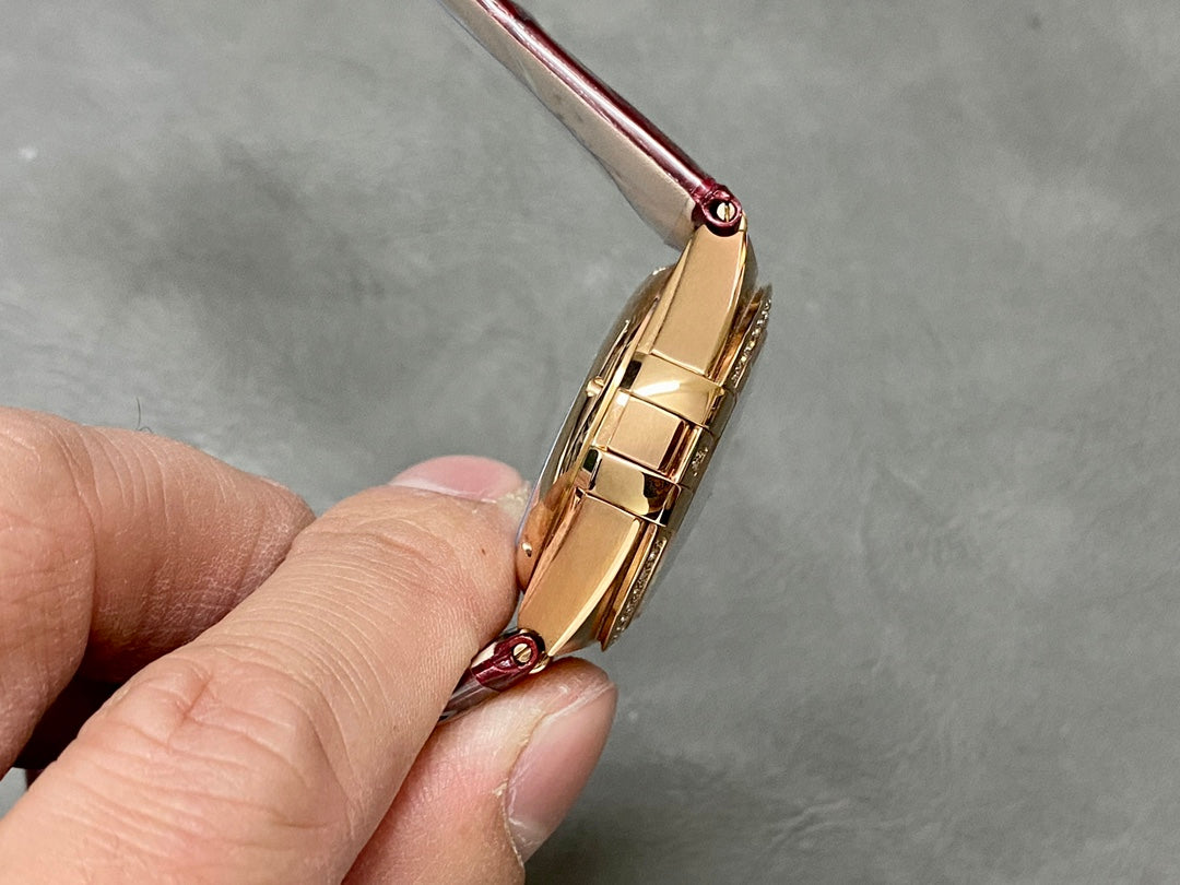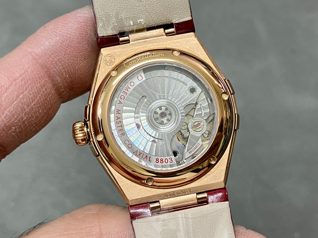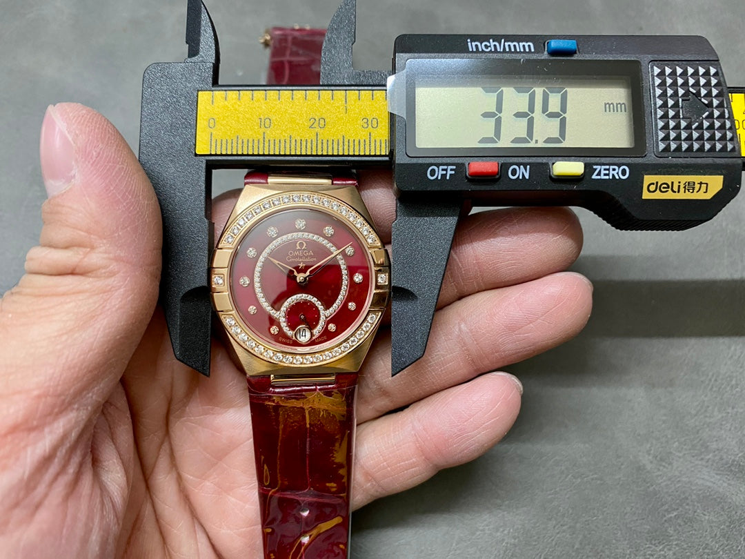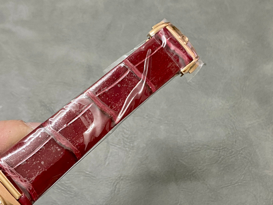 CONSTELLATION 34 MM WATCH ROSE GOLD CASE WITH WINE RED LEATHER STRAP