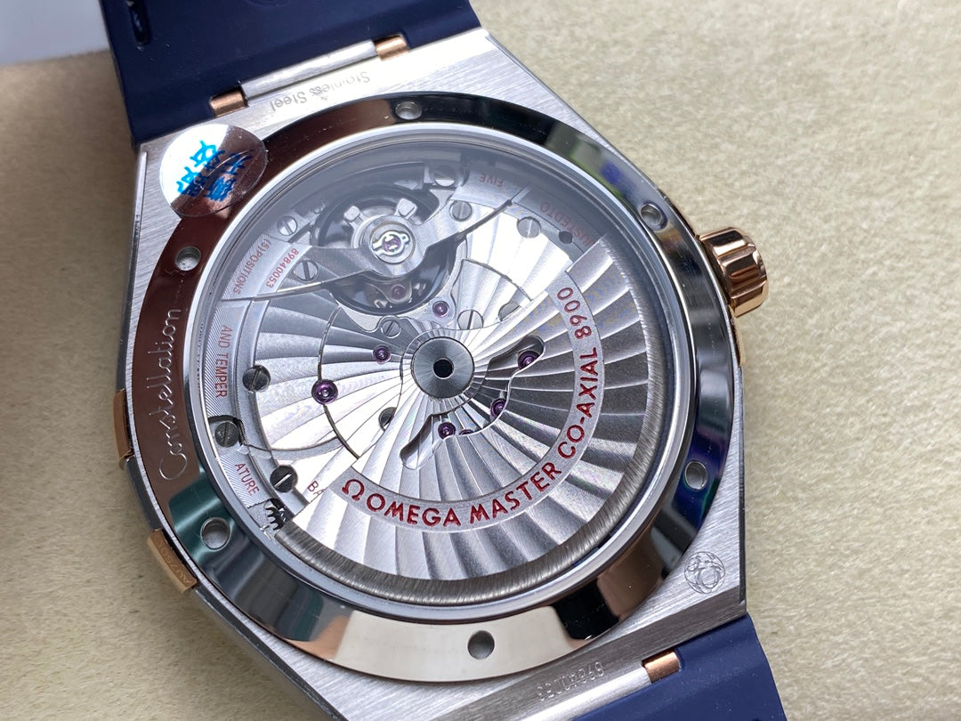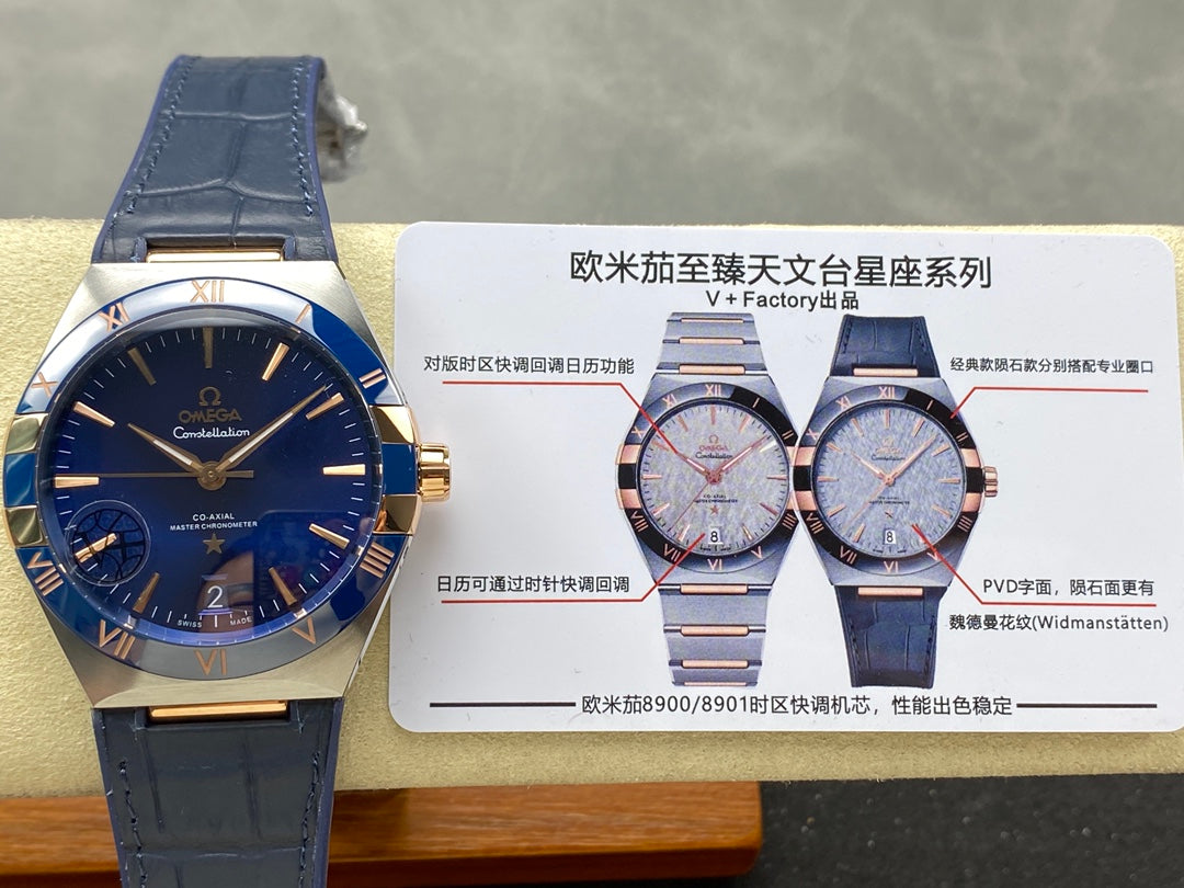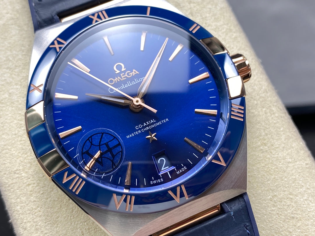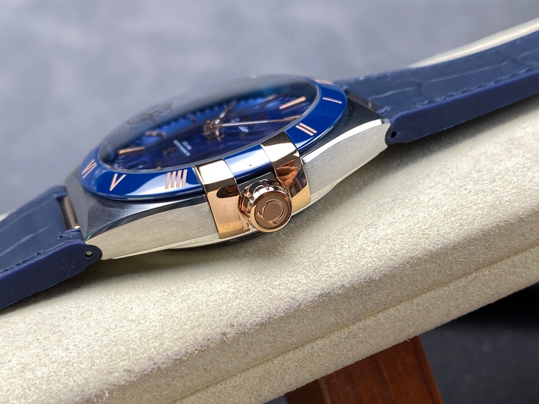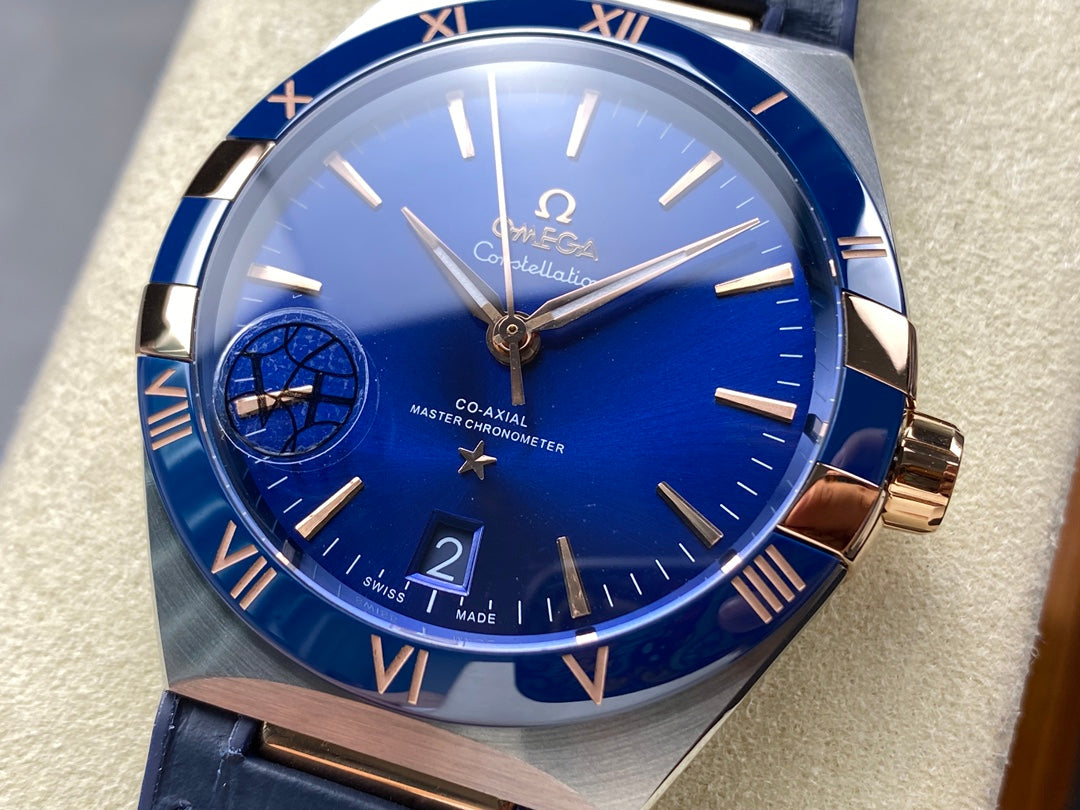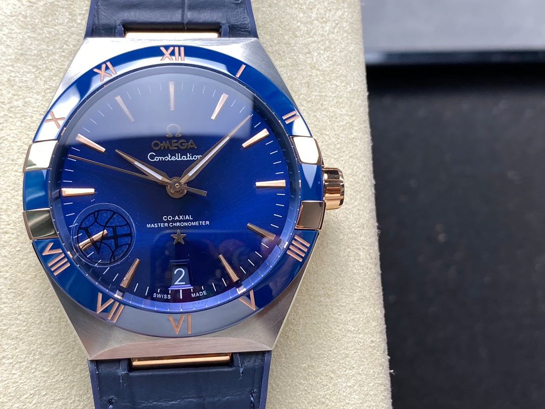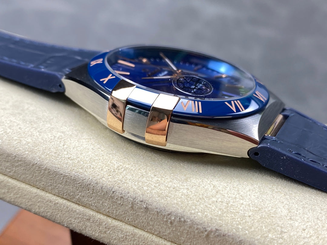CONSTELLATION 41 MM STEEL CASE WITH NAVY DIAL AND LEATHER STRAP