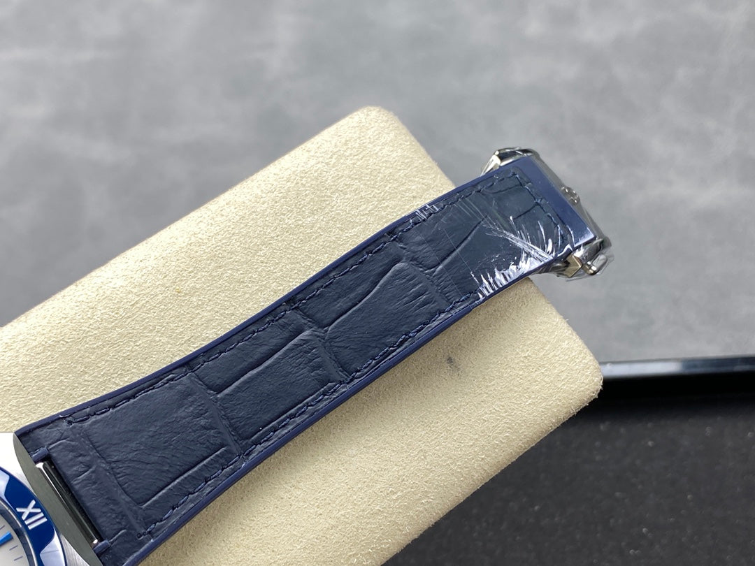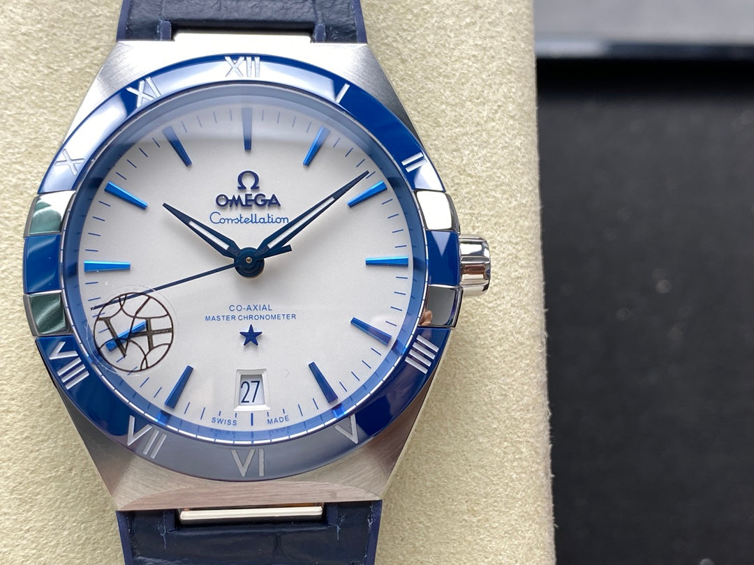 CONSTELLATION 41 MM STEEL CASE WITH WHITE DIAL AND NAVY BLUE LEATHER STRAP
