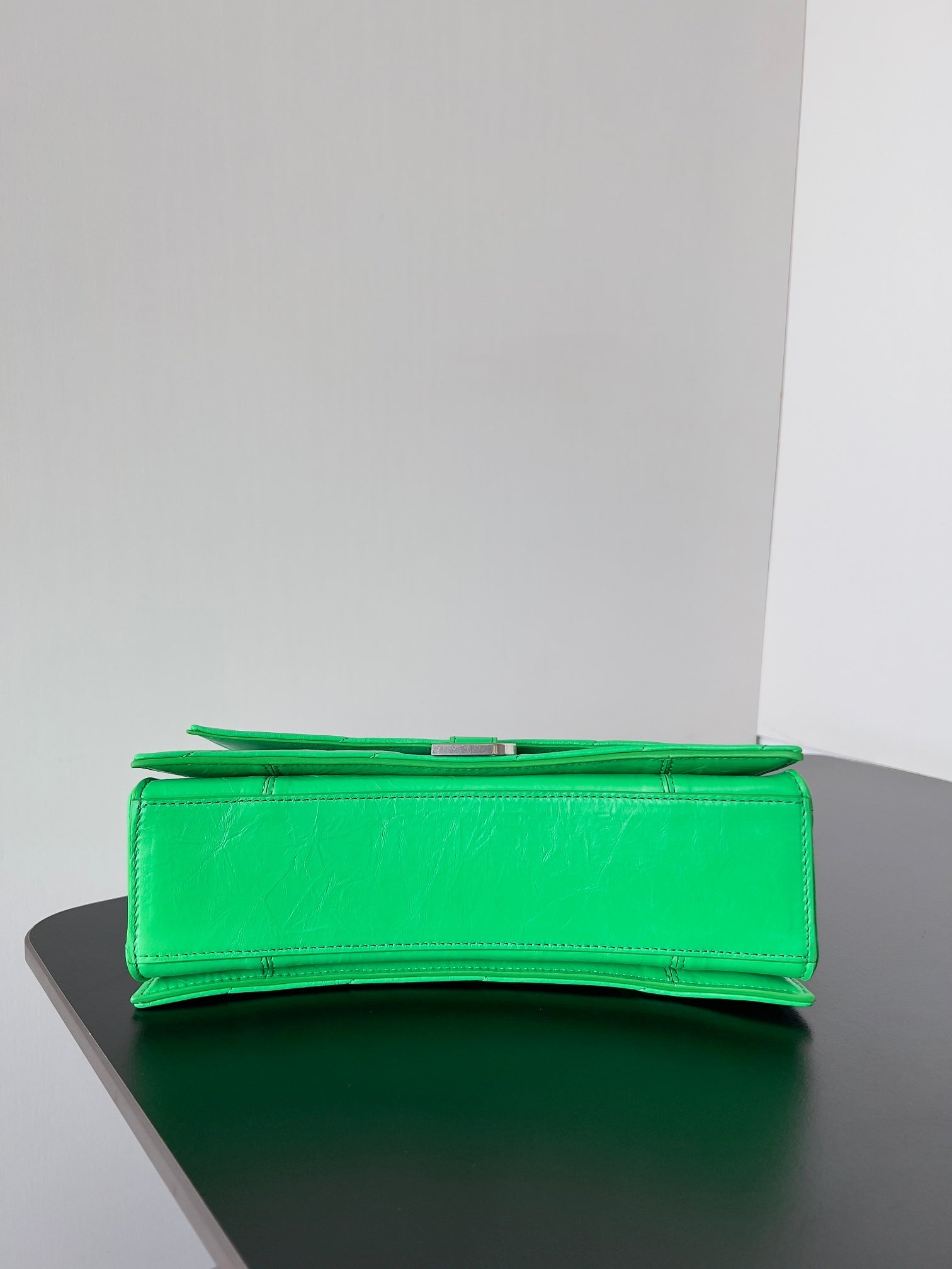 CRUSH CHAINED BAG 25 IN GREEN QUILTED CRUSHED CALFSKIN SILVER HARDWARE