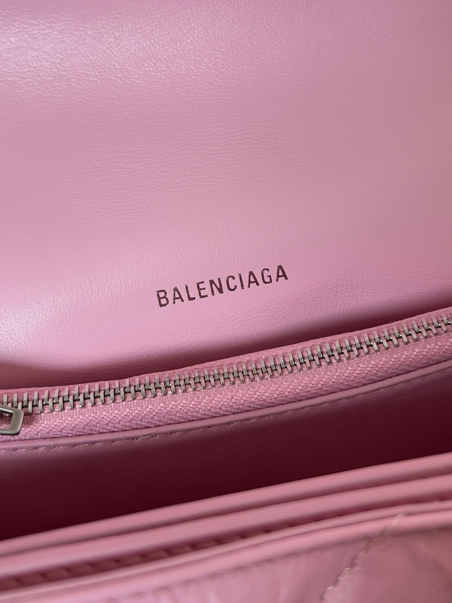 CRUSH CHAINED BAG 25 IN PINK QUILTED CRUSHED CALFSKIN SILVER HARDWARE