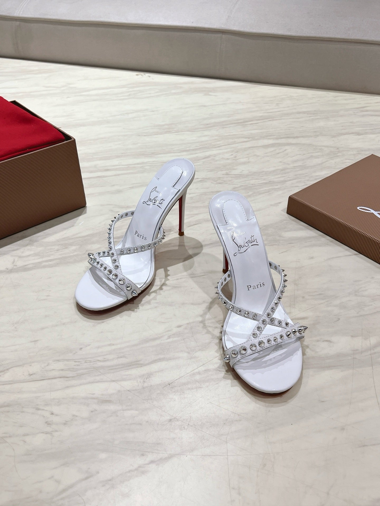 CRYSTAL GLITTER CRISS-CROSS STRAP SANDALS IN WHITE CALFSKIN