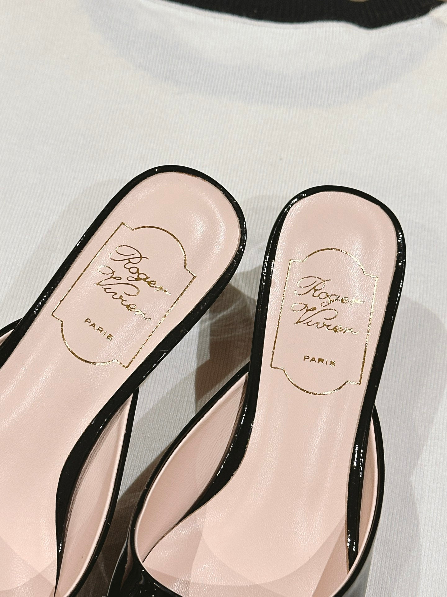 CRYSTAL HEEL MULE IN BLACK PATENT CALFSKIN WITH EMBELLISHED BUCKLE