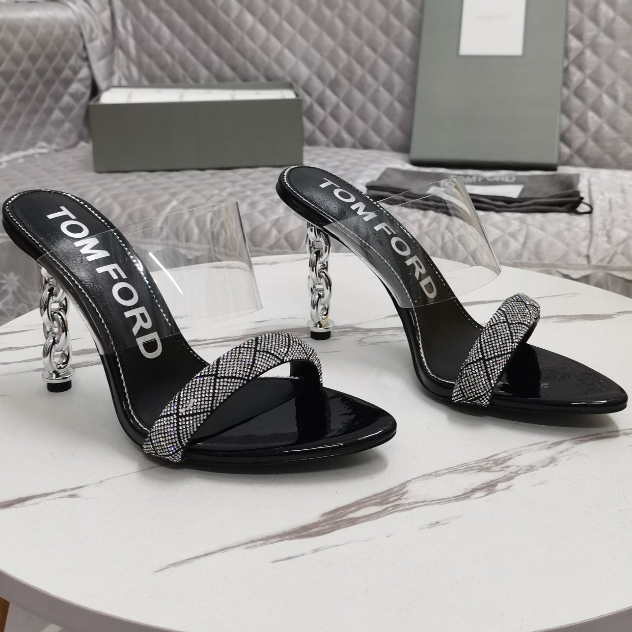 CRYSTAL HIGH HEEL MULE 10 CM IN BLACK LAMBSKIN