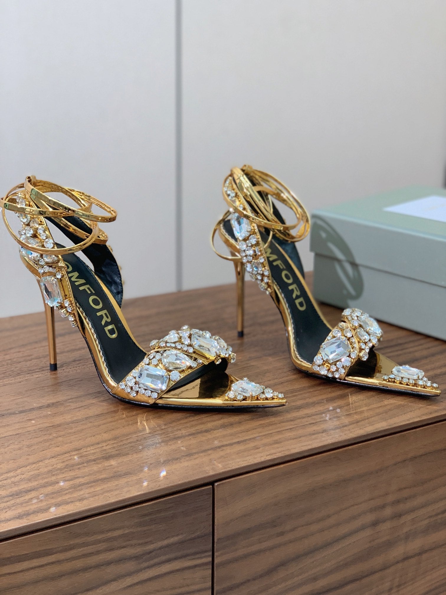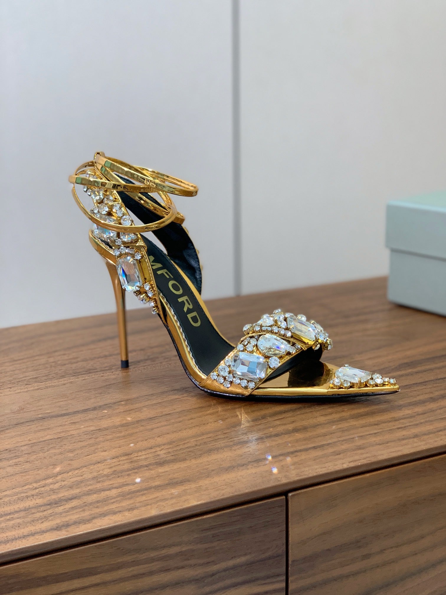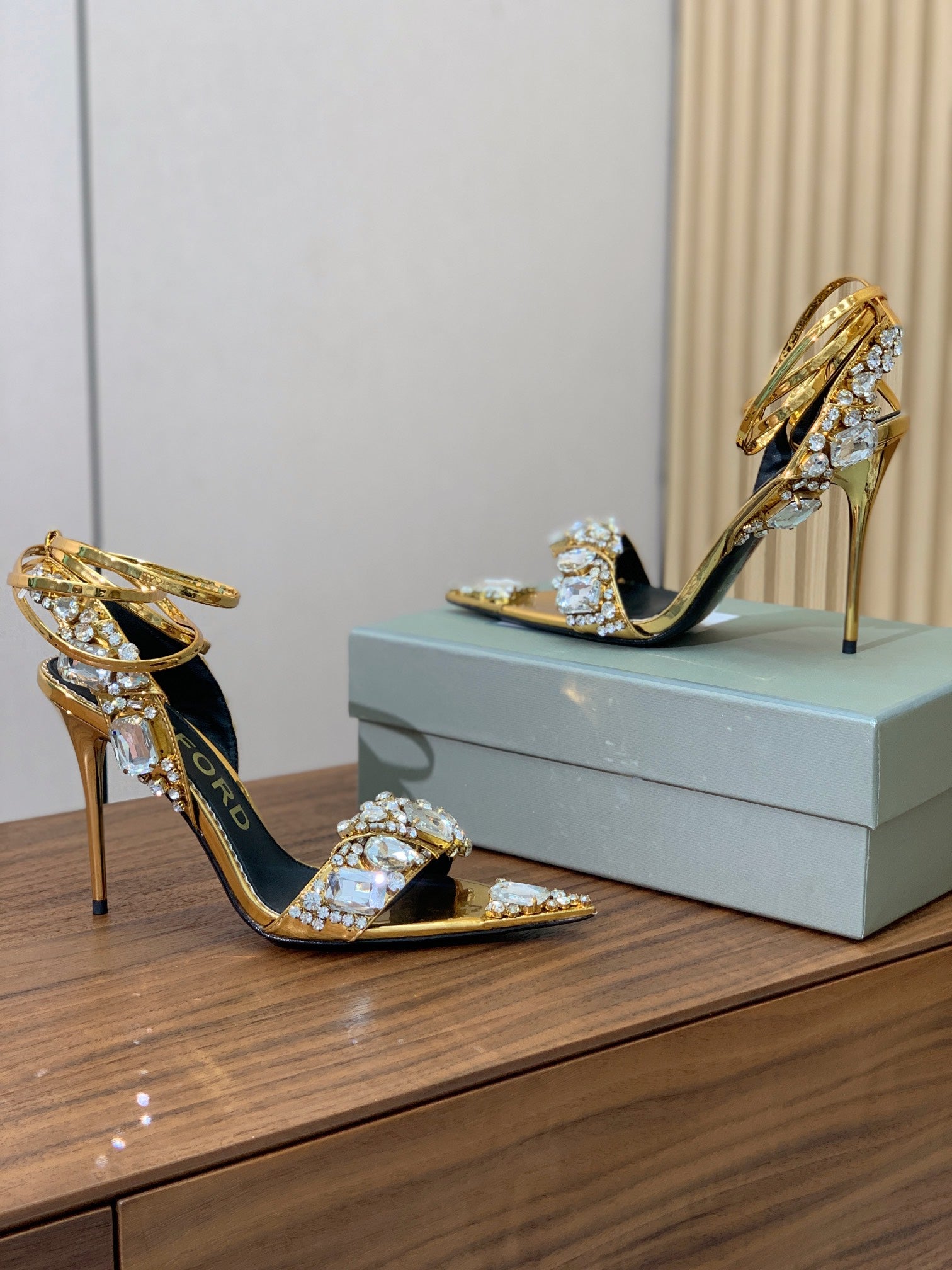 CRYSTAL HIGH HEELS IN GOLD ZP METALLIC PATENT LEATHER