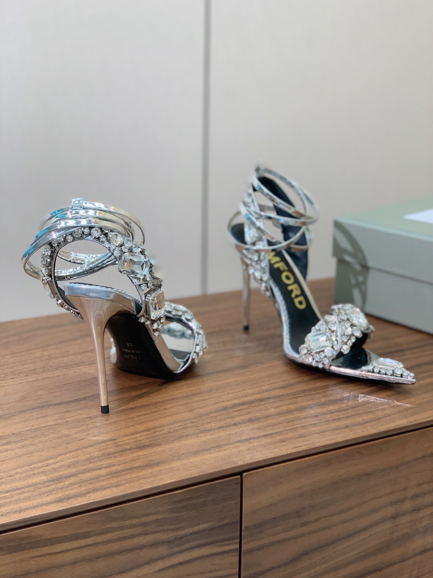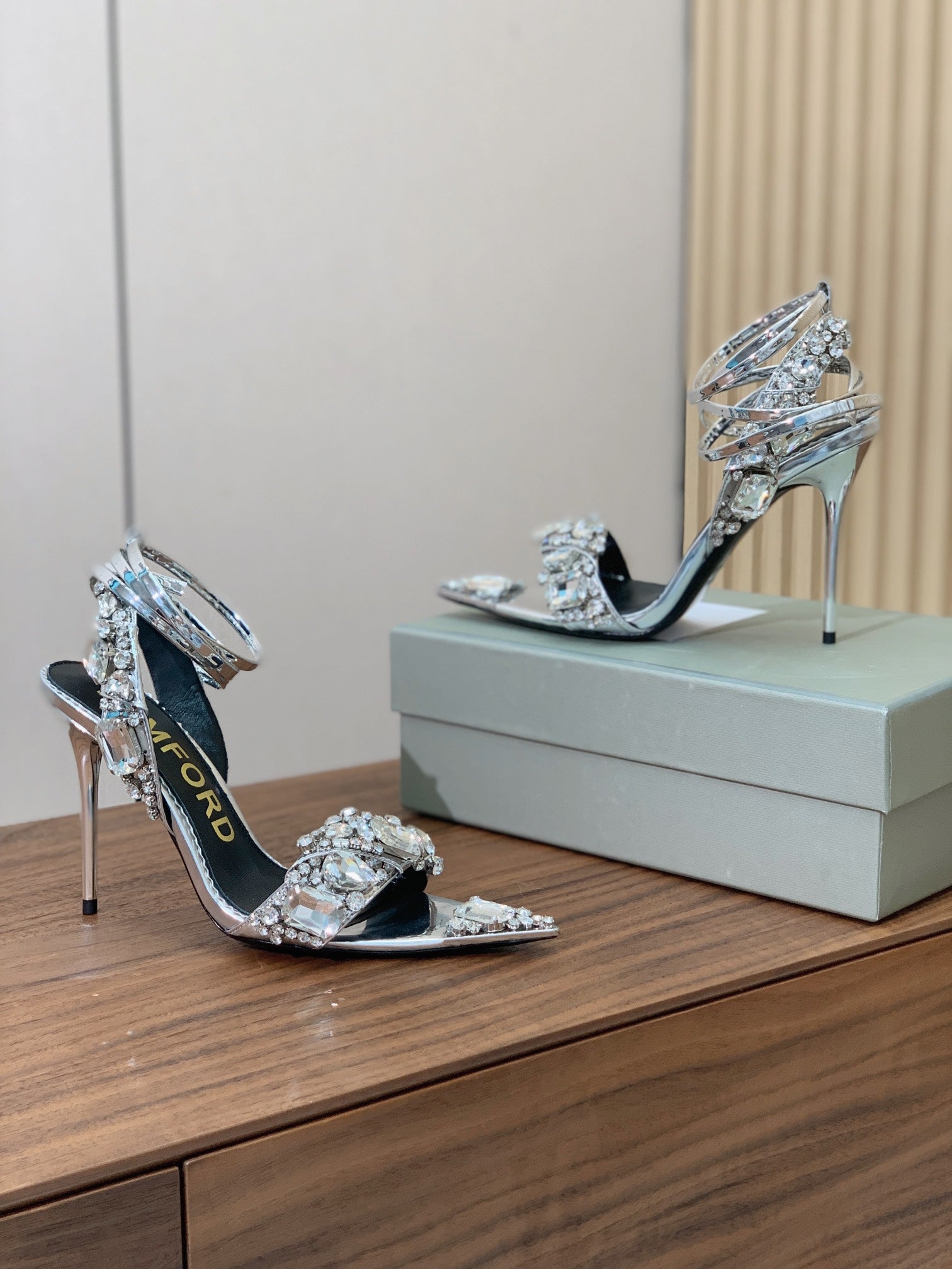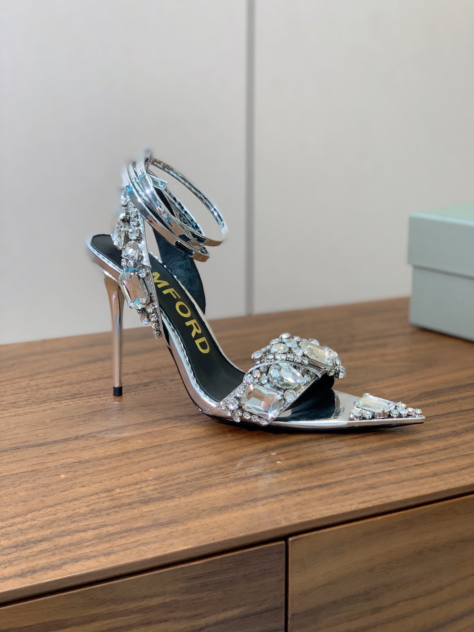 CRYSTAL HIGH HEELS IN SILVER ZP METALLIC PATENT LEATHER