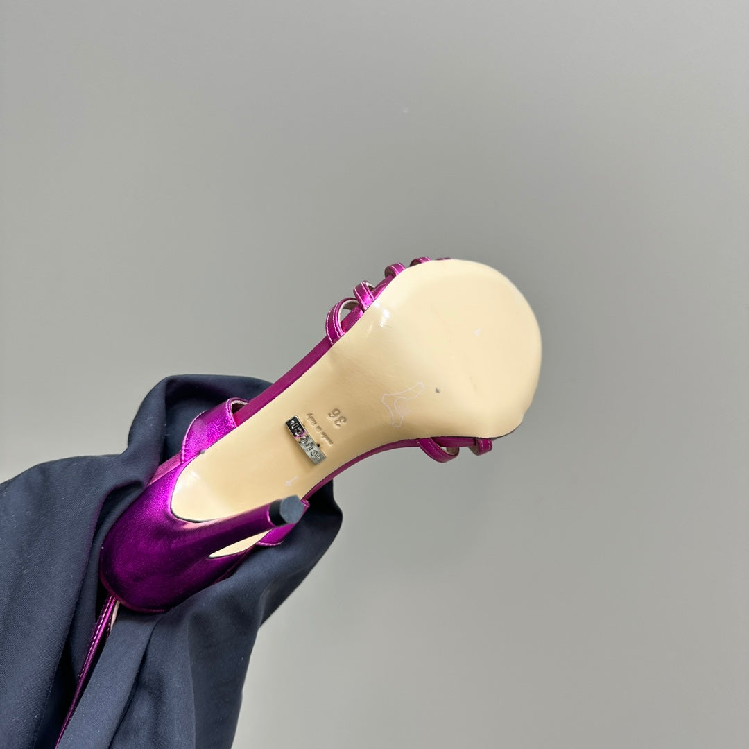 CRYSTAL HORSEBIT STRAPPY SANDAL 10.5CM IN HOT PINK PATENT LEATHER
