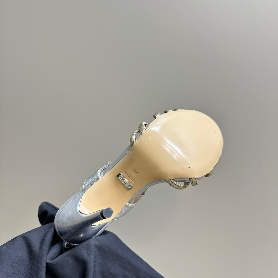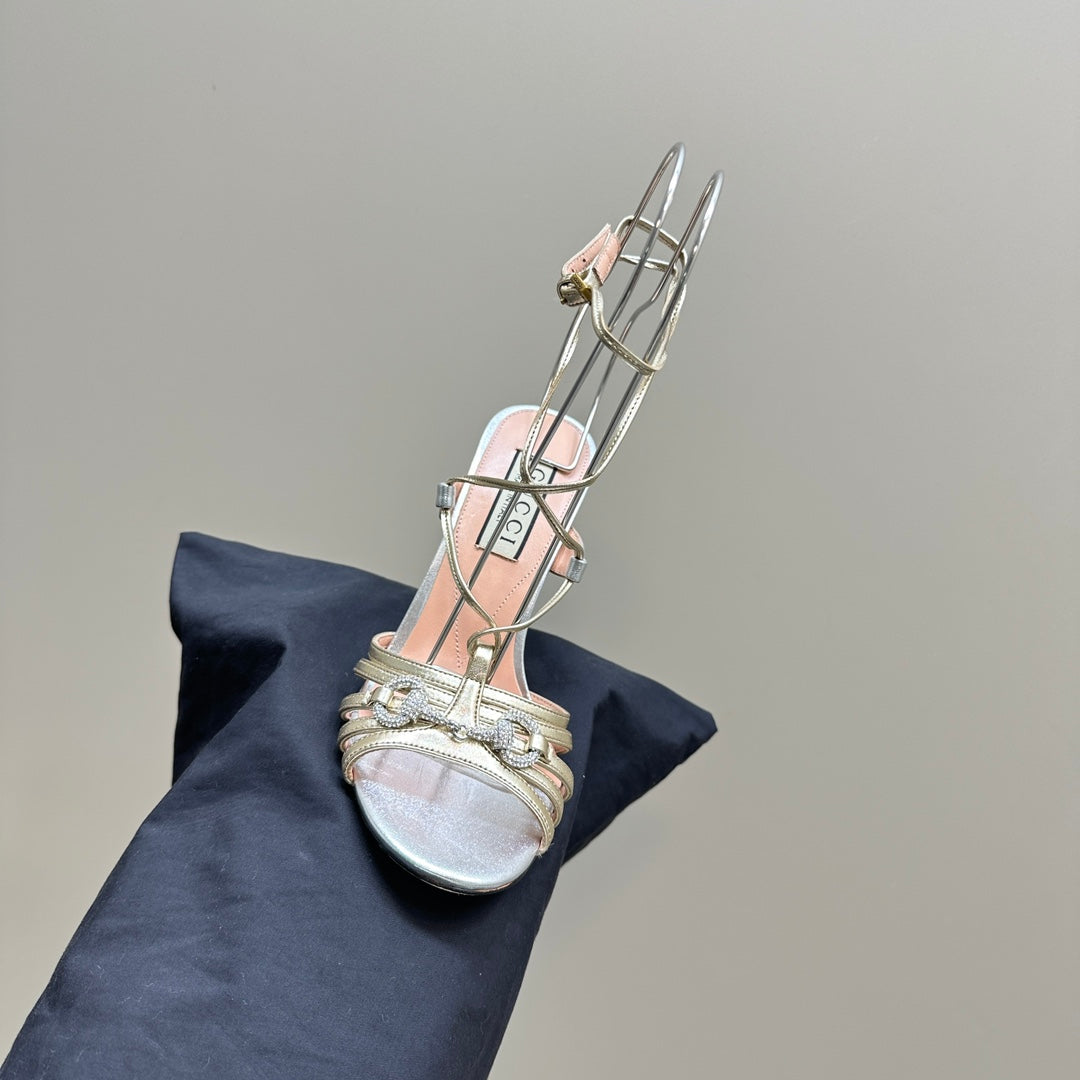 CRYSTAL HORSEBIT STRAPPY SANDAL 10.5CM IN PASTEL YELLOW PATENT LEATHER