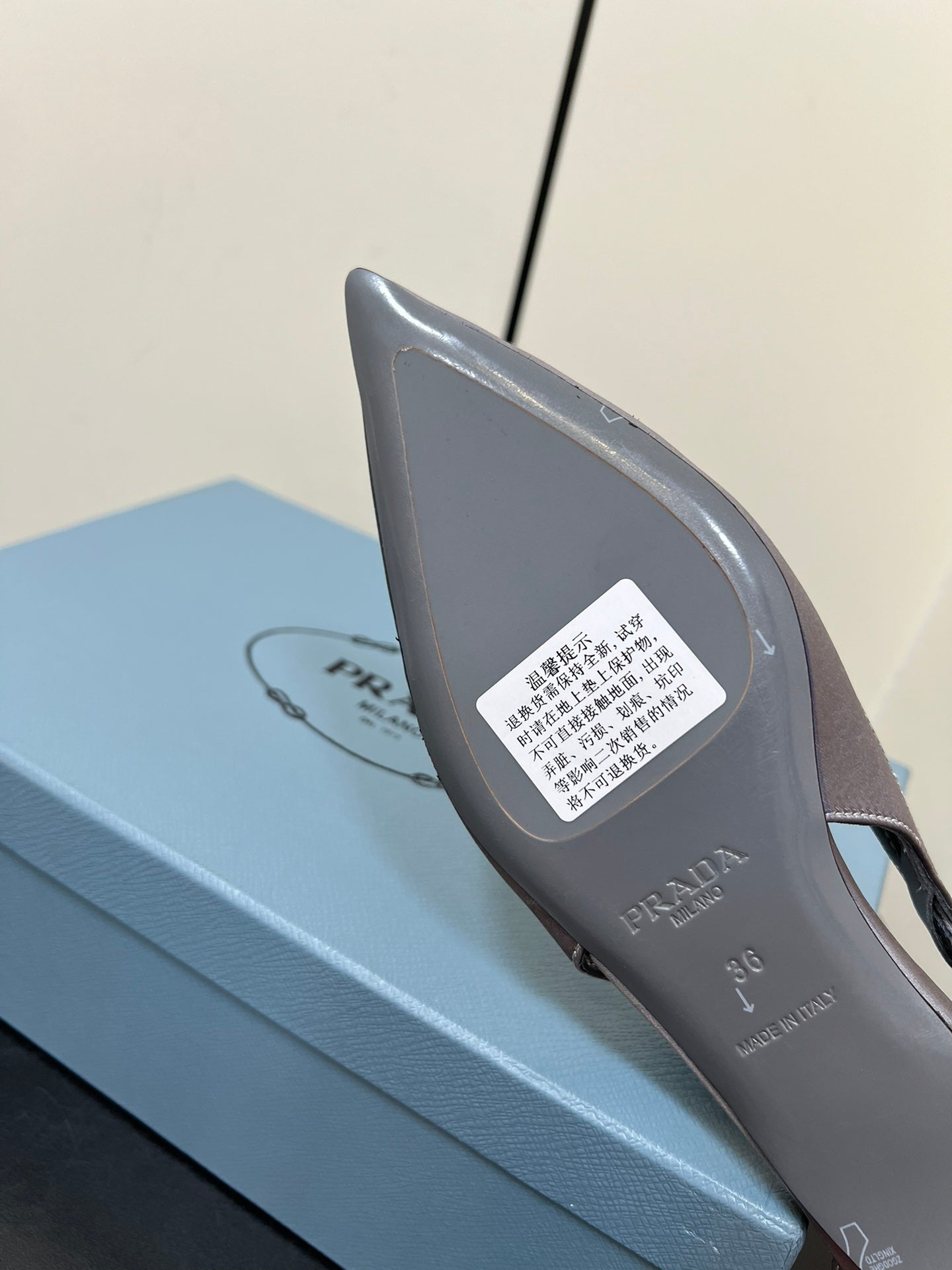 CUT-OUT BALLERINA FLAT IN WARM GRAY SATIN ATTACHED BEAD BUCKLE