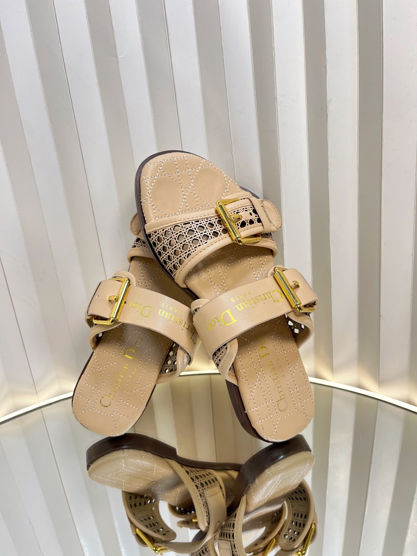 D-AVENUE SLIDES 25S IN BEIGE CALFSKIN MICRO CANNAGE MOTIF