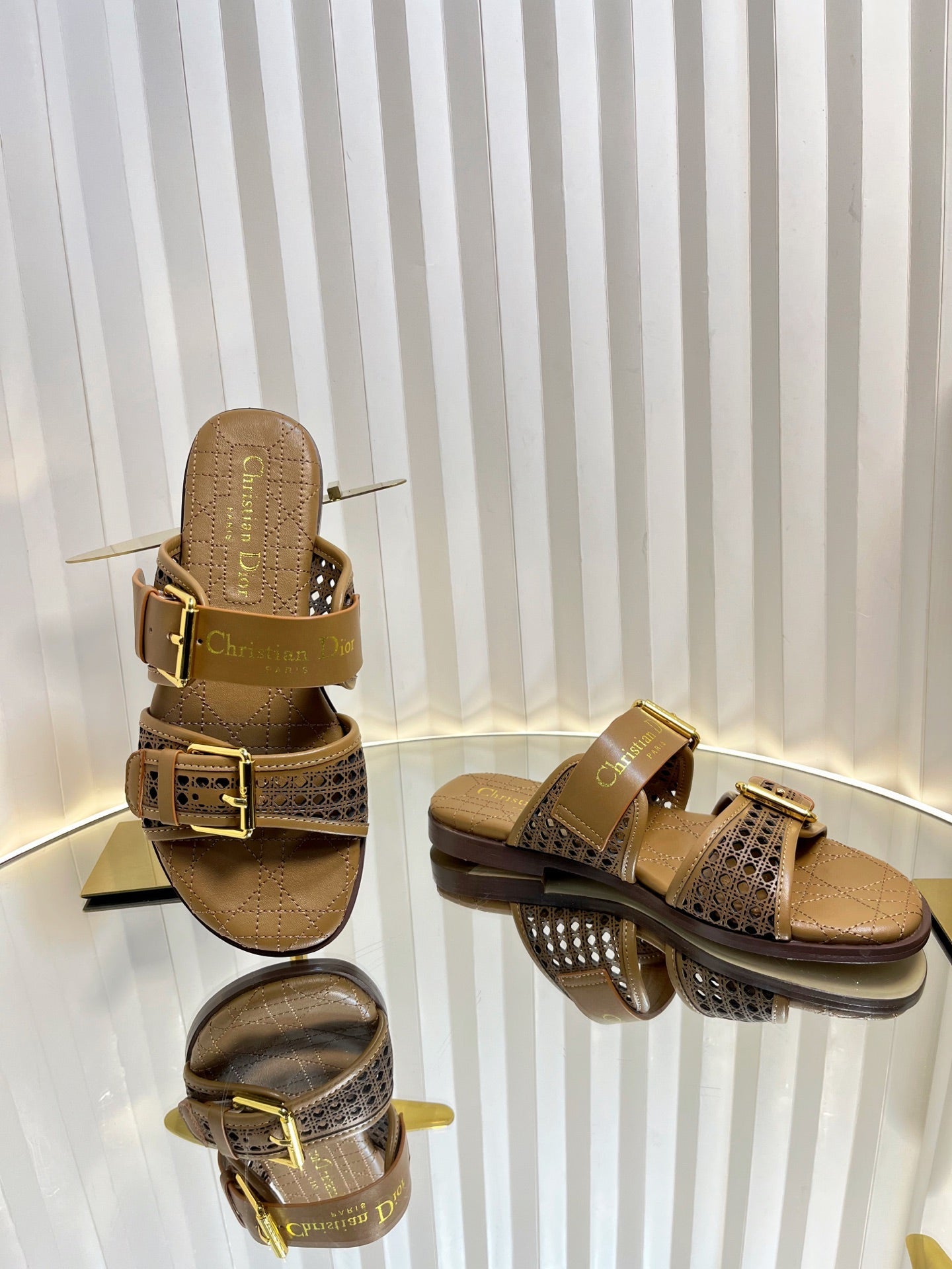 D-AVENUE SLIDES 25S IN BROWN CALFSKIN MICRO CANNAGE MOTIF