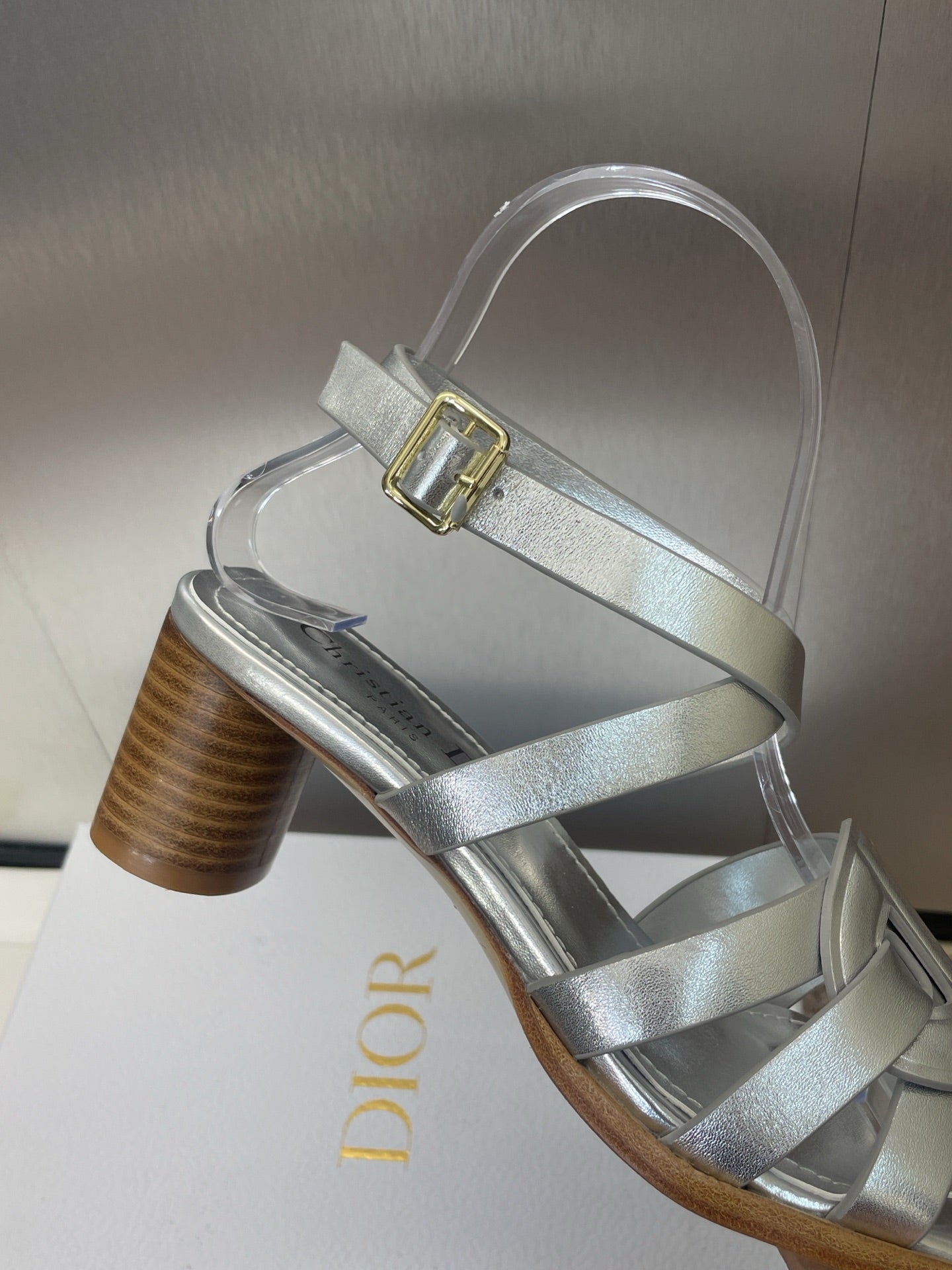 D-CLUB HIGH HEEL SLIDE 25S 55MM IN SILVER GLOSSY CALFSKIN