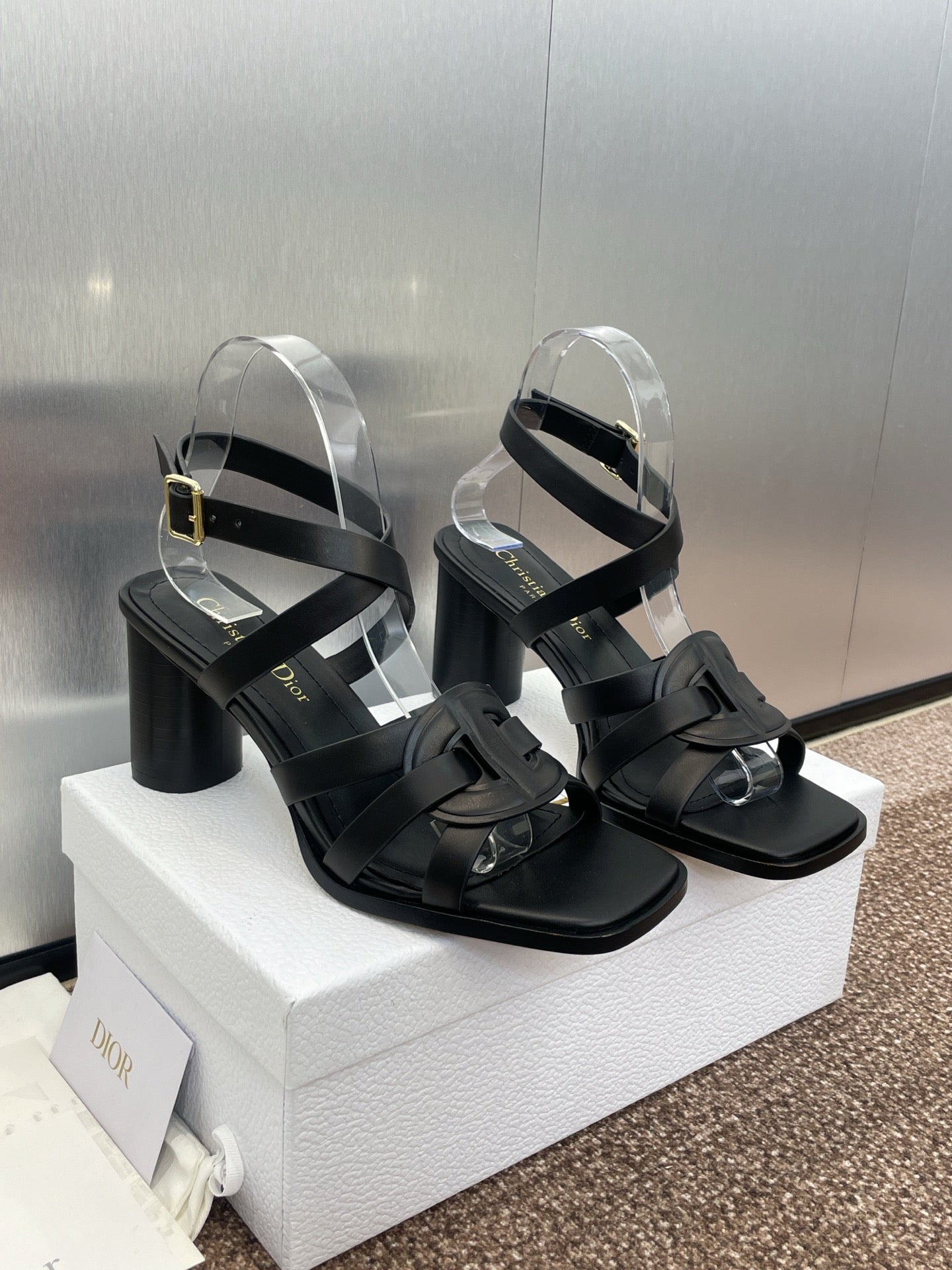 D-CLUB HIGH HEEL SLIDE 25S 80MM IN BLACK CALFSKIN