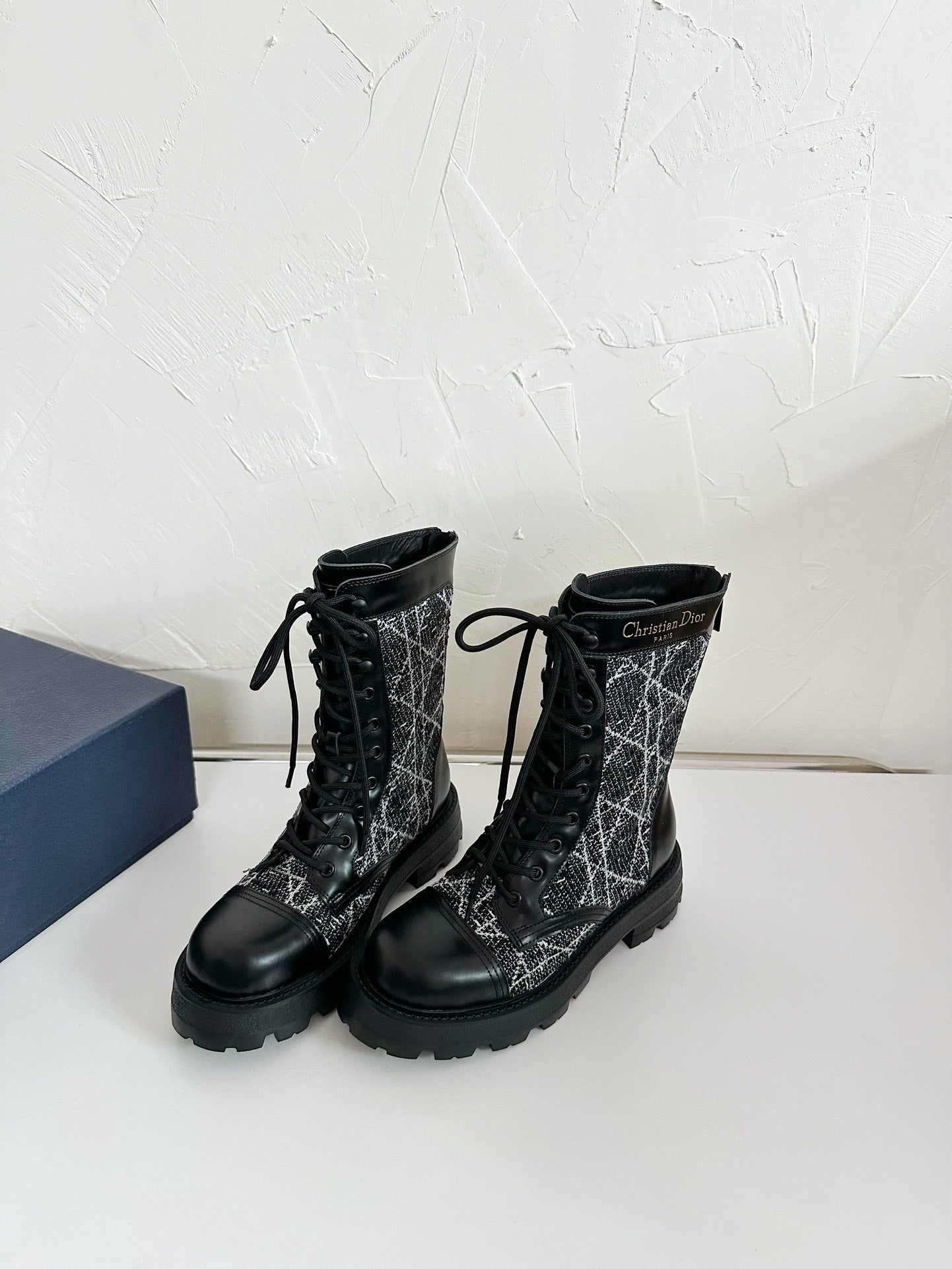 D-UNIT ANKLE BOOT BLACK CALFSKIN WITH CANNAGE TWEED
