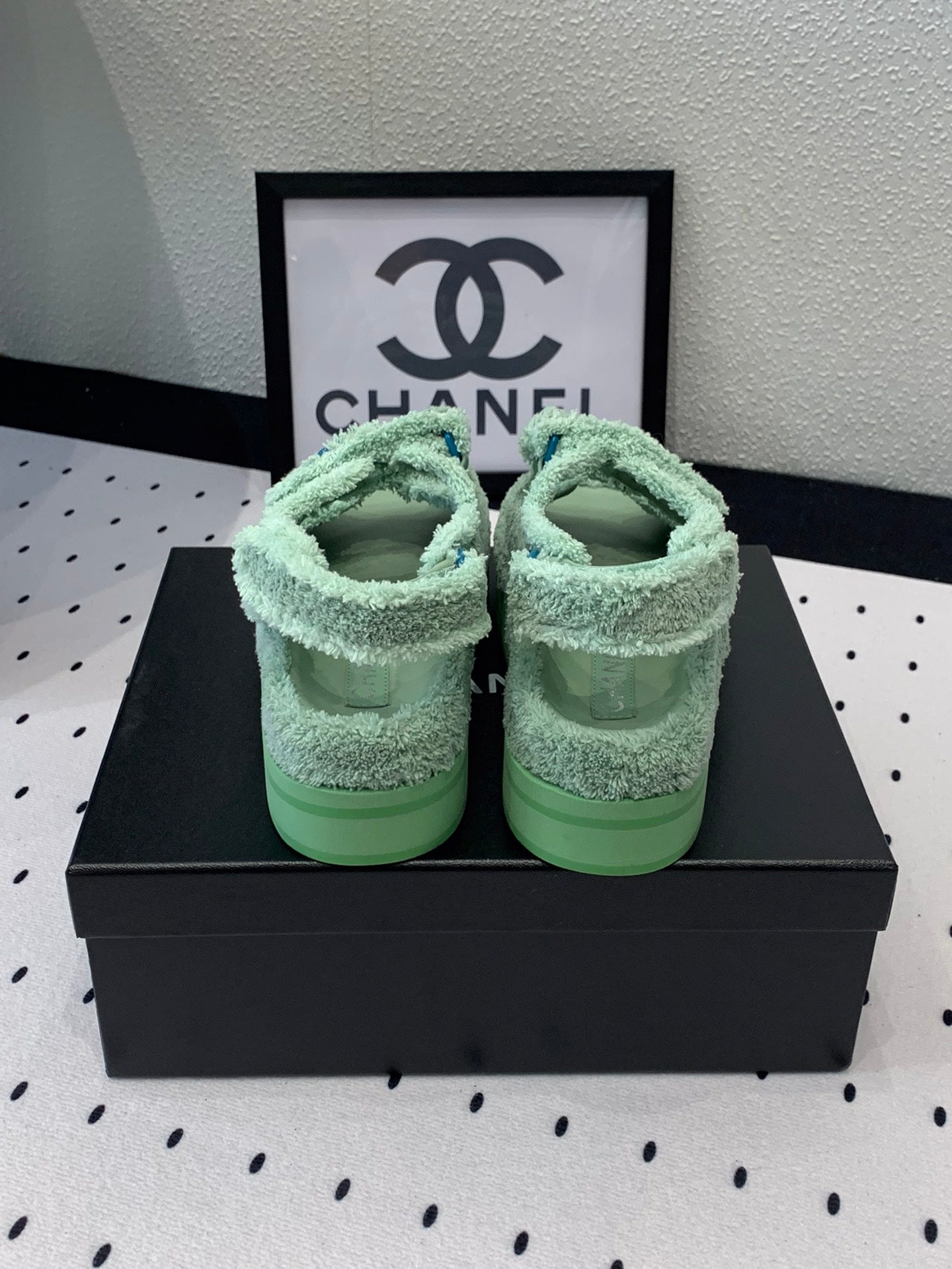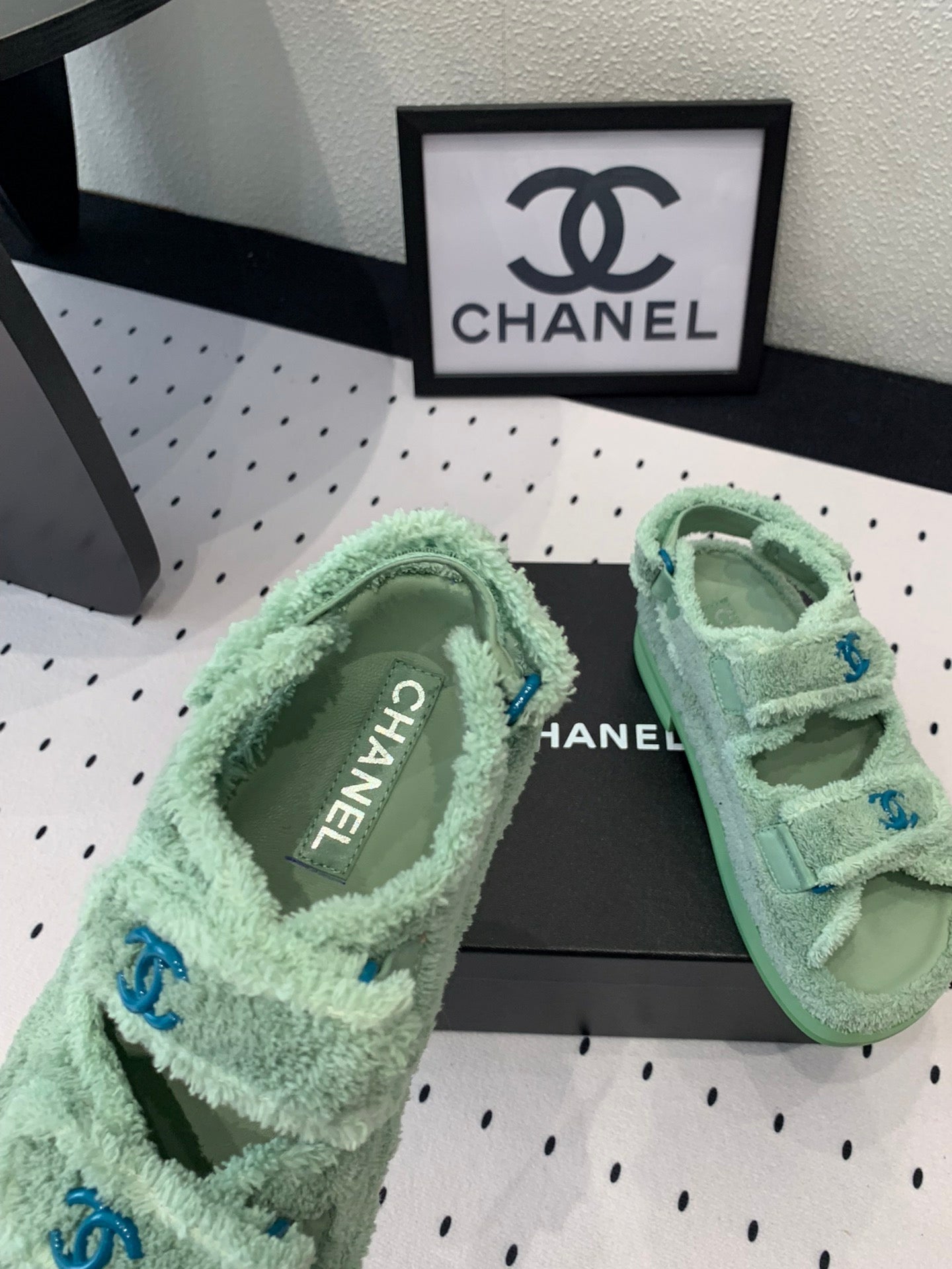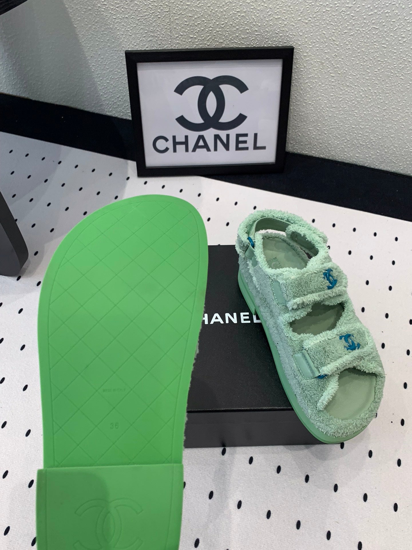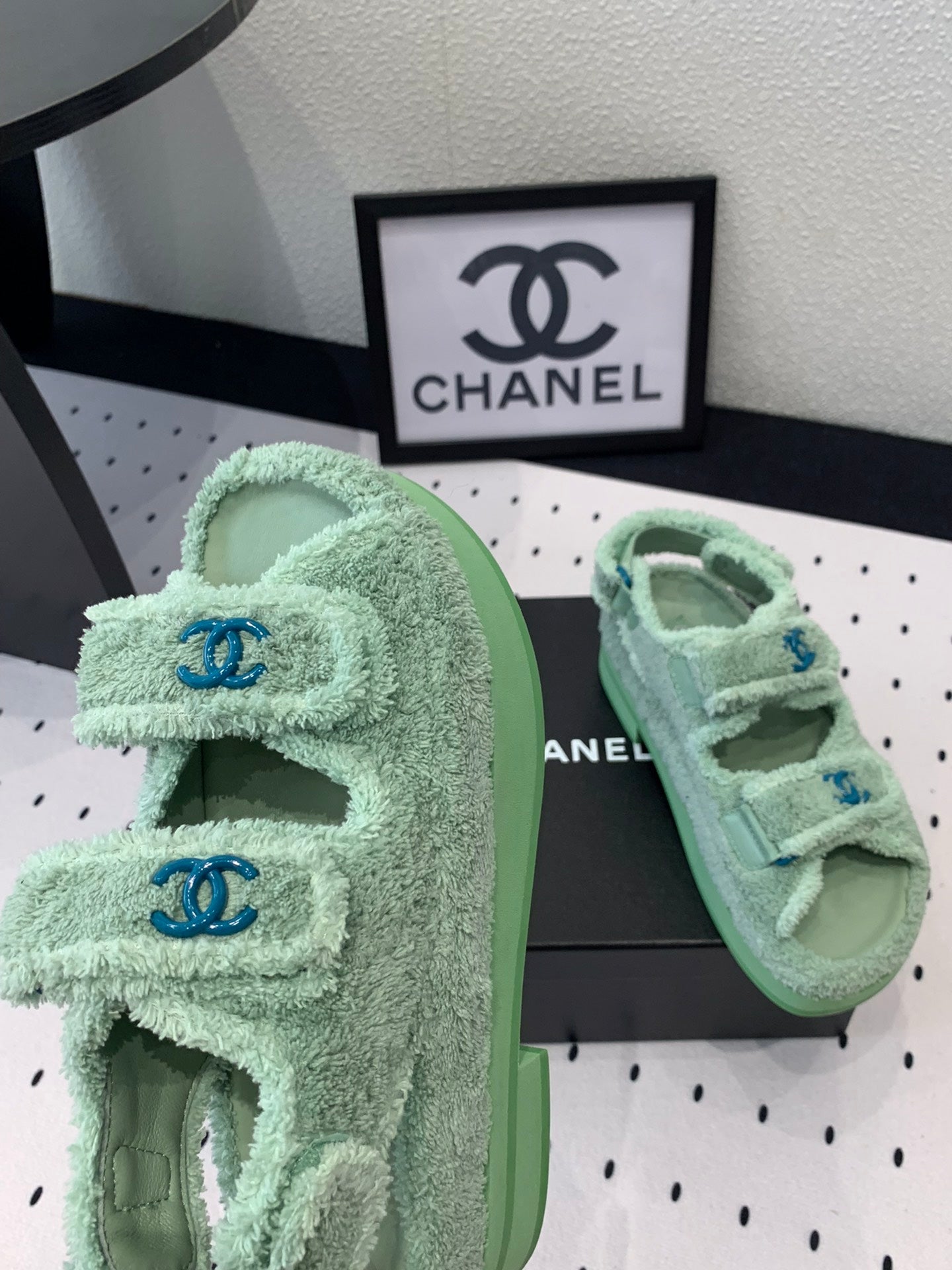 DAD SANDALS PLATFORM IN MINT GREEN FUR