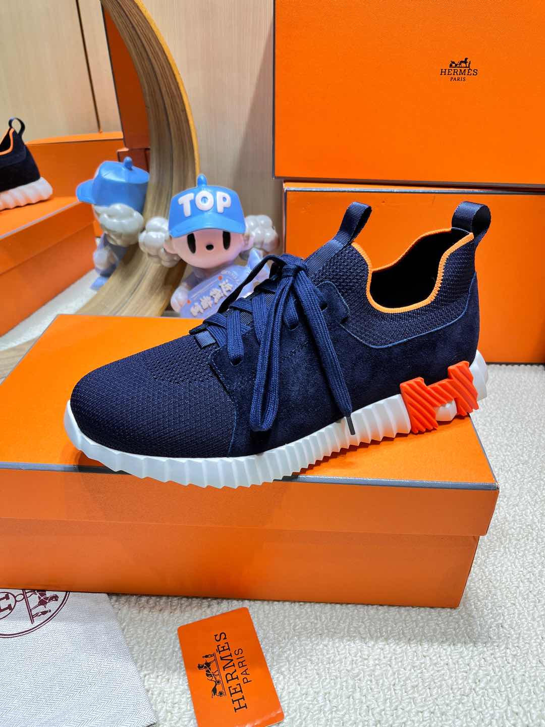 DEPART SLIP-ON SNEAKER IN NAVY BLUE KNIT AND CALFSKIN