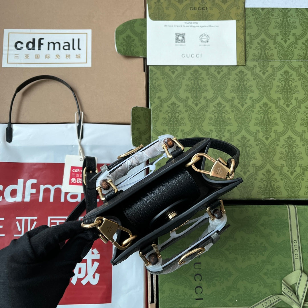 DIANA TOTE BAG 19 IN BLACK LAMBSKIN WITH BAMBOO HANDLE
