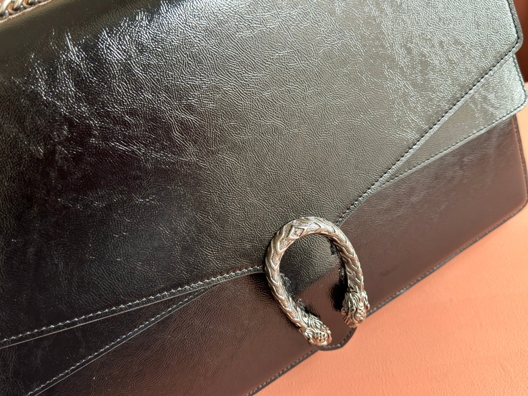 DIONYSUS LAGRE SHOULDER BAG 42 IN BLACK GG GLOSSY LAMBSKIN