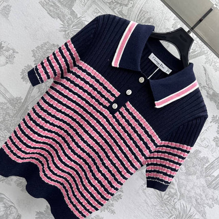 Dior 25 Polo T-Shirt Night Blue mix Pink Linen 232265