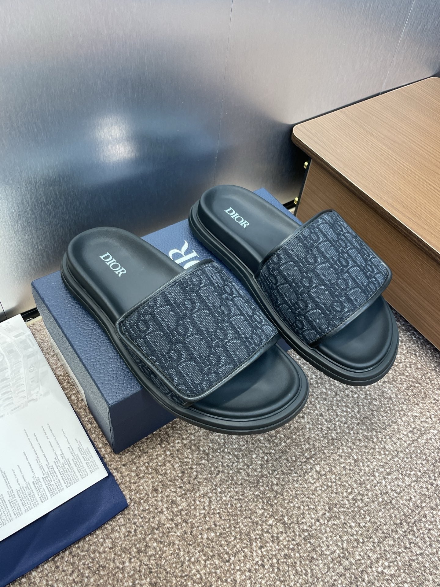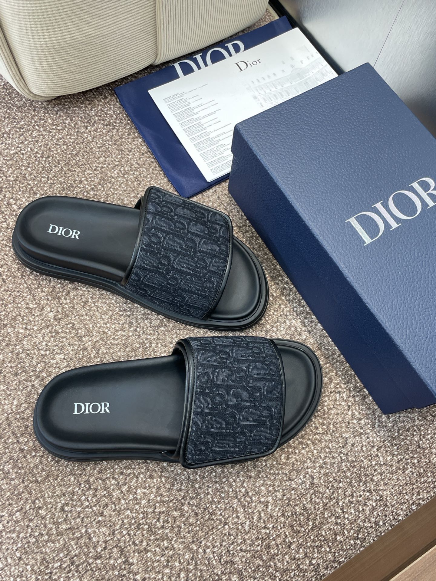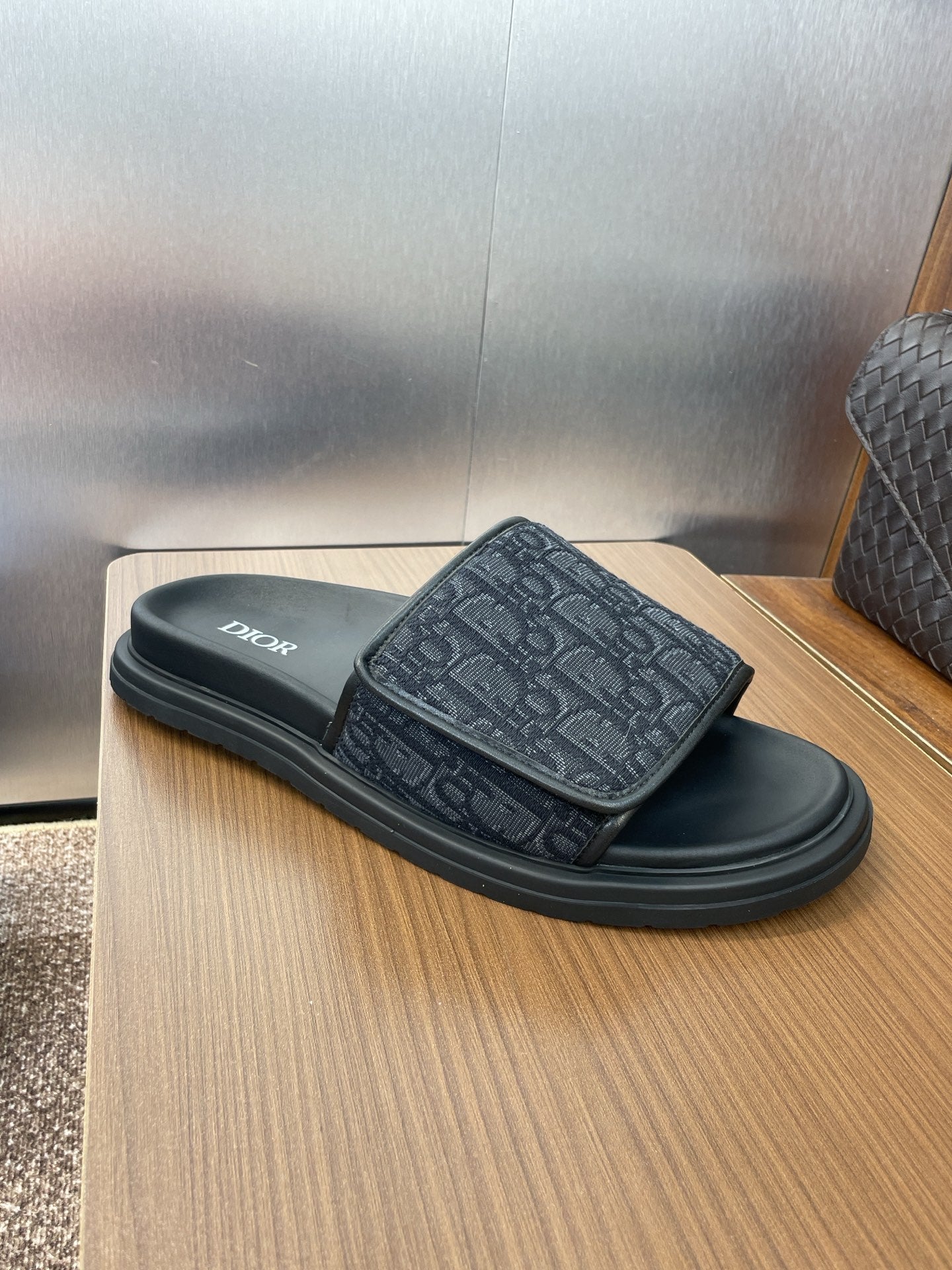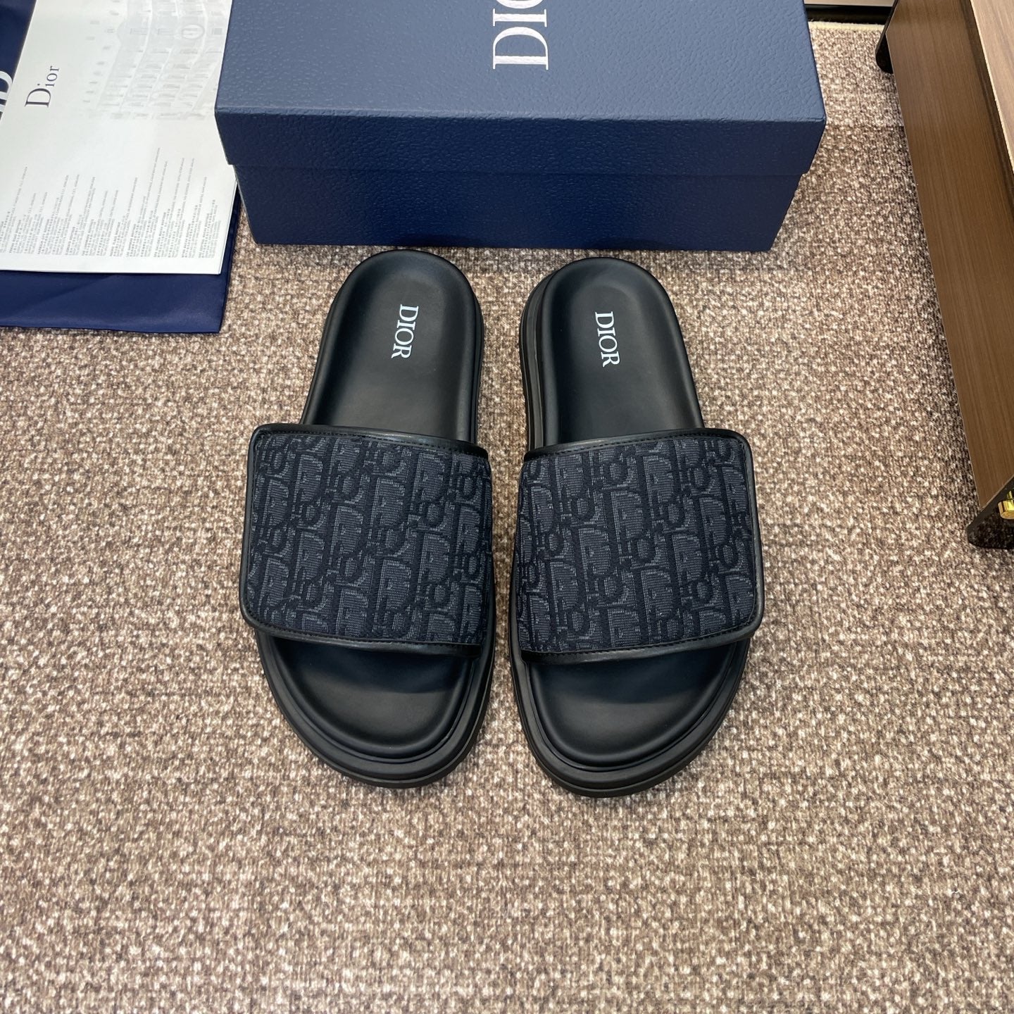 DIOR 25S ALIAS SLIDES IN BLACK CALFSKIN WITH CD OBLIQUE DARK BLUE LOGO