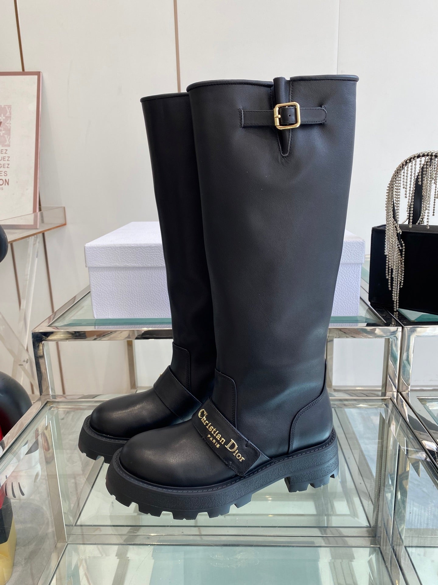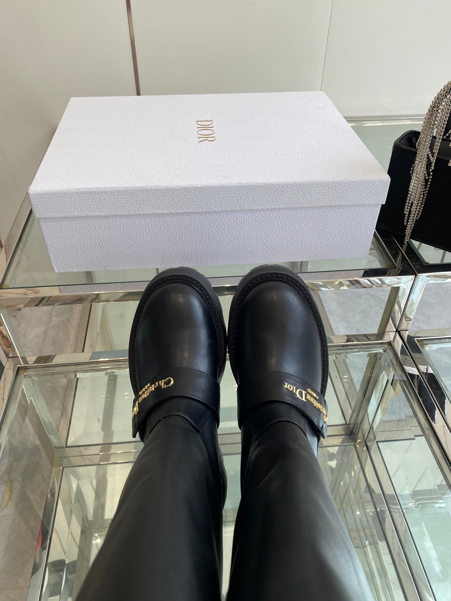 DIOR 25S BROGUE BOOTS 35MM IN BLACK CALFSKIN GOLD HARDWARE