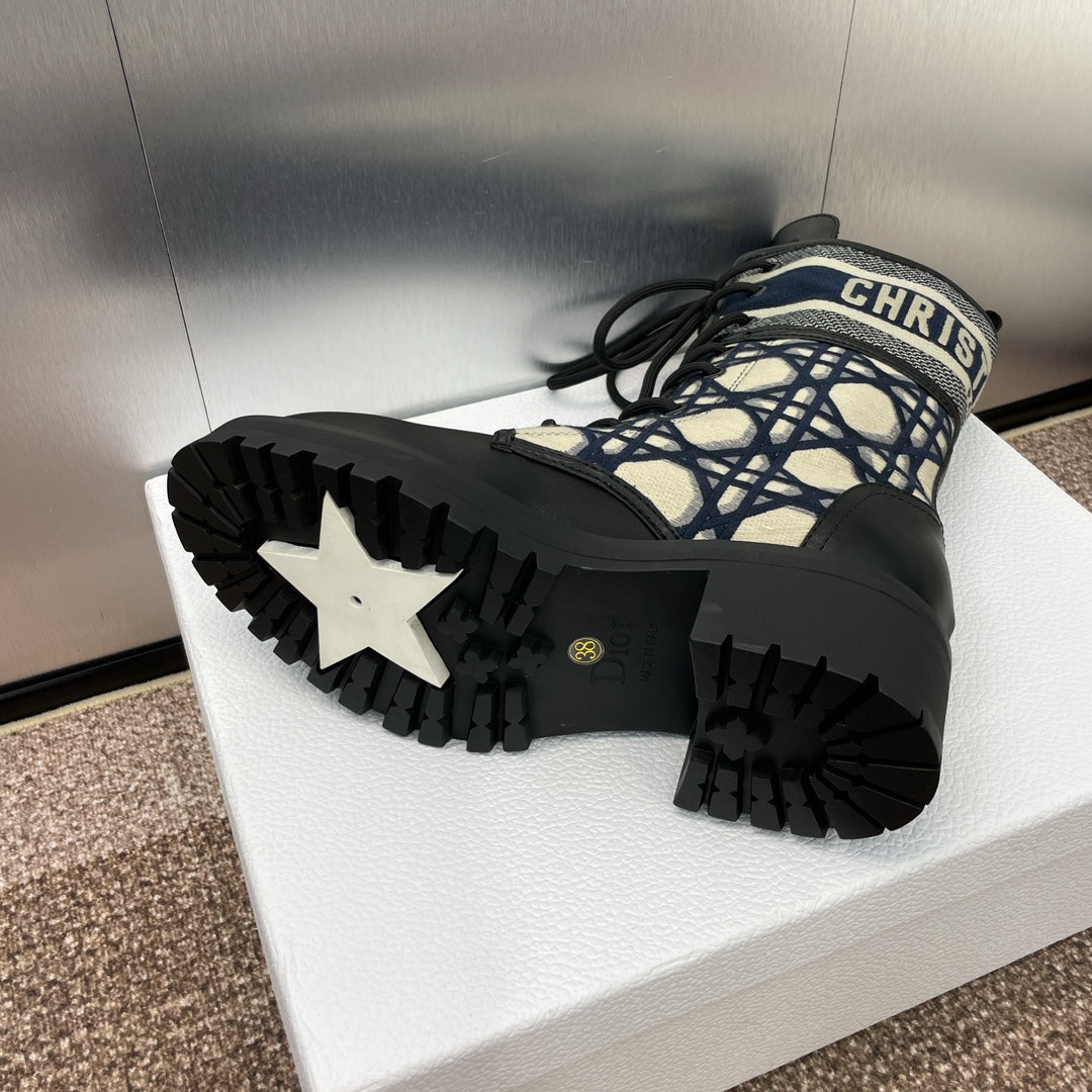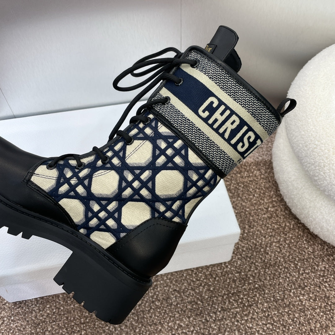 DIOR 25S D-MAJOR ANKLE BOOT MACROCANNAGE DEEP BLUE BEIGE 45MM IN BLACK CALFSKIN