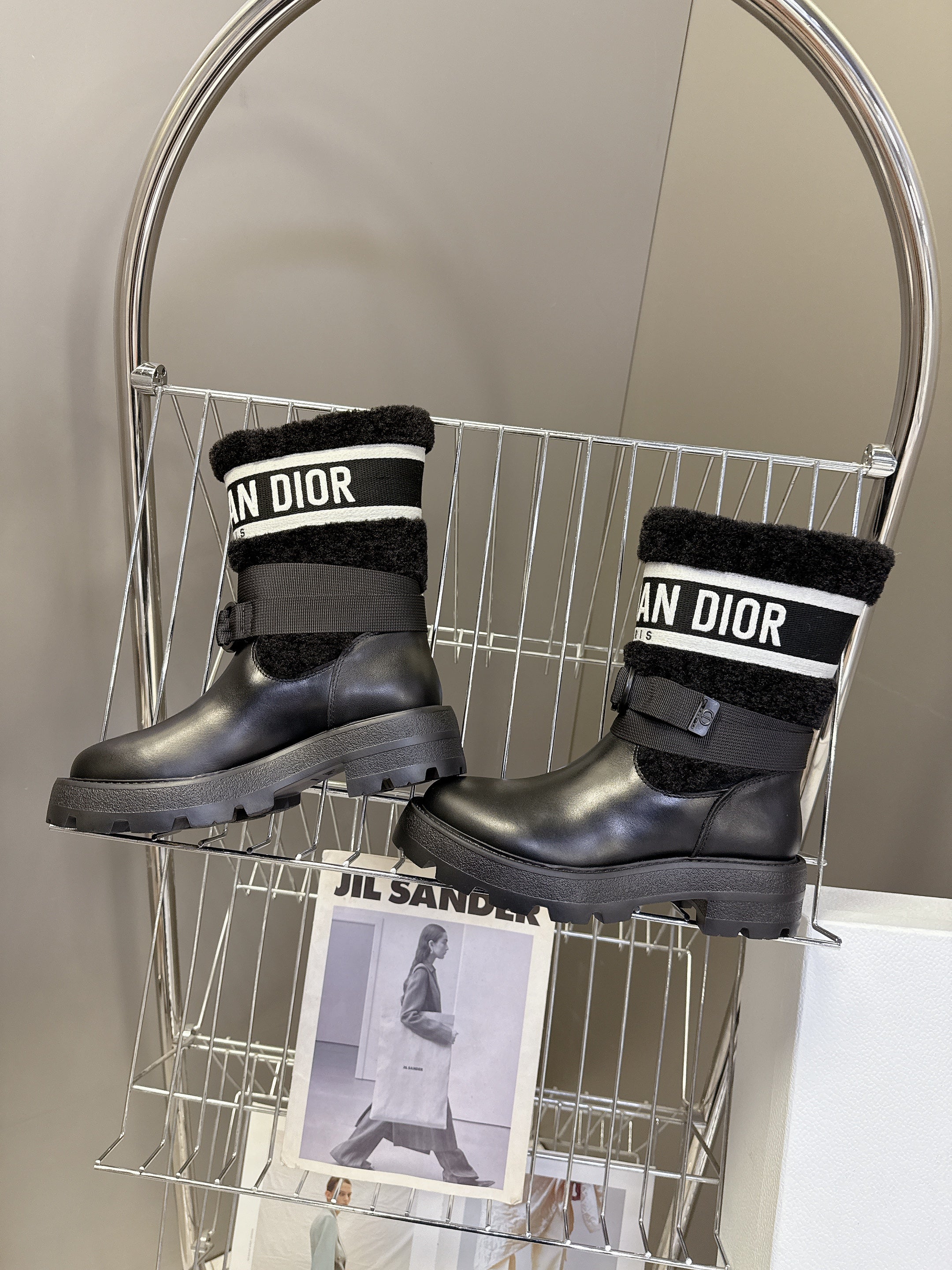 DIOR 25S D-MAJOR ANKLE BOOTS IN BLACK LAMBSKIN AND WOOL