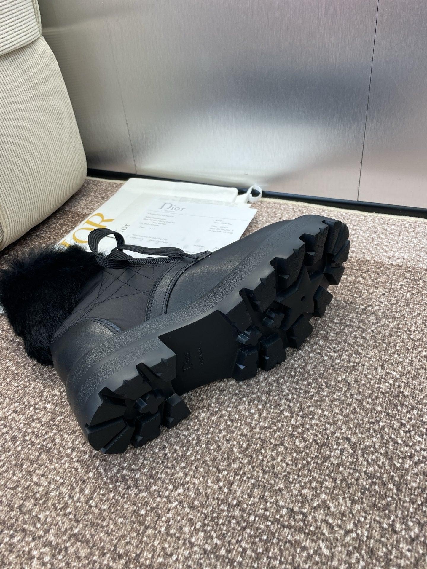 DIOR 25S D-MAJOR ANKLE BOOTS WICKER STYLE 35MM IN BLACK CALFSKIN AND CANVAS