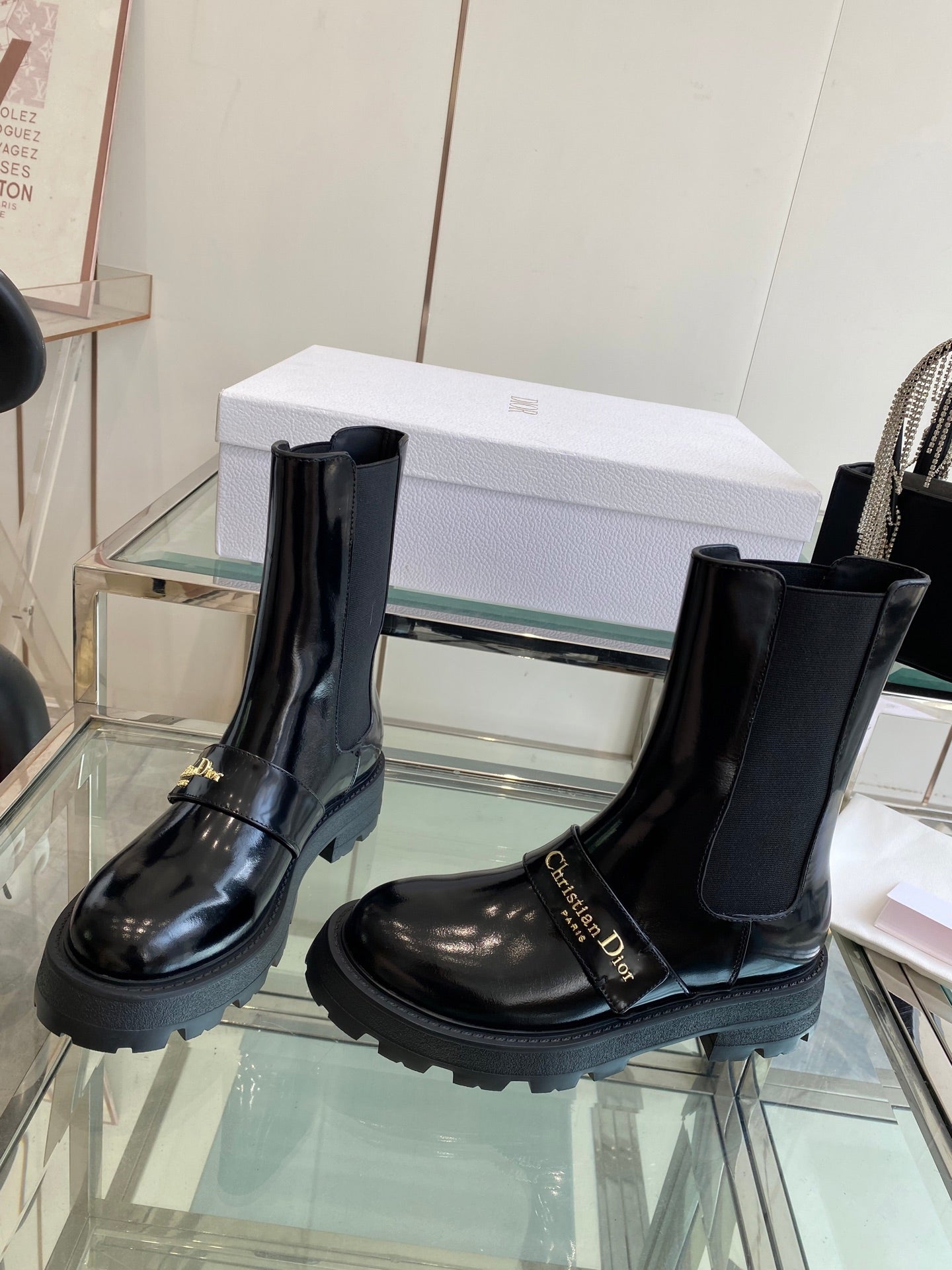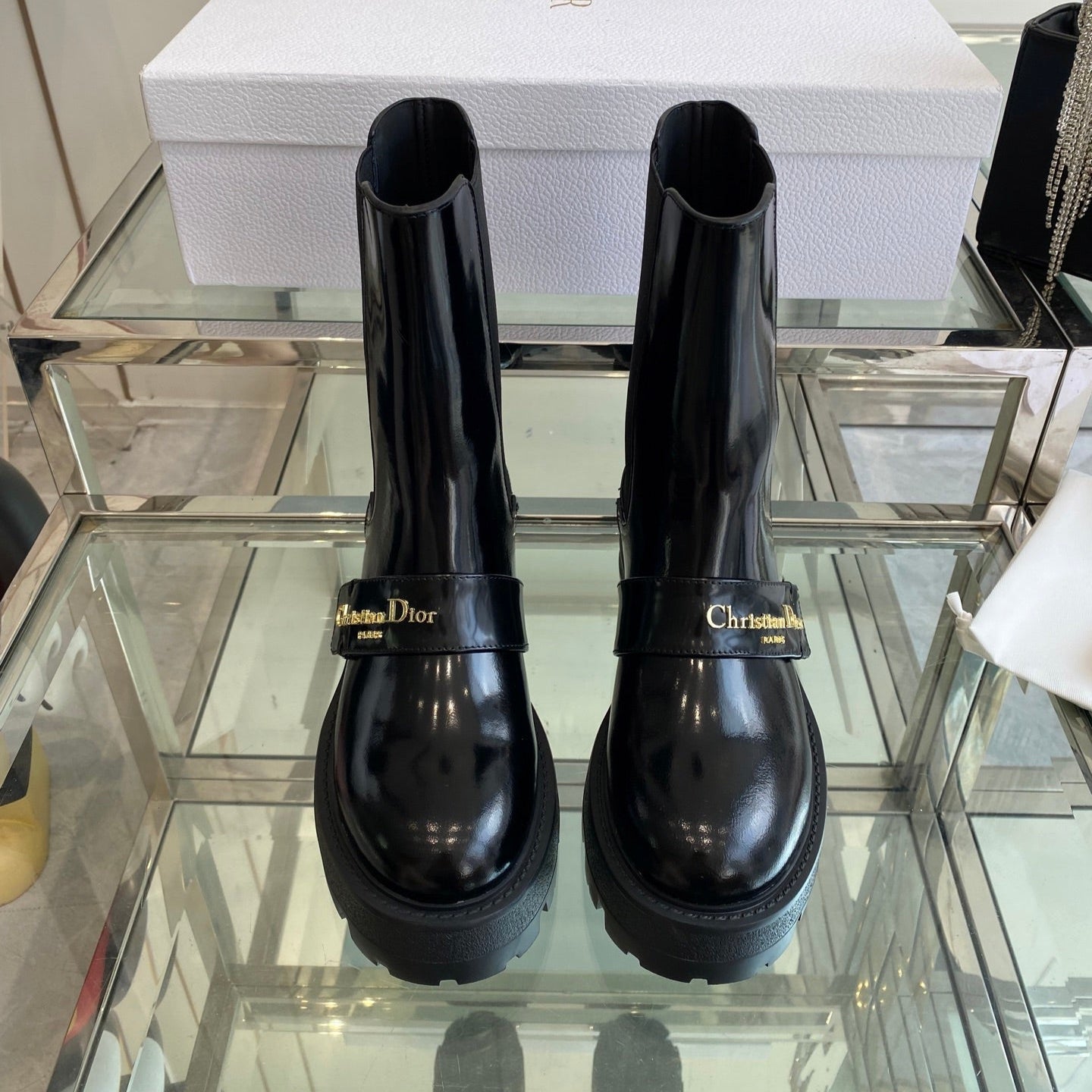 DIOR 25S D-QUEST ANKLE BOOT 35MM IN BLACK GLOSSY CALFSKIN GOLD HARDWARE