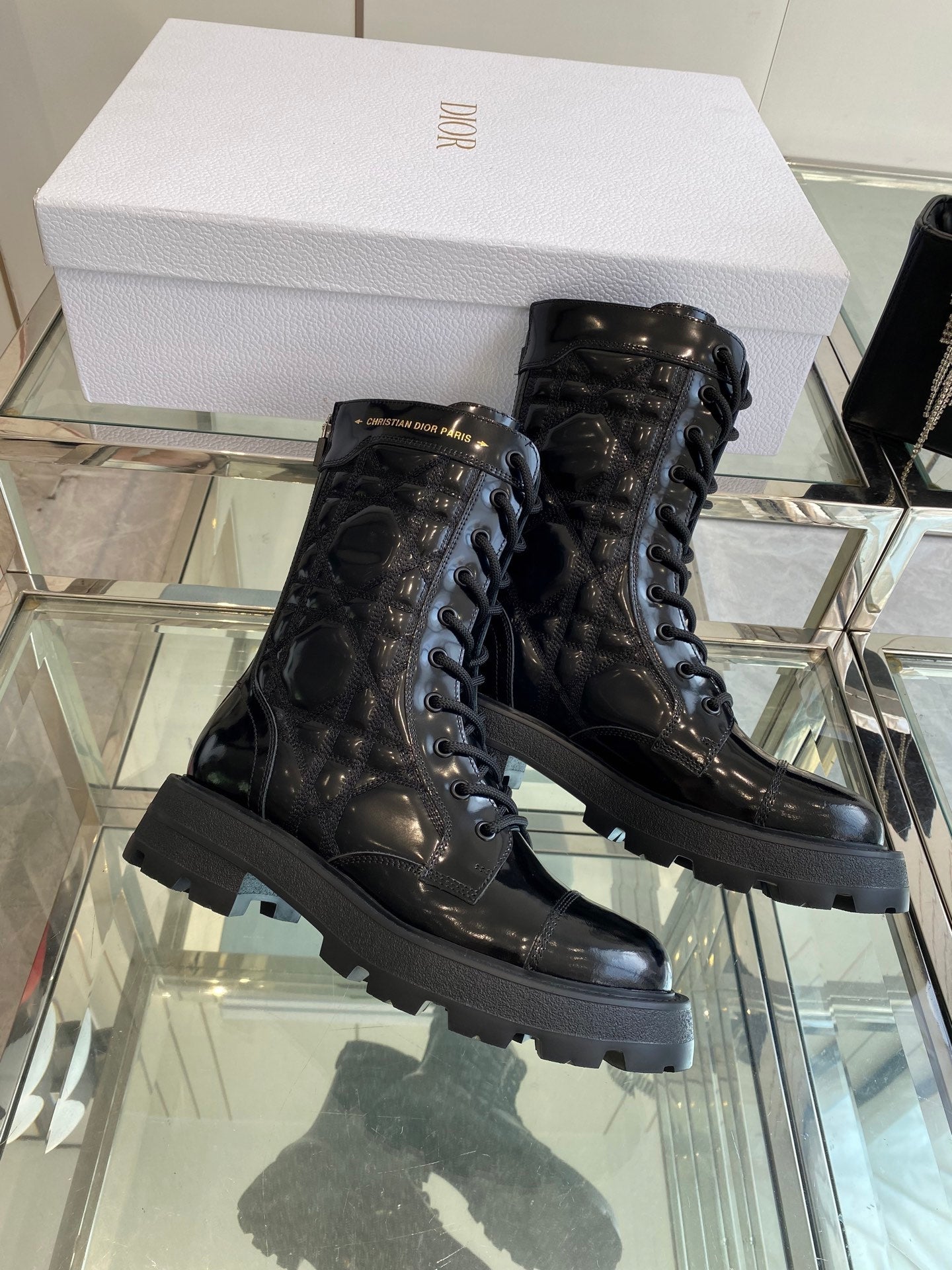 DIOR 25S D-UNIT ANKLE BOOT IN BLACK QUILTED CANNAGE CALFSKIN