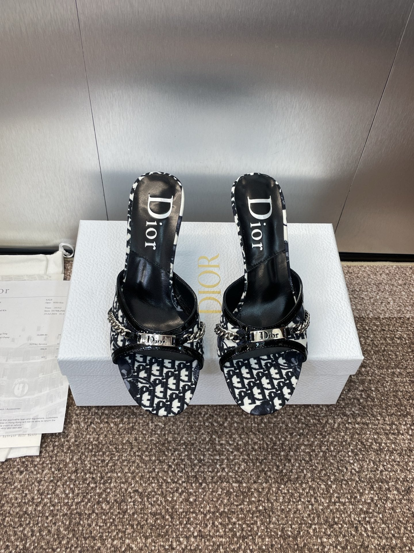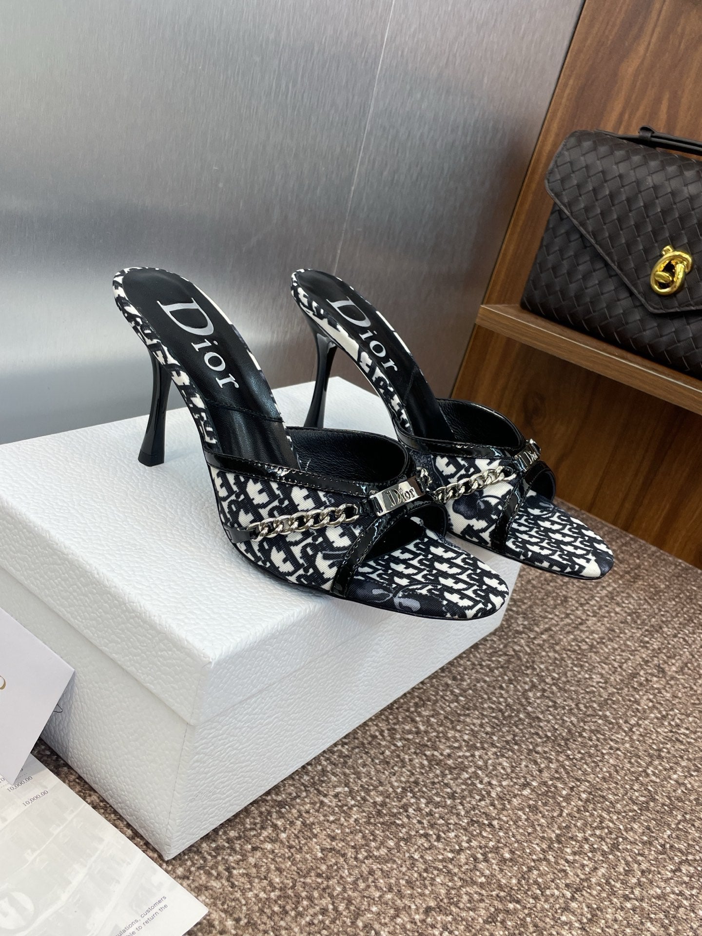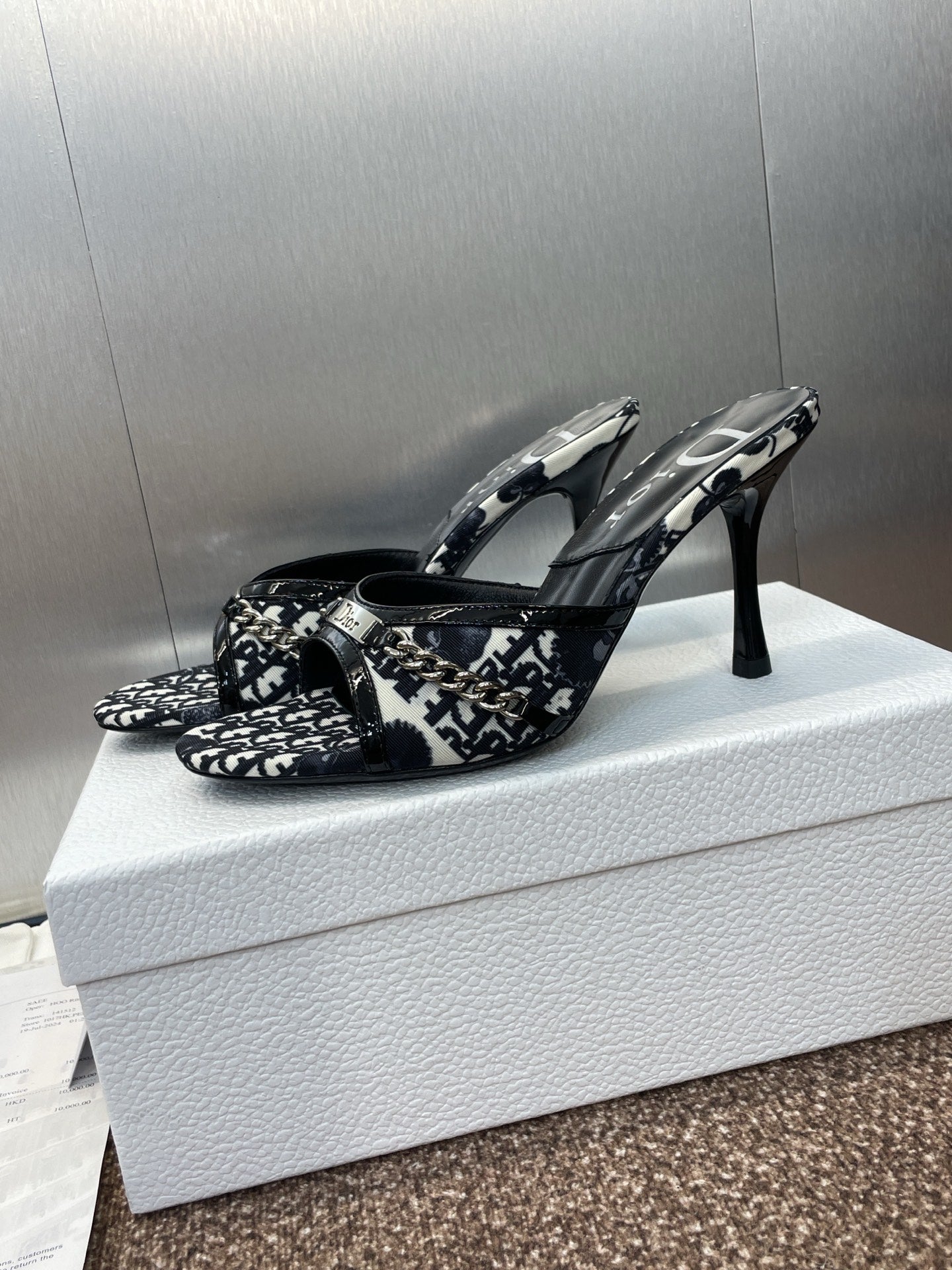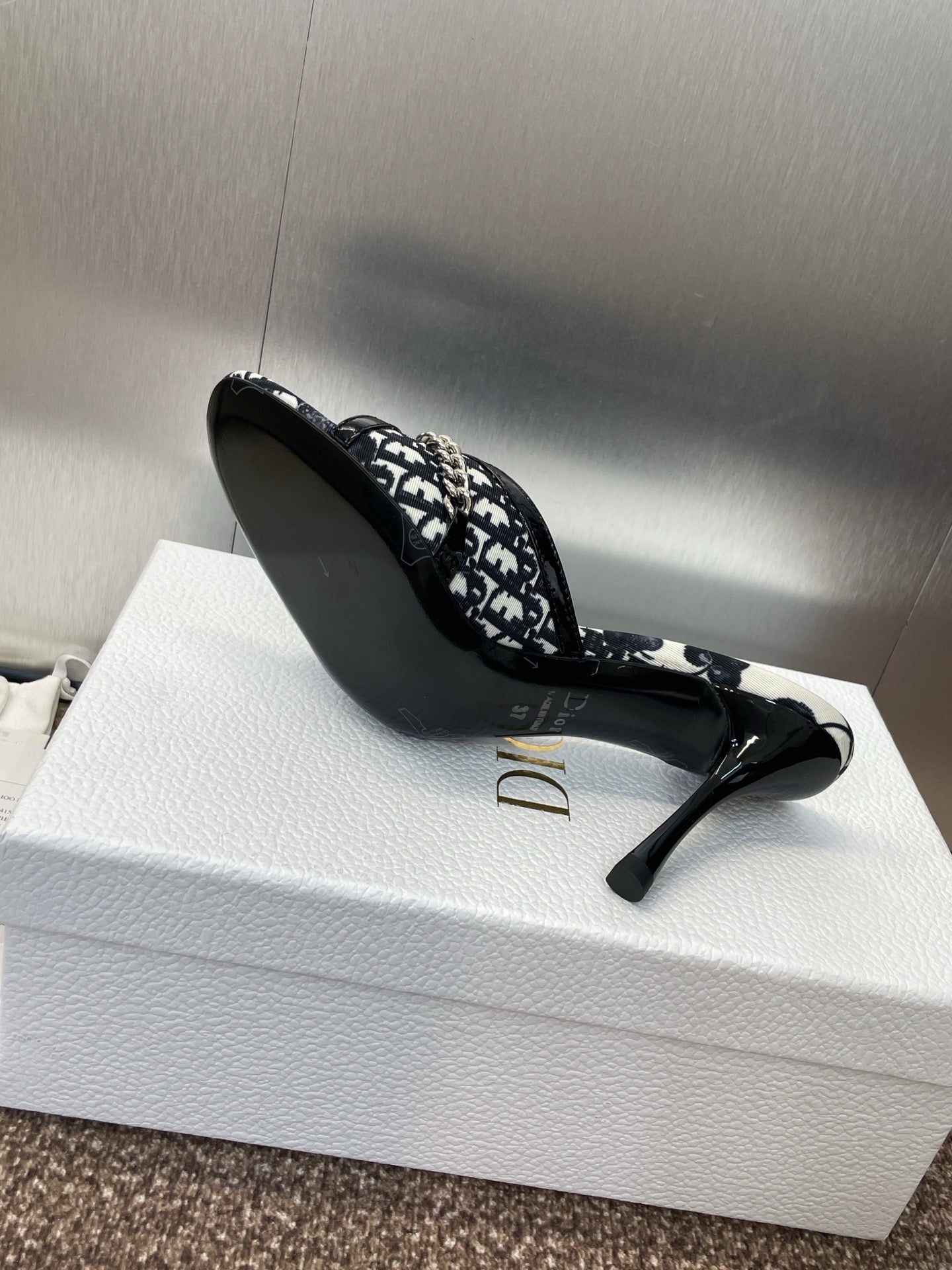 DIOR 25S HIGH HEELS PUNK 85MM IN BLACK WHITE CALFSKIN AND CANVAS