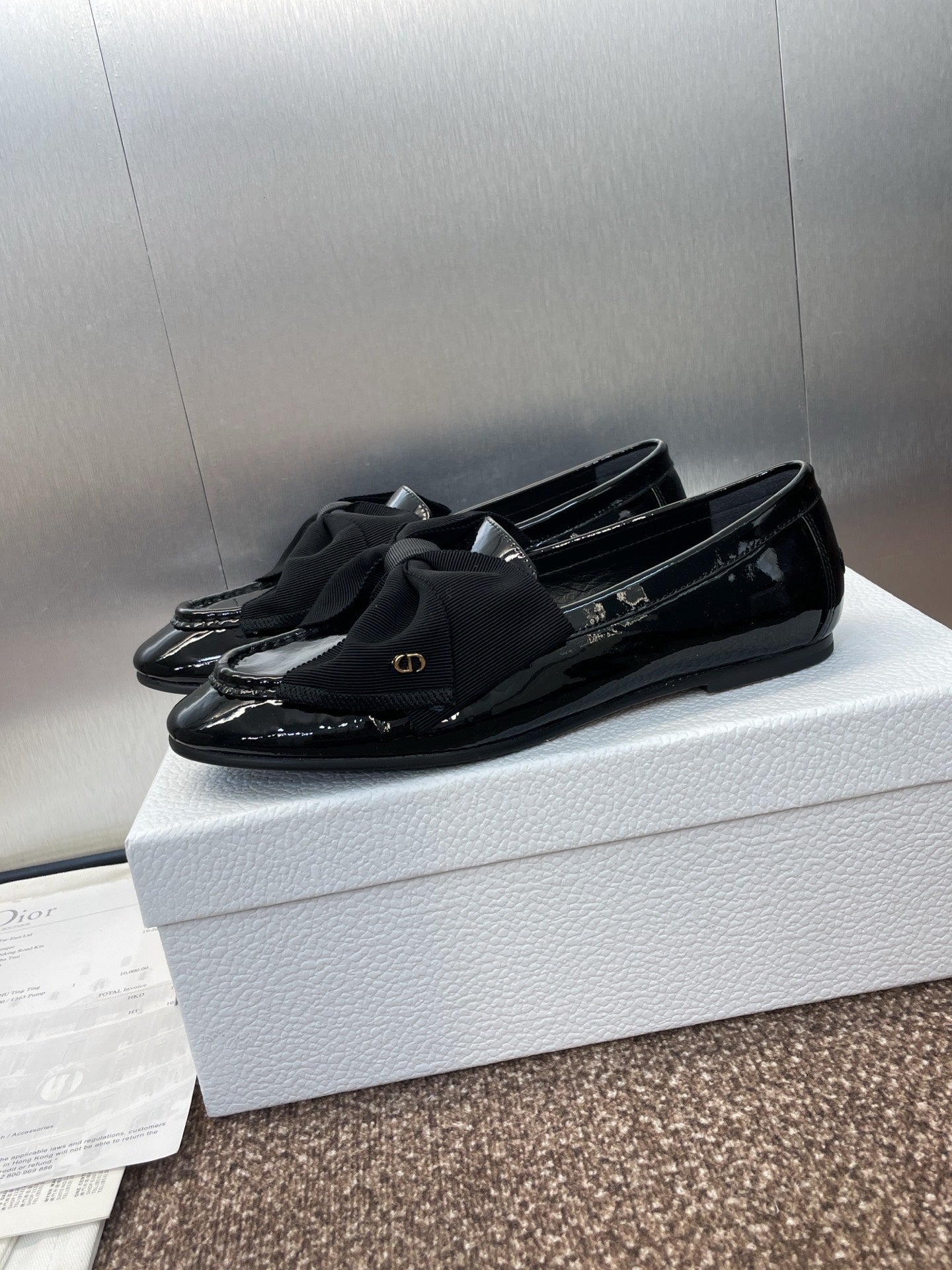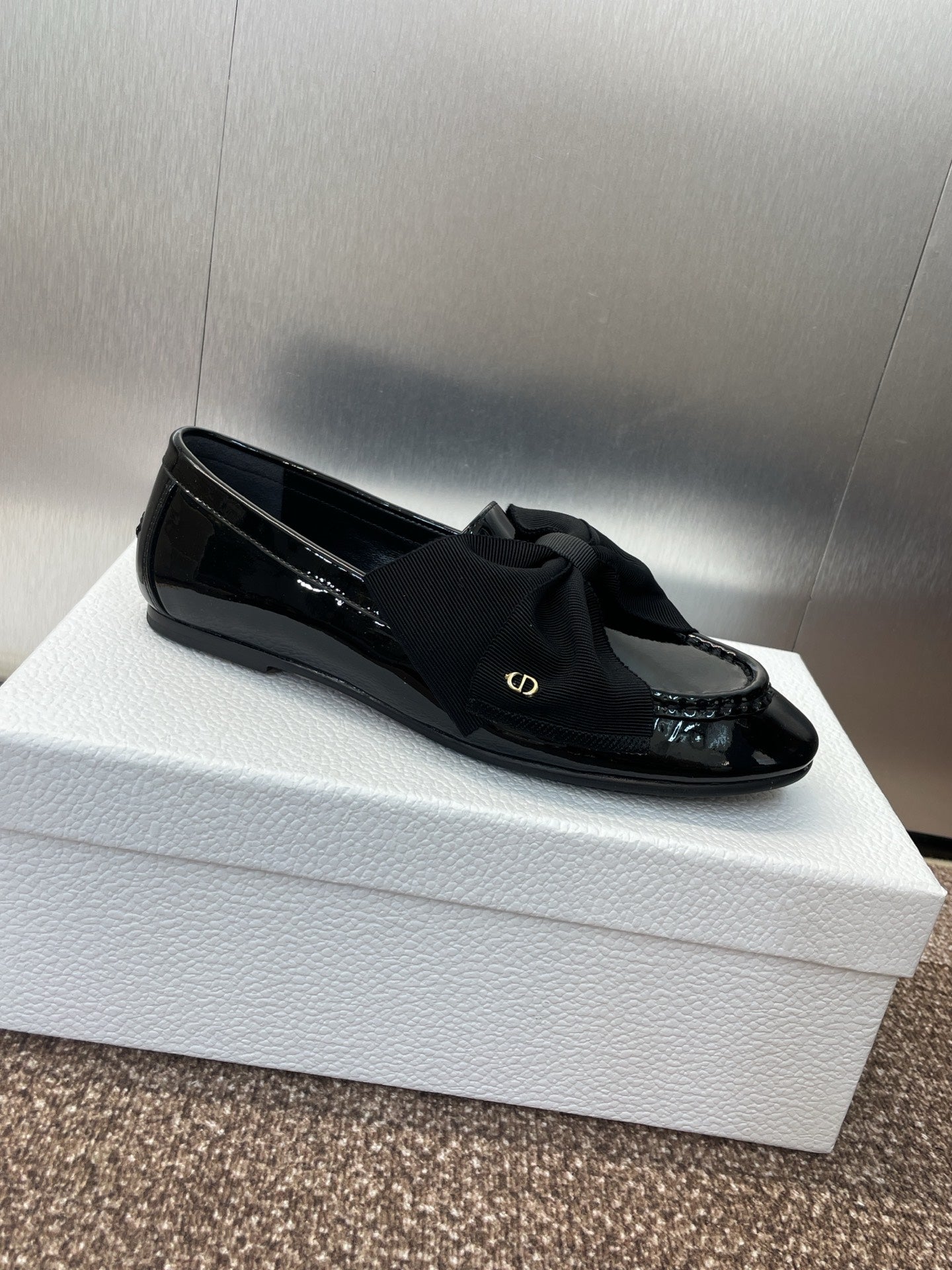 DIOR 25S LOAFER IN BLACK PATENT CALFSKIN AND GROSGRAIN