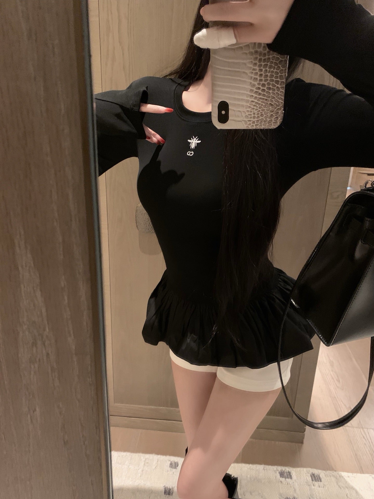 DIOR 25S LONG-SLEEVE PEPLUM T-SHIRT STYLE 186