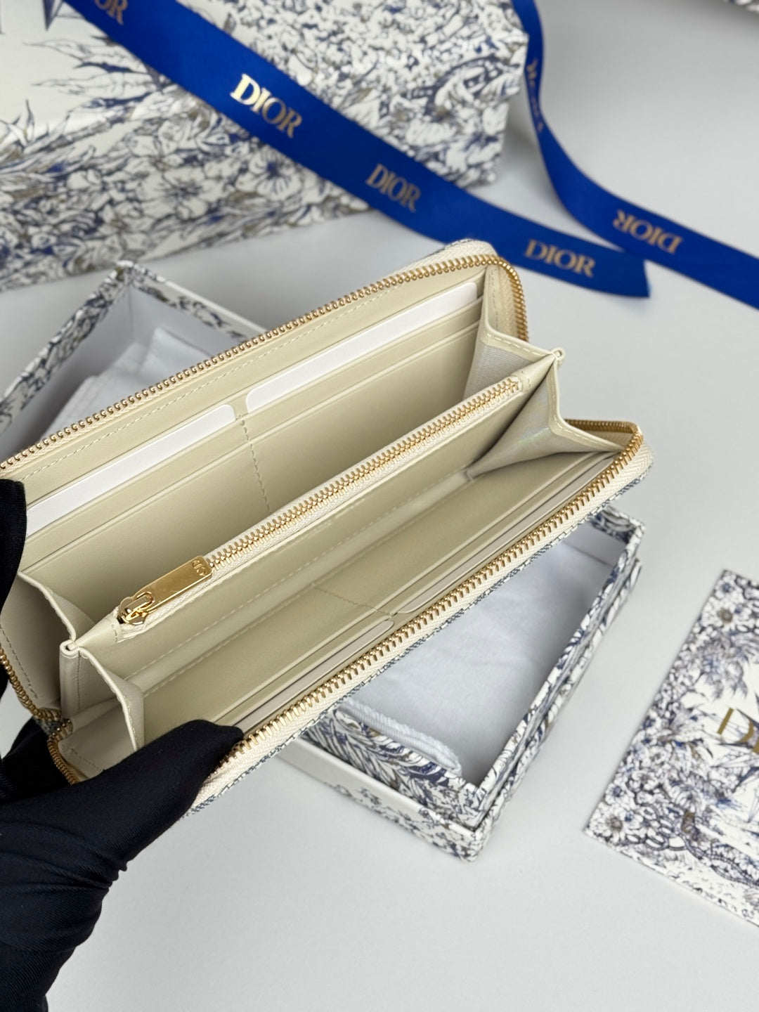 DIOR 25S LONG ZIPPER WALLET 19 IN LIGHT BLUE OBLIQUE JACQUARD CANVAS
